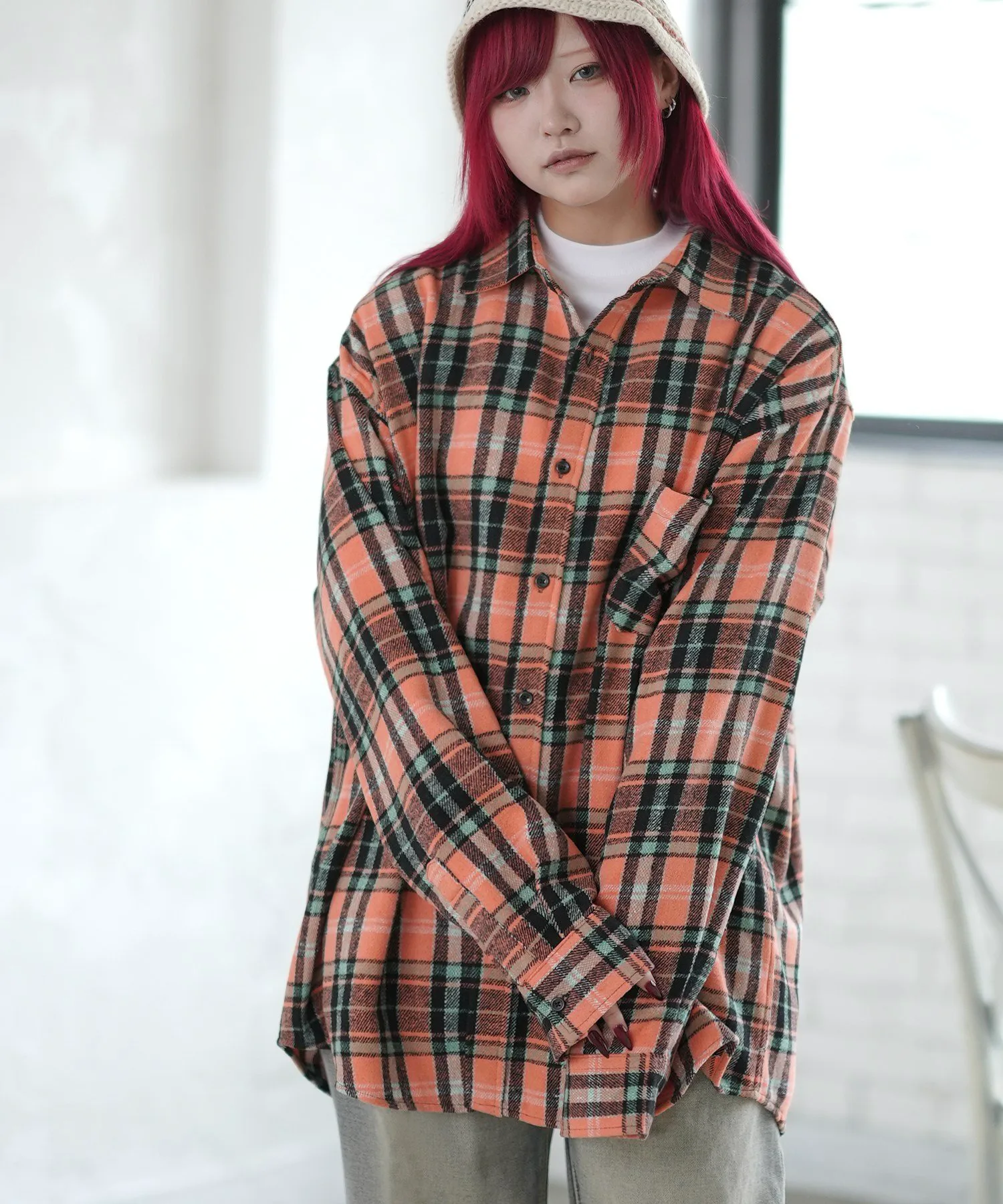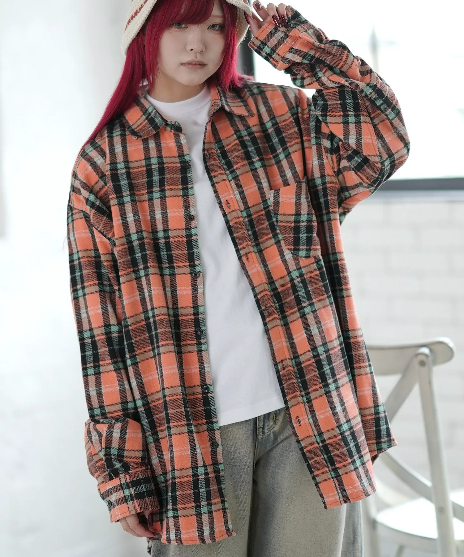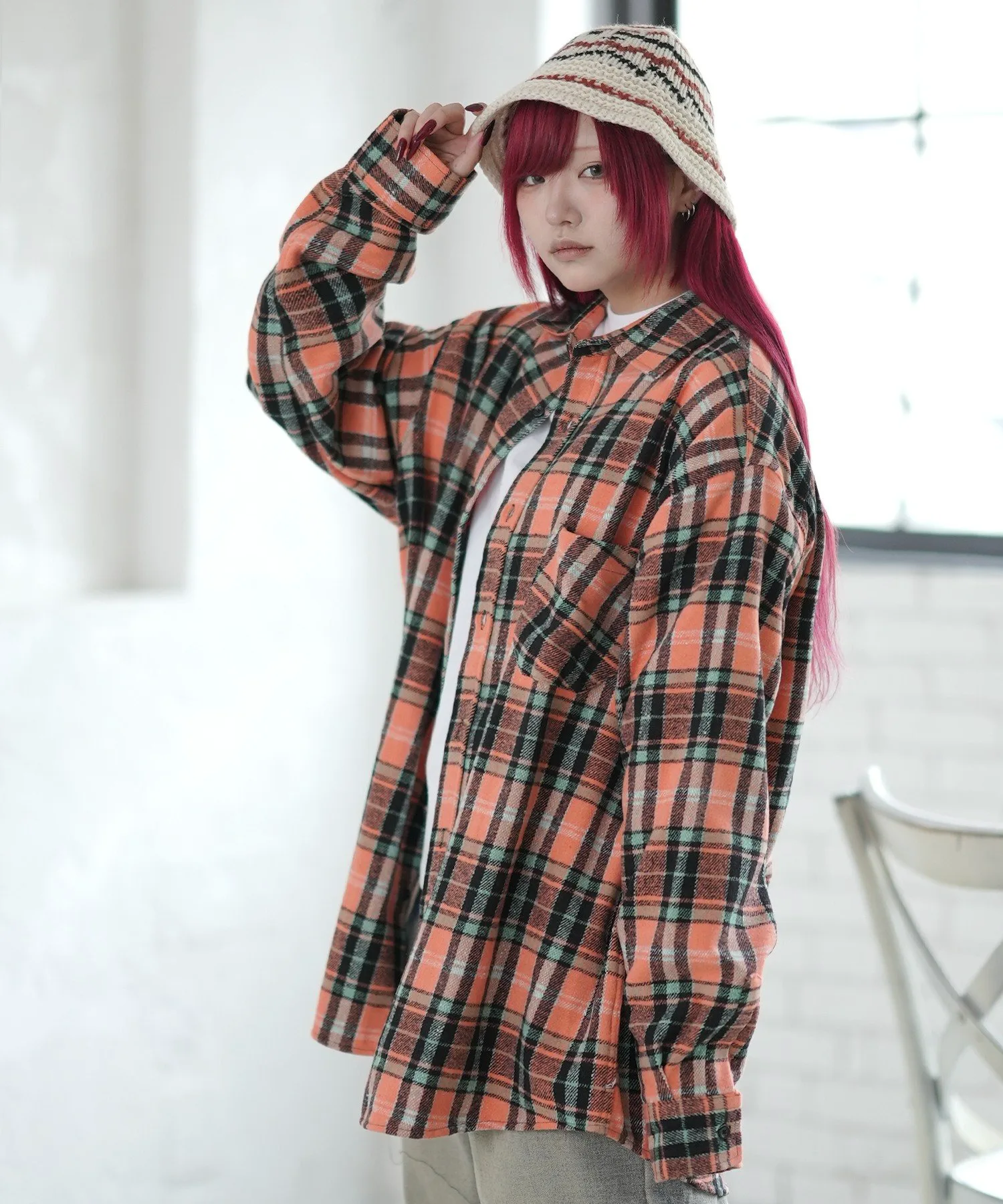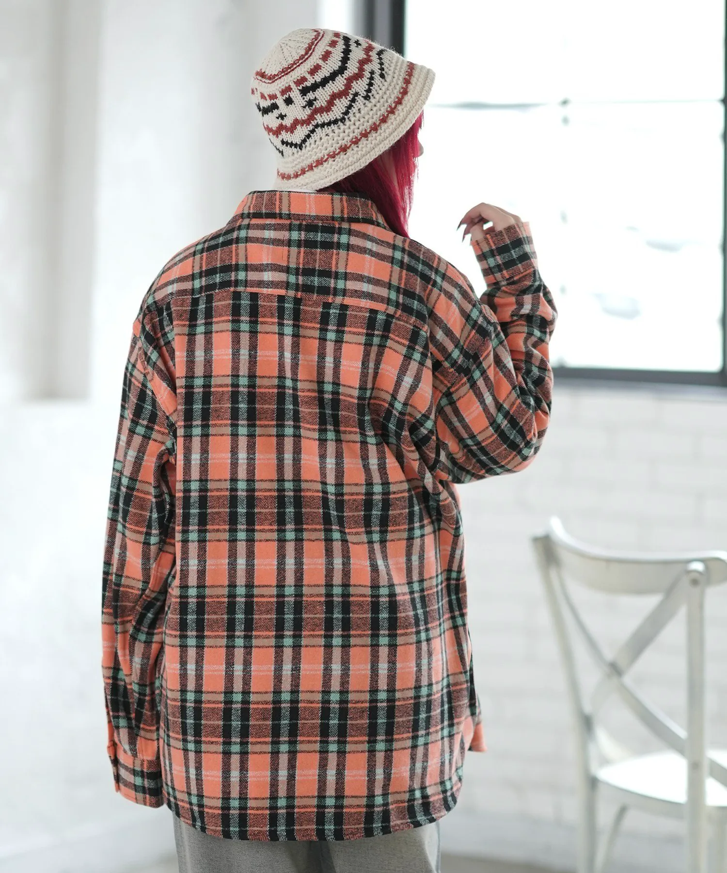 Куртка-рубашка с повседневным клетчатым узором и цветовой гаммой.