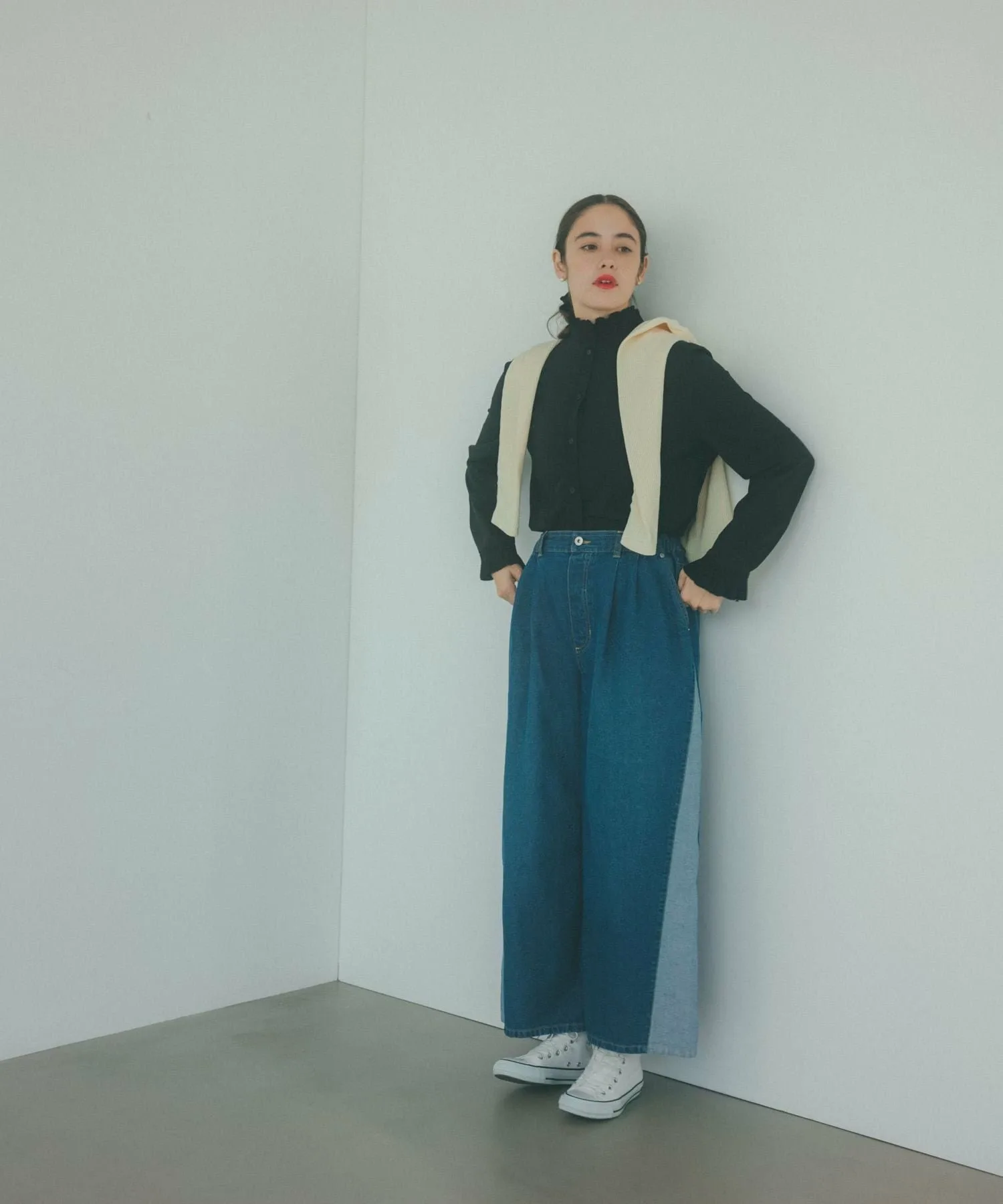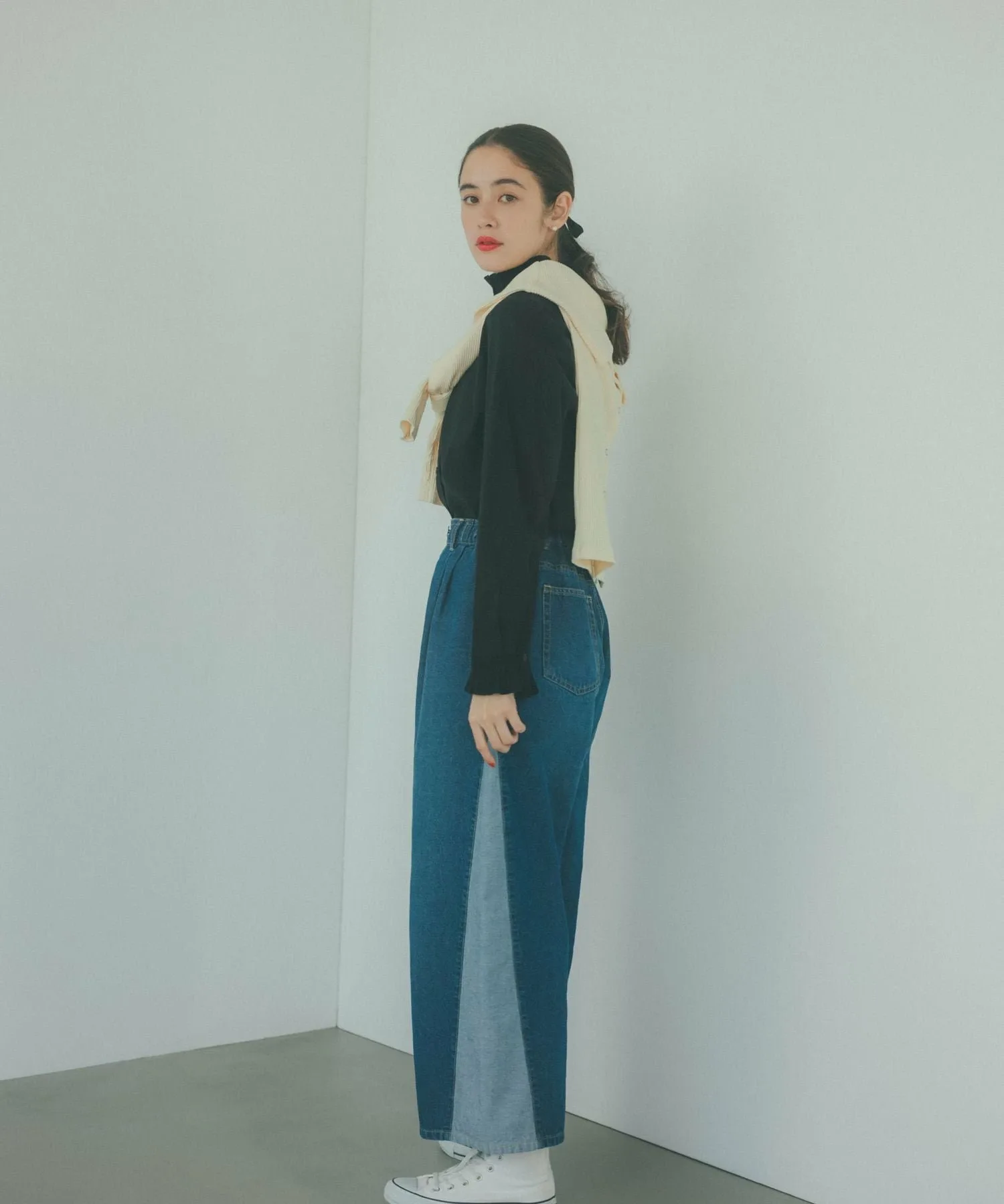 Свободный, заправленный силуэт создает изысканный образ.