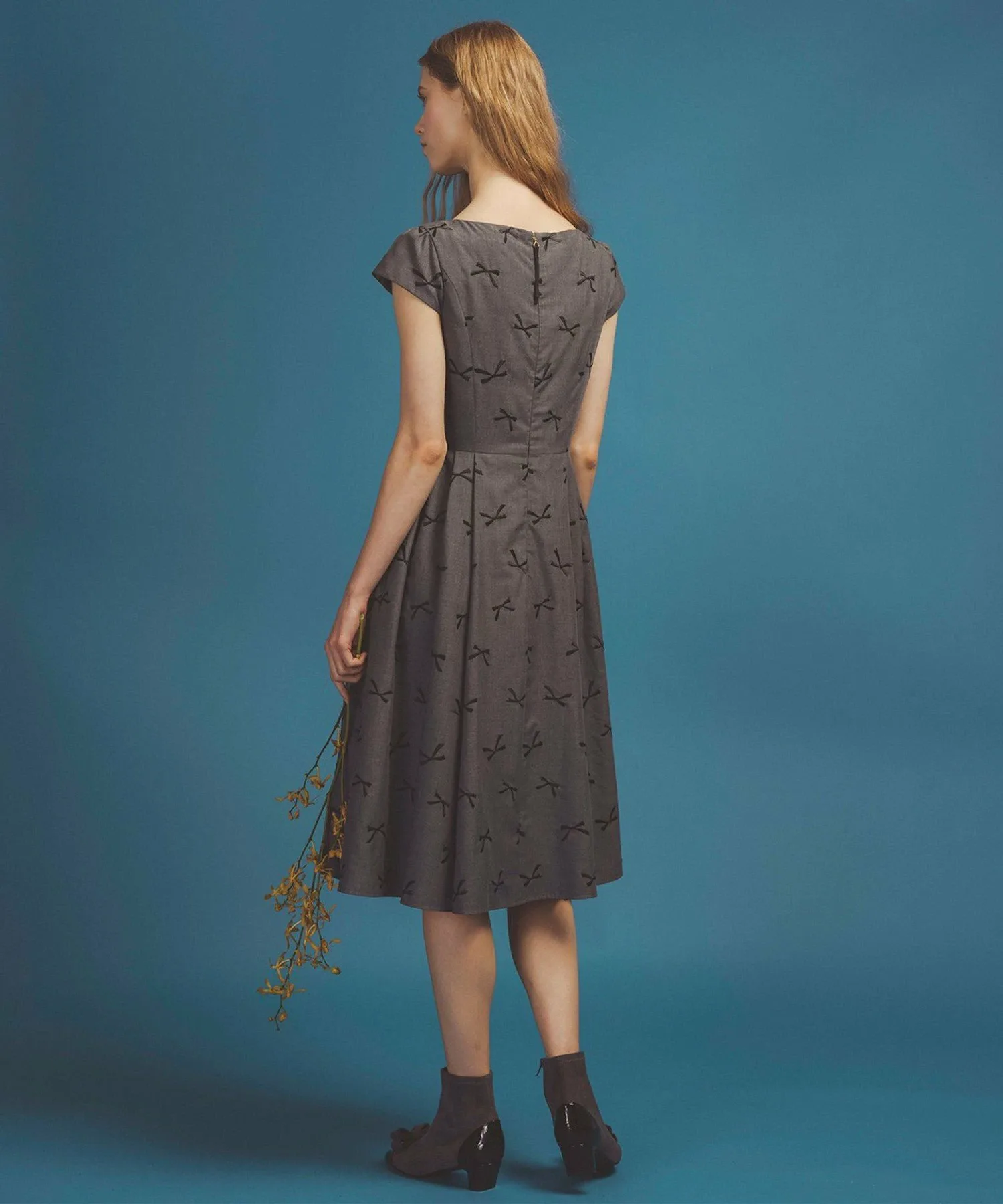 Четкий силуэт «приталенный-расклешенный» подчеркивает женственные линии, обеспечивая при этом свободу движений. Его можно с уверенностью носить в самых разных случаях, от официальных до гламурных.