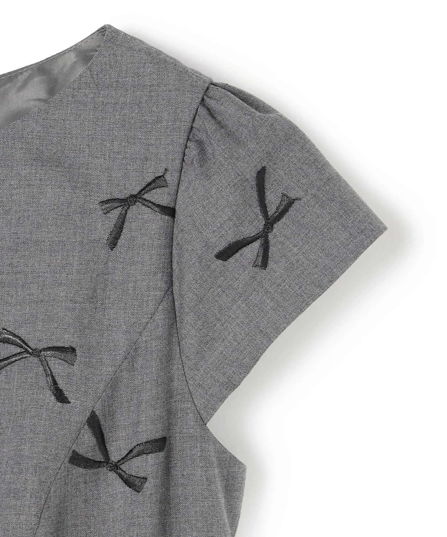Это платье украшено изящной вышивкой лентами на высококачественной ткани с плотной, похожей на костюм текстурой.