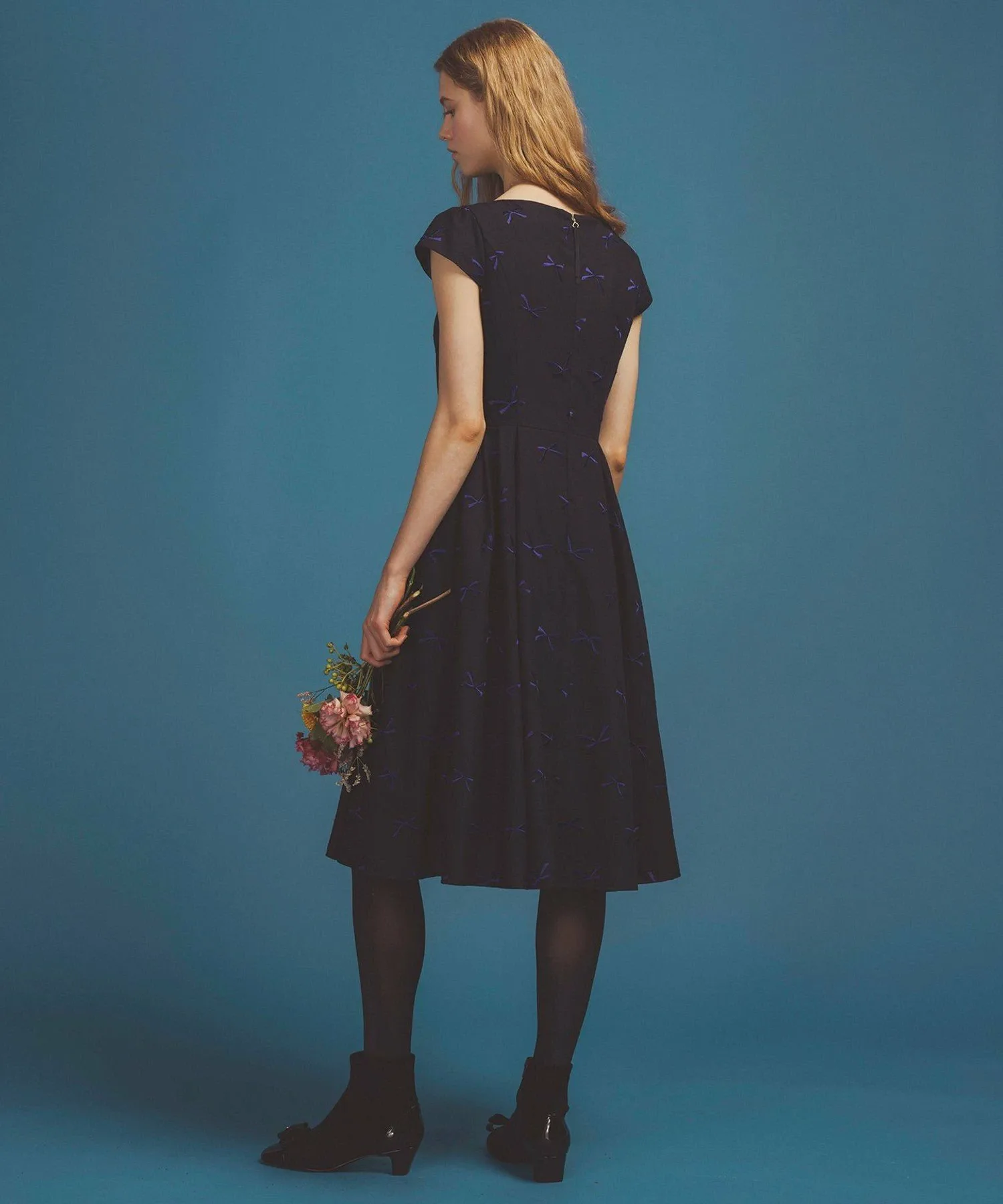 Четкий силуэт «приталенный-расклешенный» подчеркивает женственные линии, обеспечивая при этом свободу движений. Его можно с уверенностью носить в самых разных случаях, от официальных до гламурных.