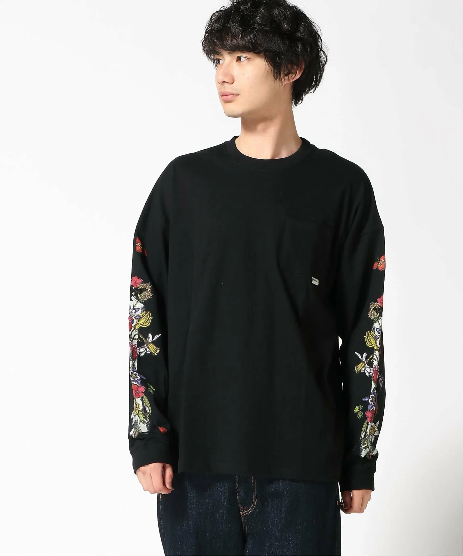 Этот сшитый вручную топ имеет нагрудный карман и принты на обоих рукавах, напоминающие графику скейтеров 1980-х годов.