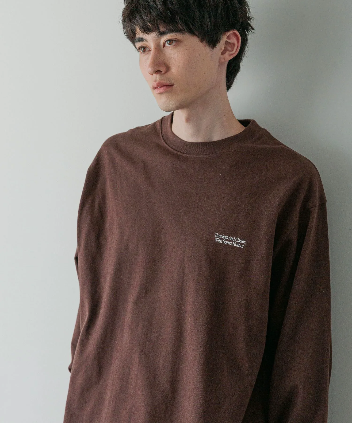 Футболка с длинными рукавами умеренно свободного, оверсайз силуэта, которая отлично смотрится даже в качестве самостоятельной одежды.