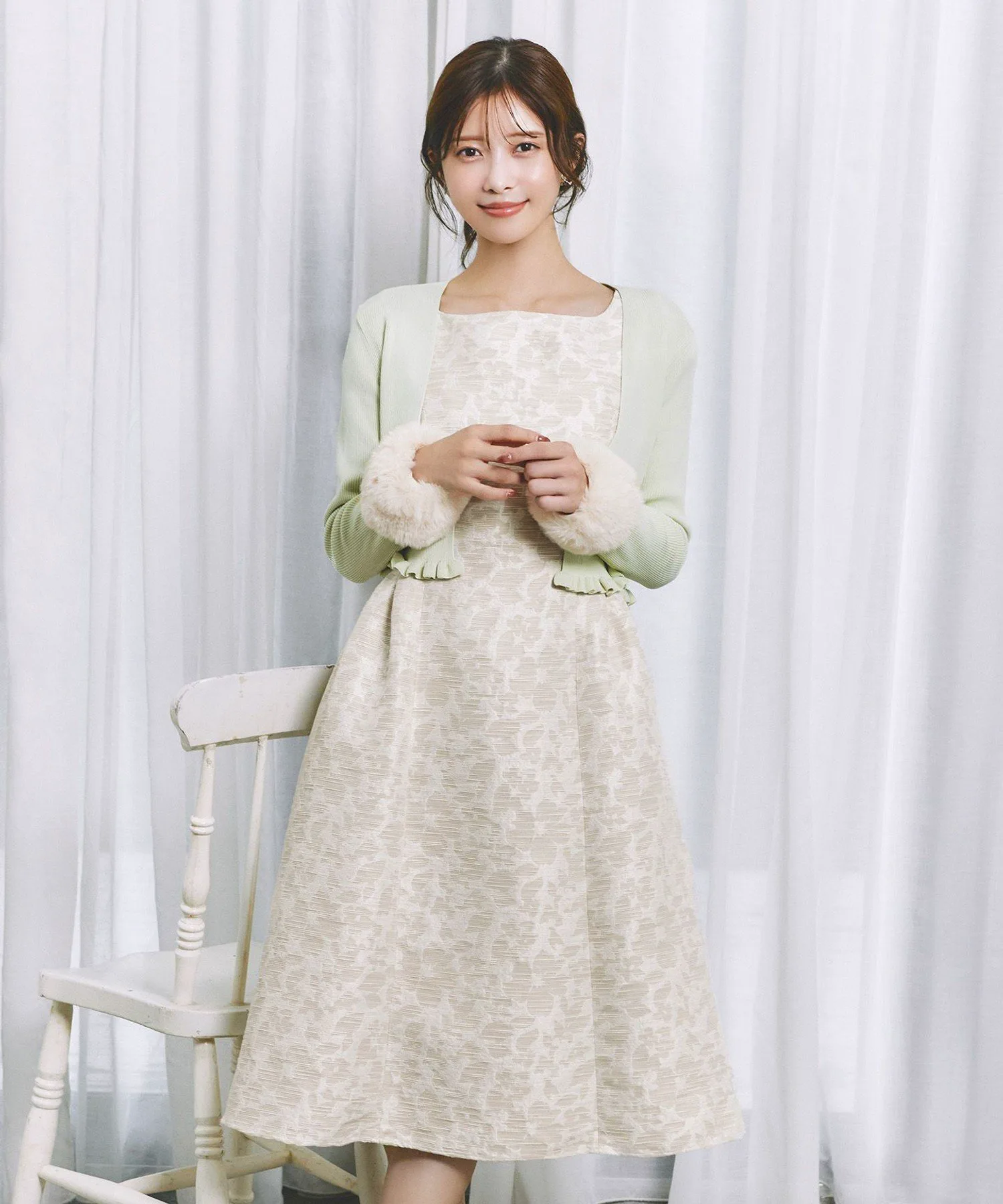 [Материал] Смешанный жаккард, узор выражен с помощью уточной нити. Уток состоит из нитей с утолщениями и разноцветных нитей, что создает текстурированный и многоцветный вид. Ткань имеет текстурированную поверхность с оптимальным натяжением.