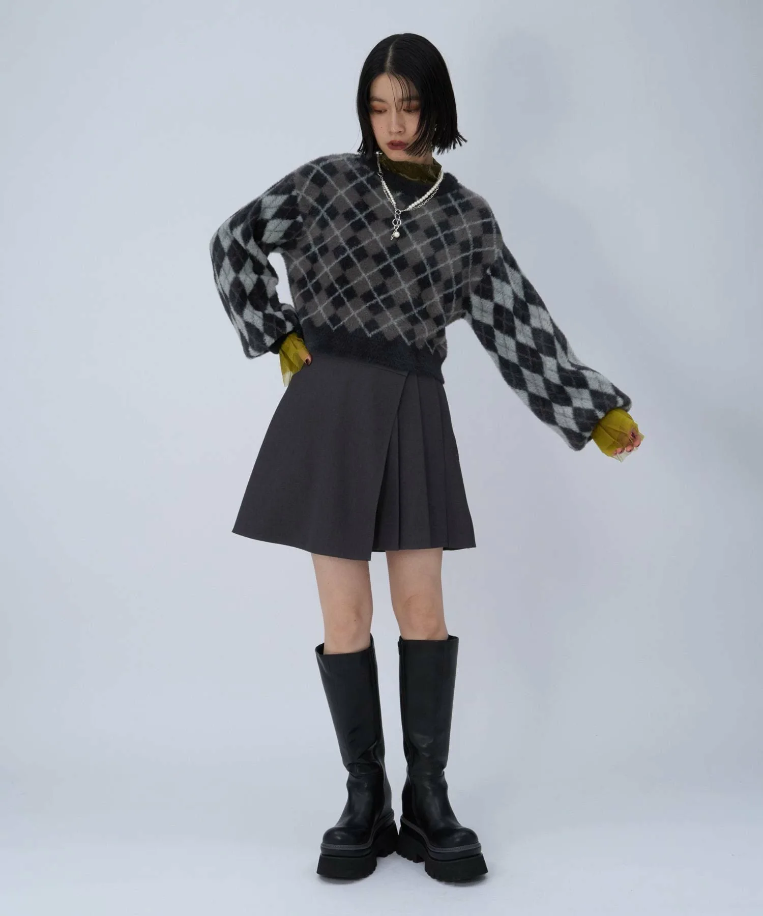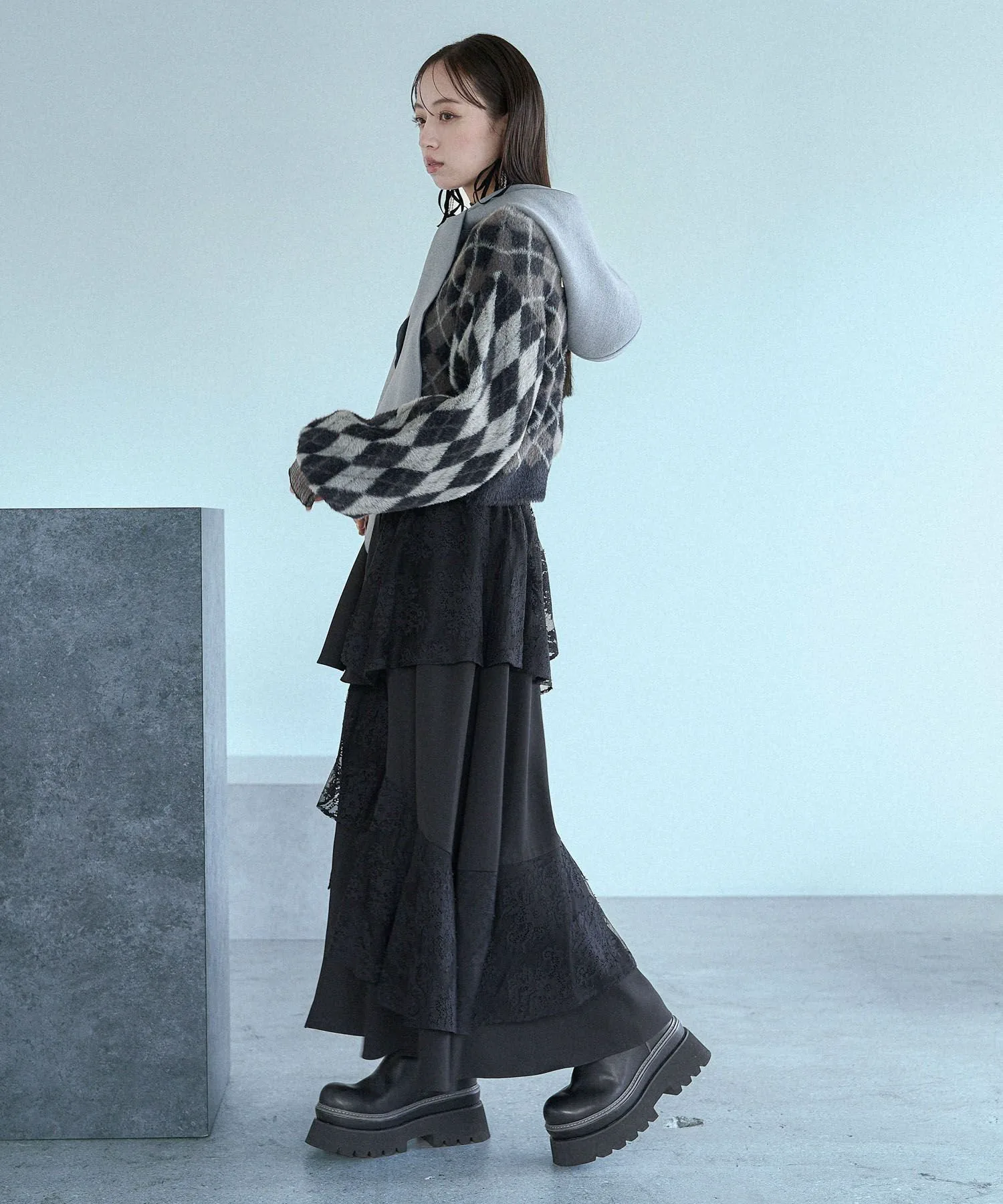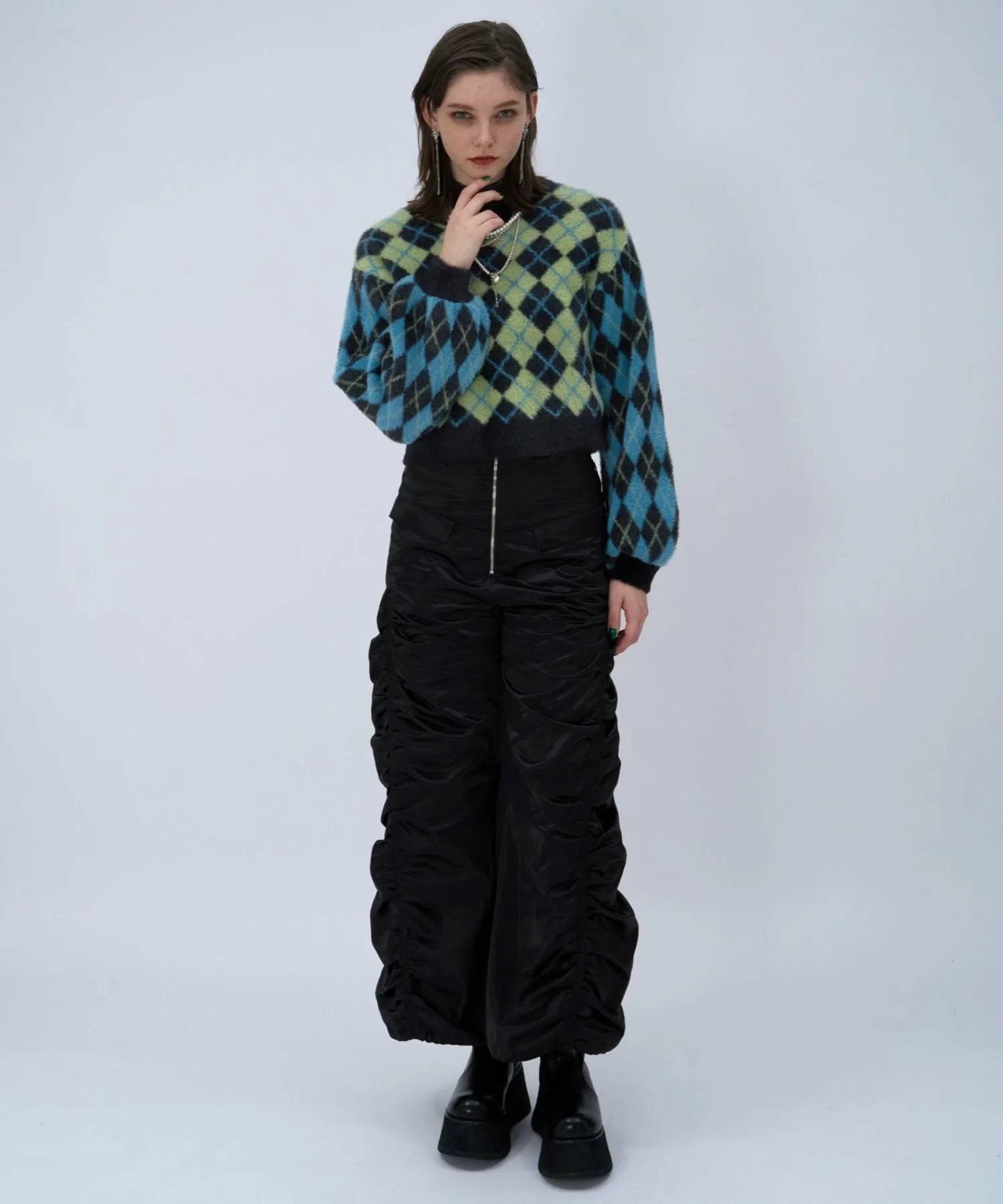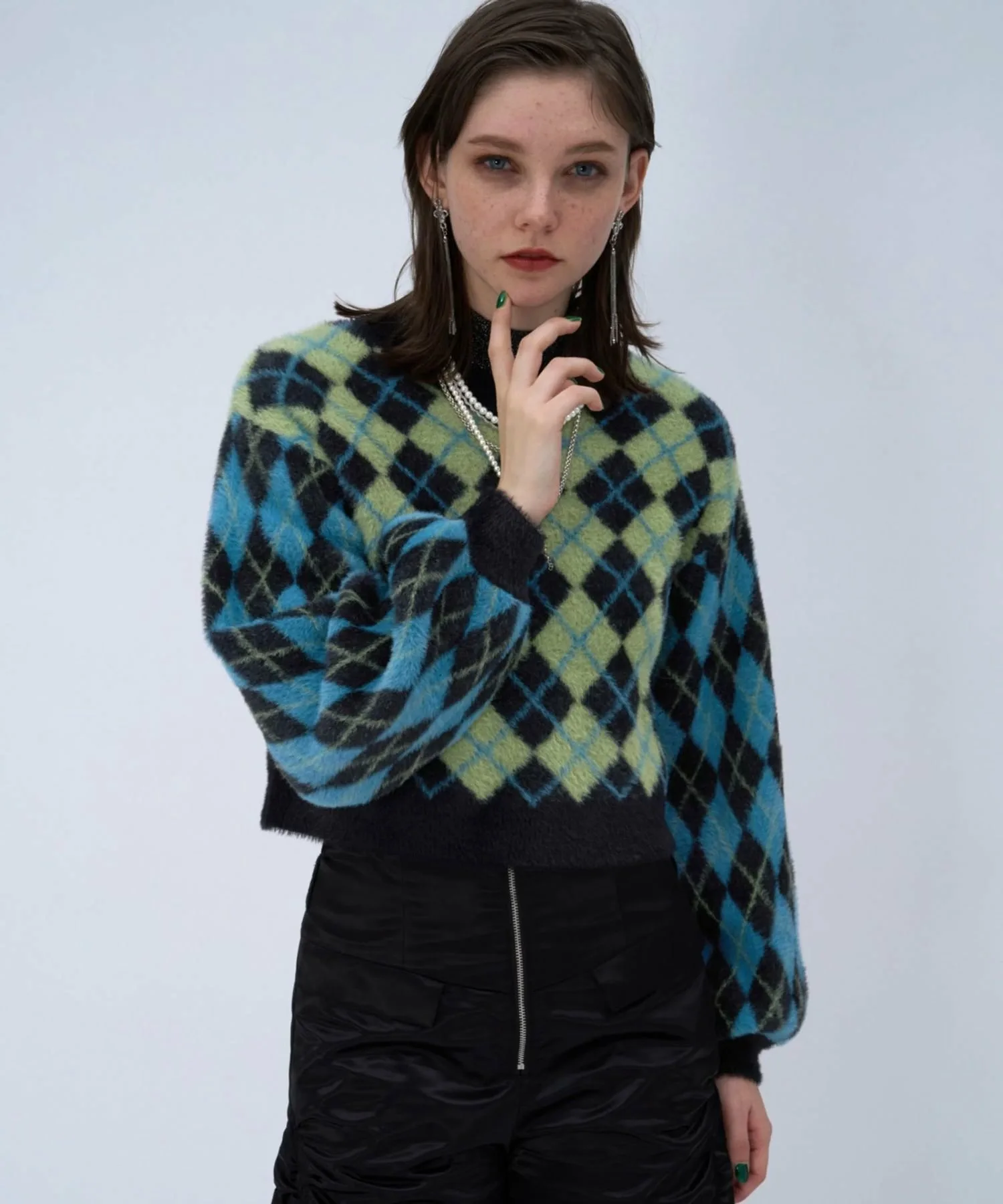 □Ретро-цветовая гамма и атмосфера ромбовидного узора делают его модным.