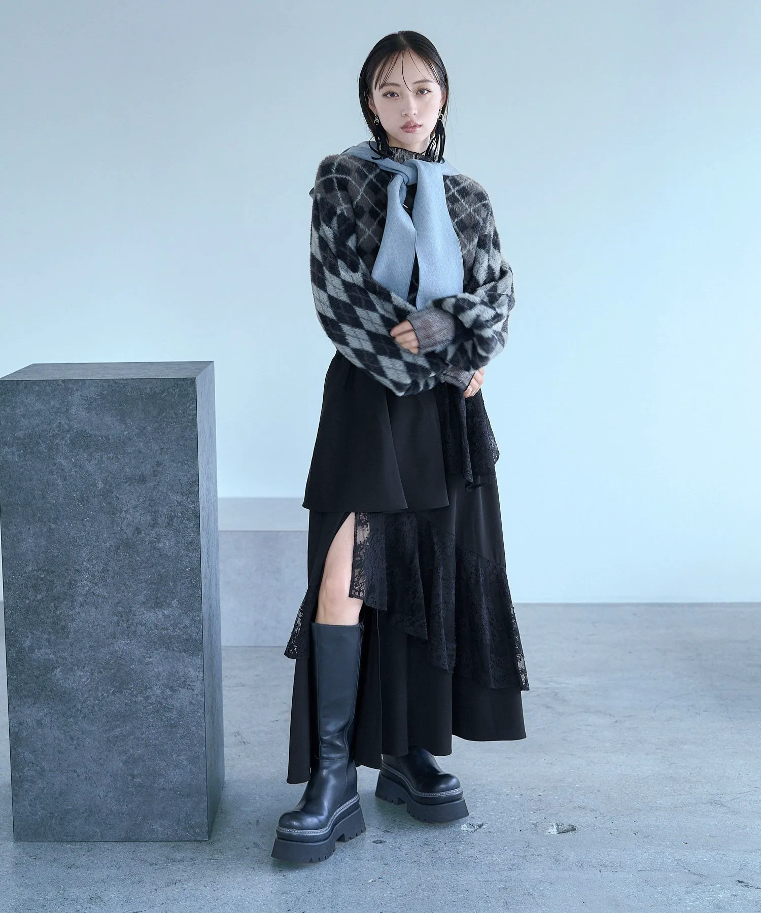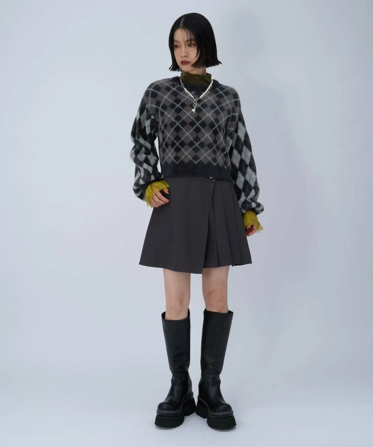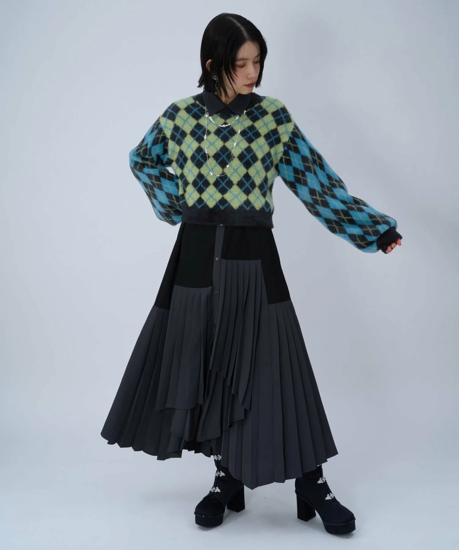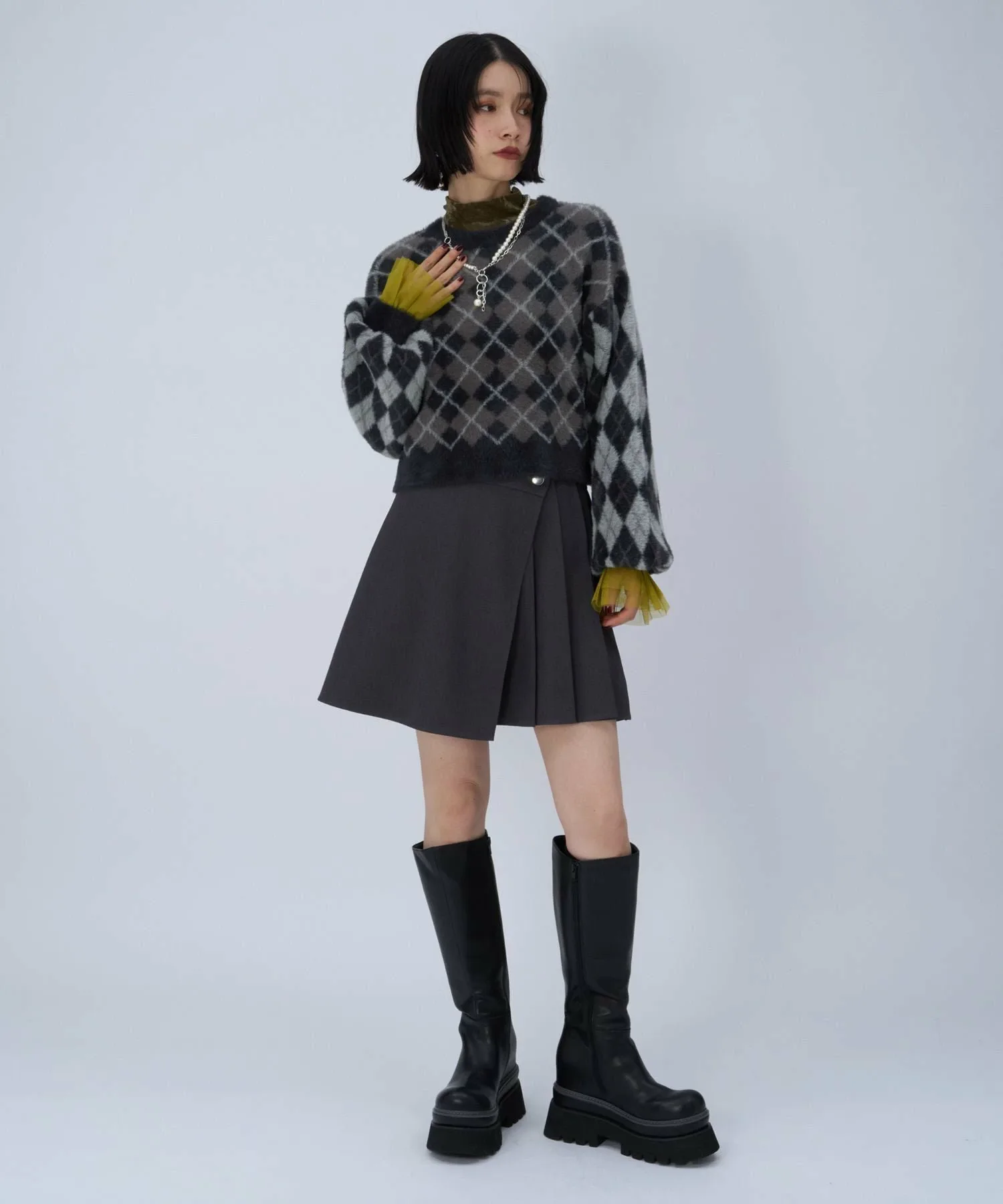 □Ретро-цветовая гамма и атмосфера ромбовидного узора делают его модным.