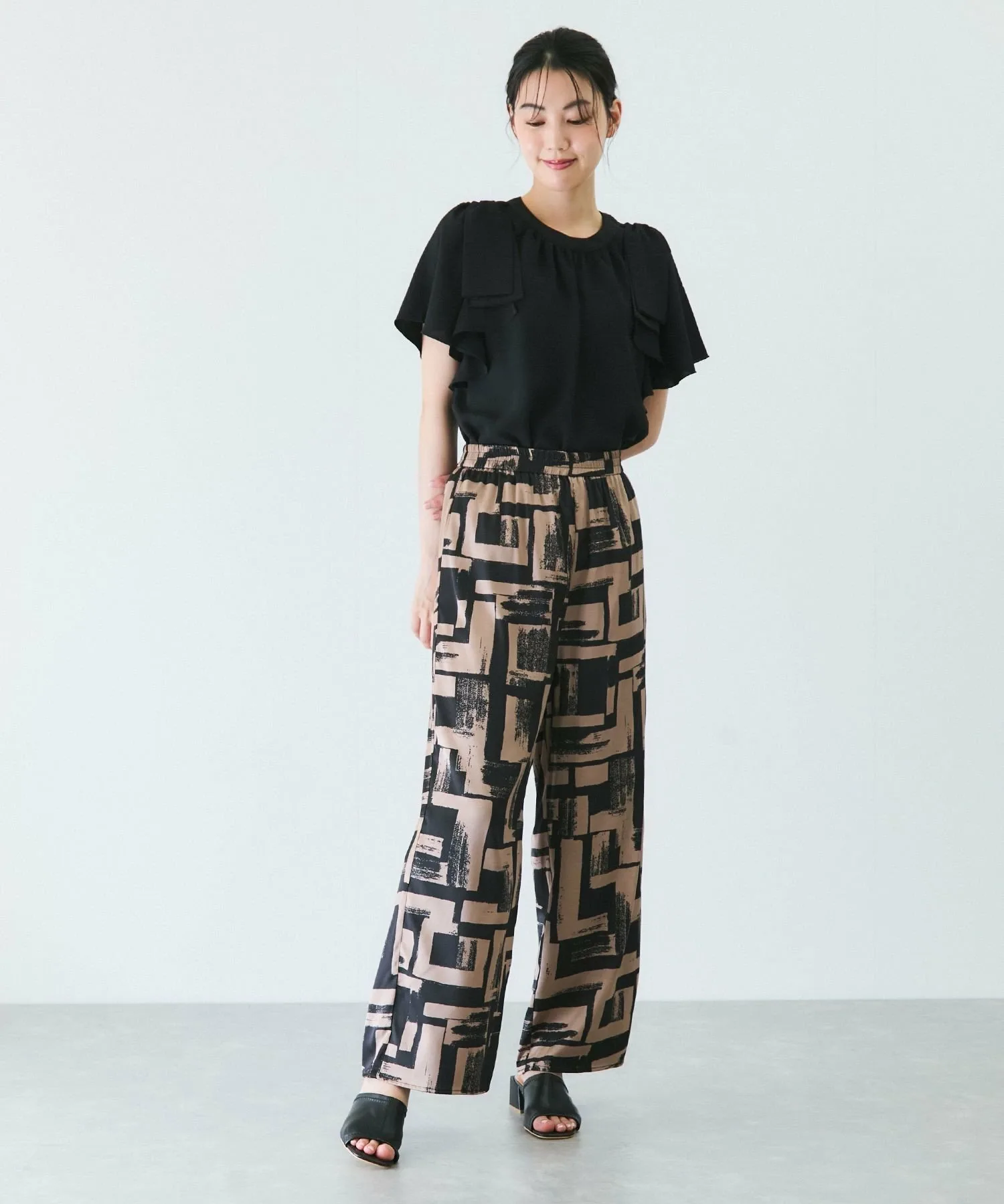 Широкие брюки с яркой цветовой гаммой.
