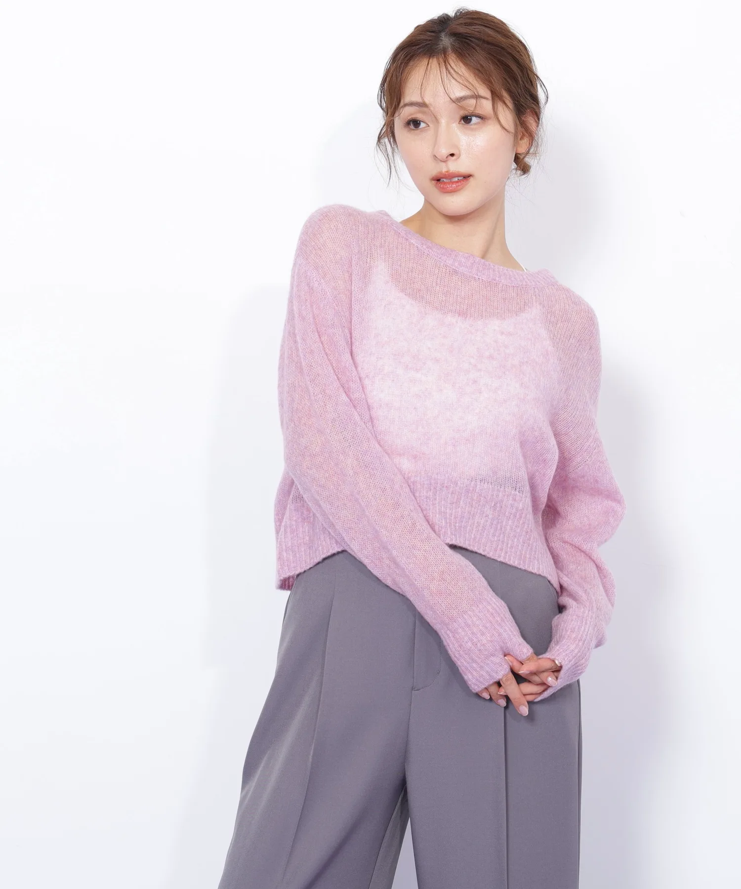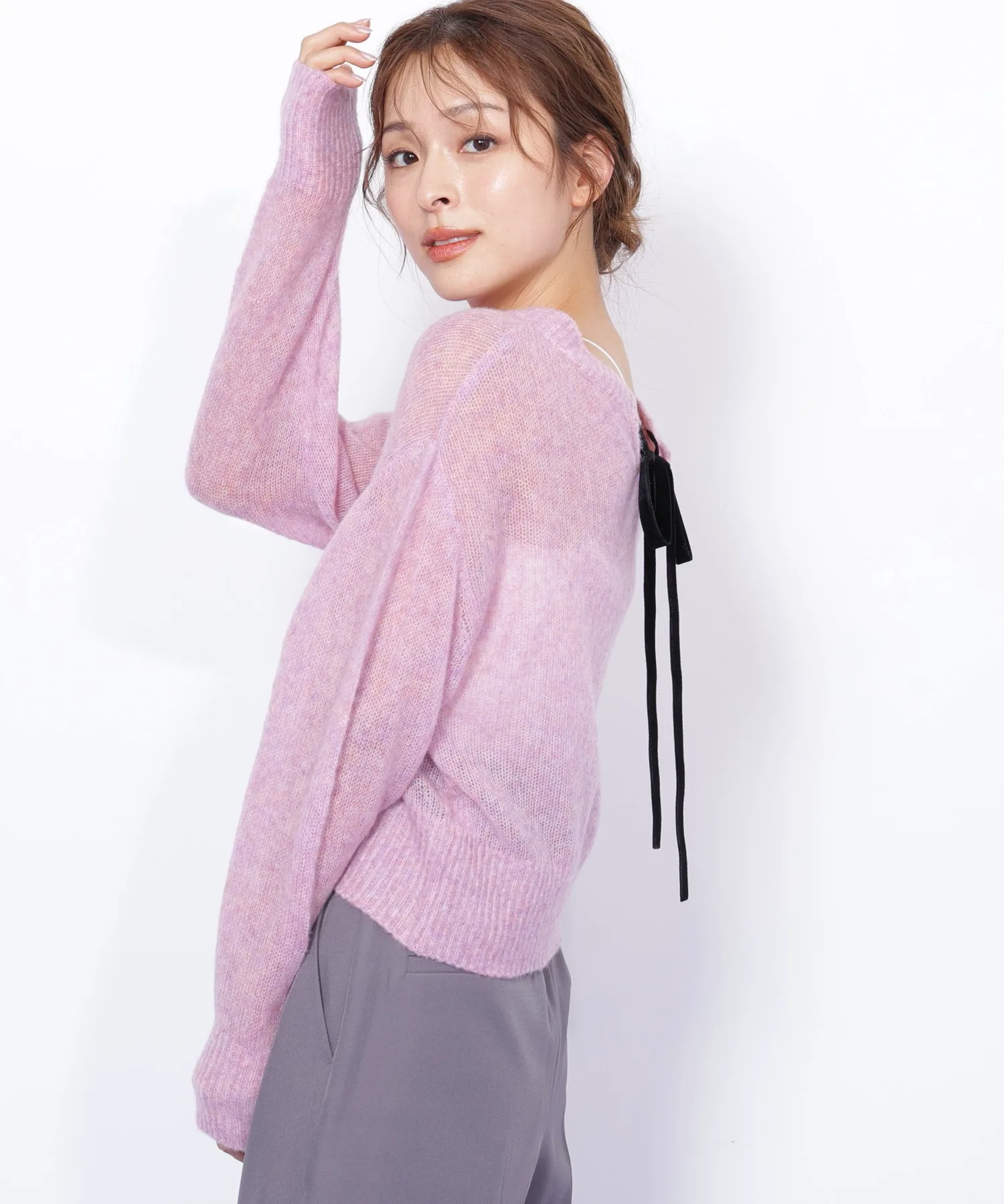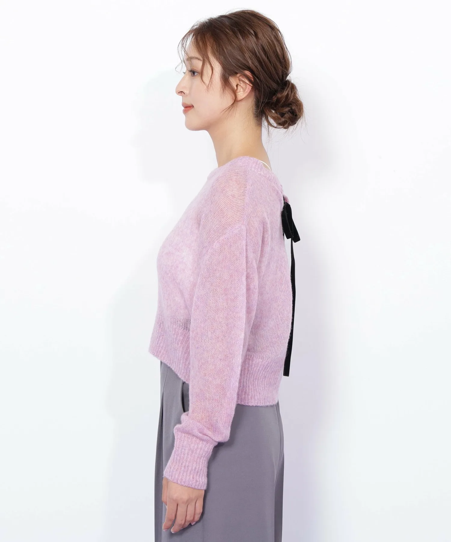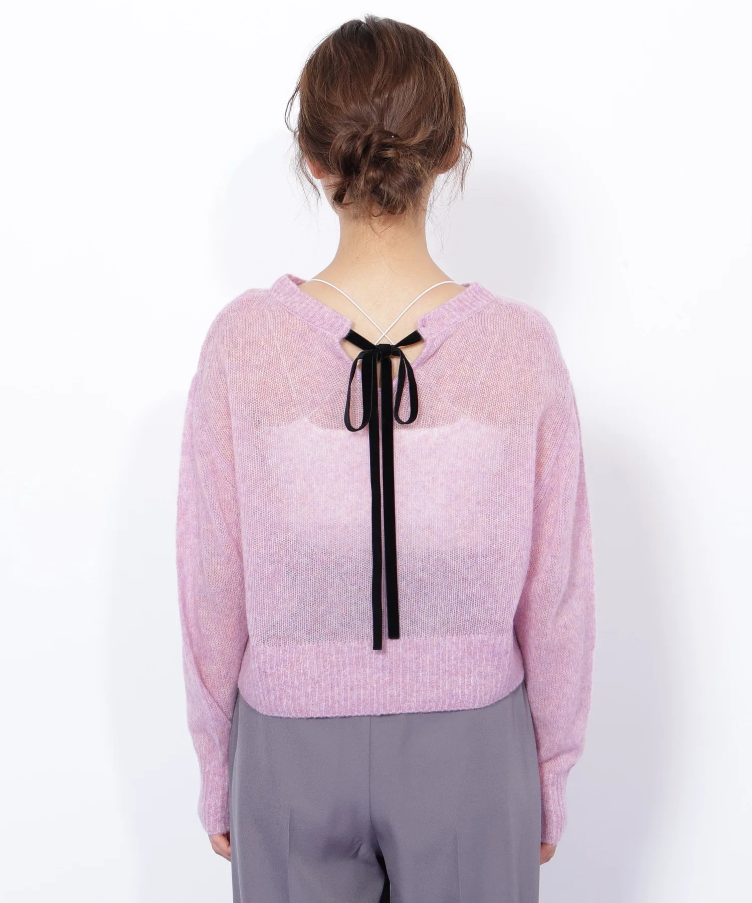 Элегантный короткий трикотажный лиф, сочетающий в себе мягкость трикотажа и слегка полупрозрачную текстуру. Нежная бархатная лента сзади создает милый образ даже сзади. Поскольку материал полупрозрачный, носите его с собственным нижним бельем. Сочетайте его с джинсами для повседневного образа или с юбкой для более женственного. *Цвет может отличаться в зависимости от условий освещения во время фотосъемки.