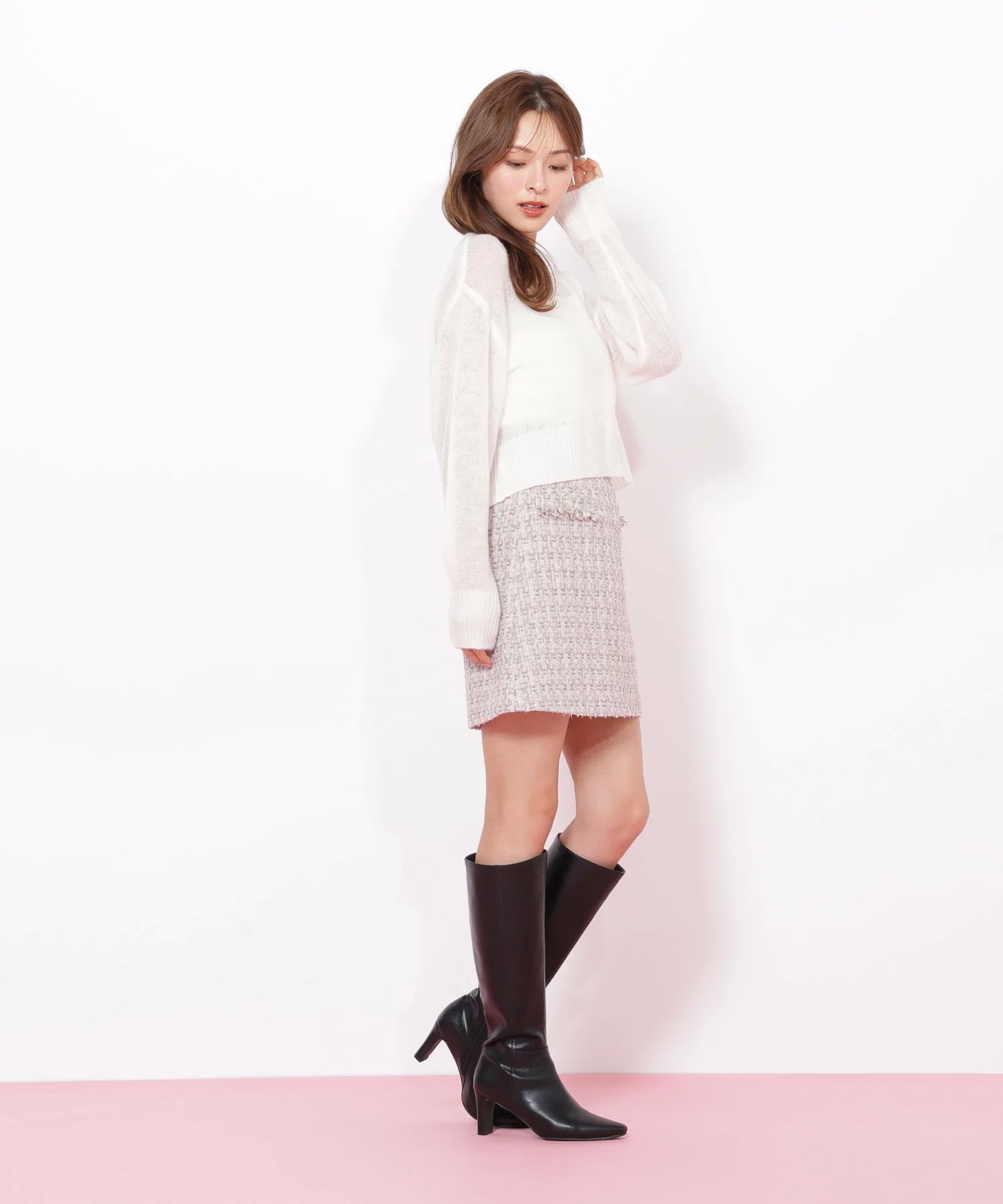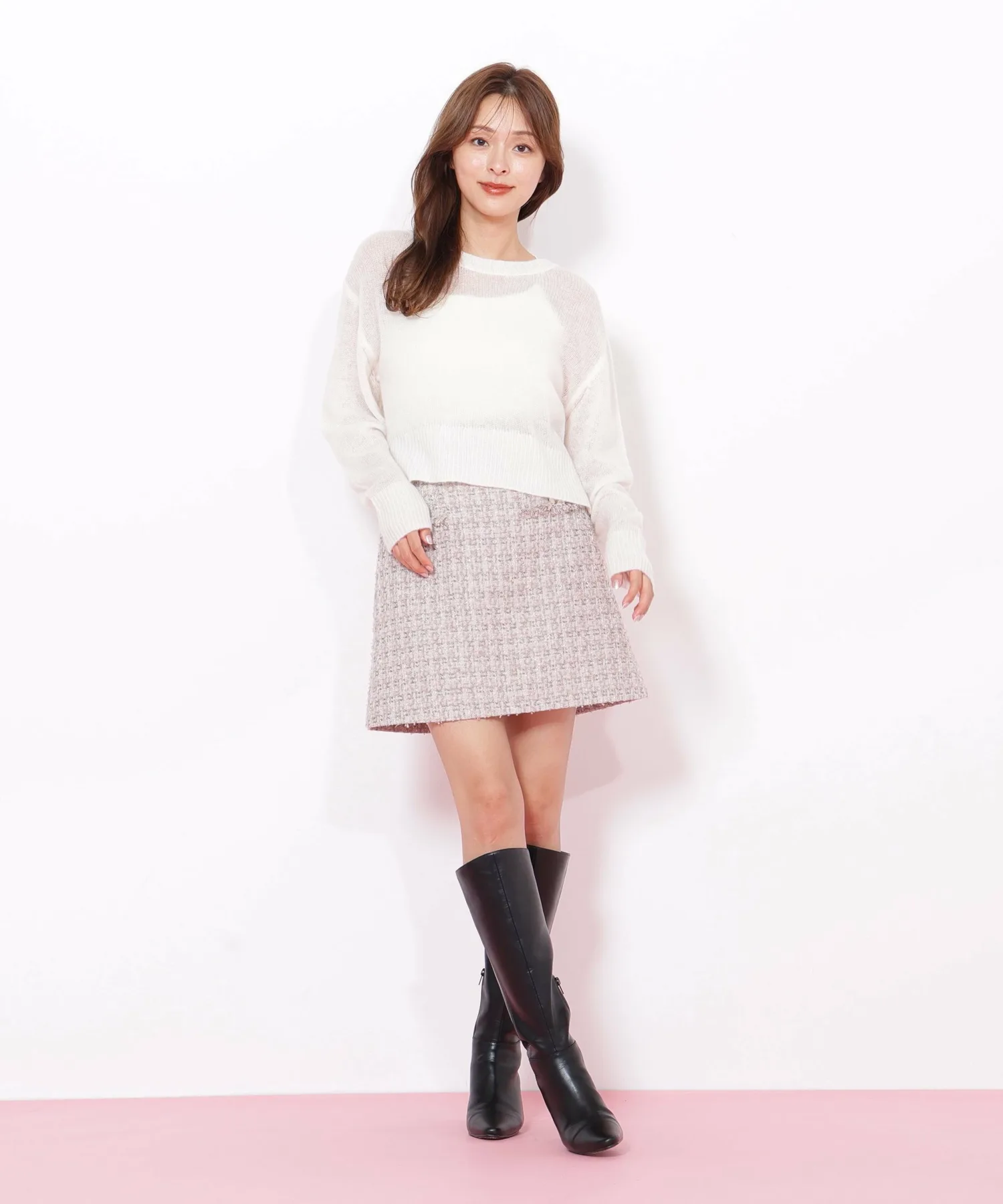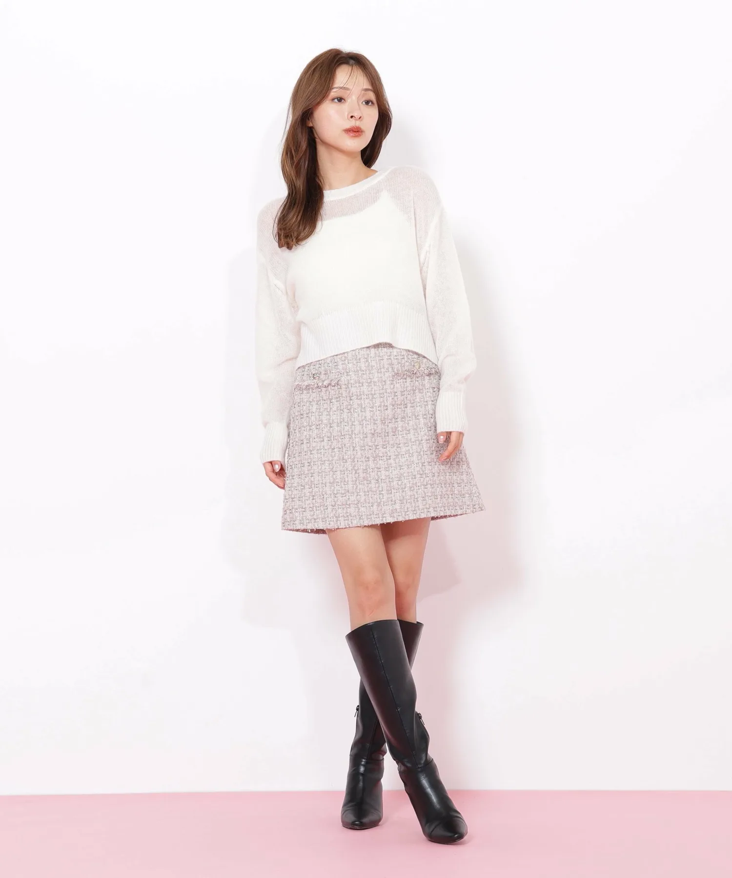 Элегантный короткий трикотажный лиф, сочетающий в себе мягкость трикотажа и слегка полупрозрачную текстуру. Нежная бархатная лента сзади создает милый образ даже сзади. Поскольку материал полупрозрачный, носите его с собственным нижним бельем. Сочетайте его с джинсами для повседневного образа или с юбкой для более женственного. *Цвет может отличаться в зависимости от условий освещения во время фотосъемки.