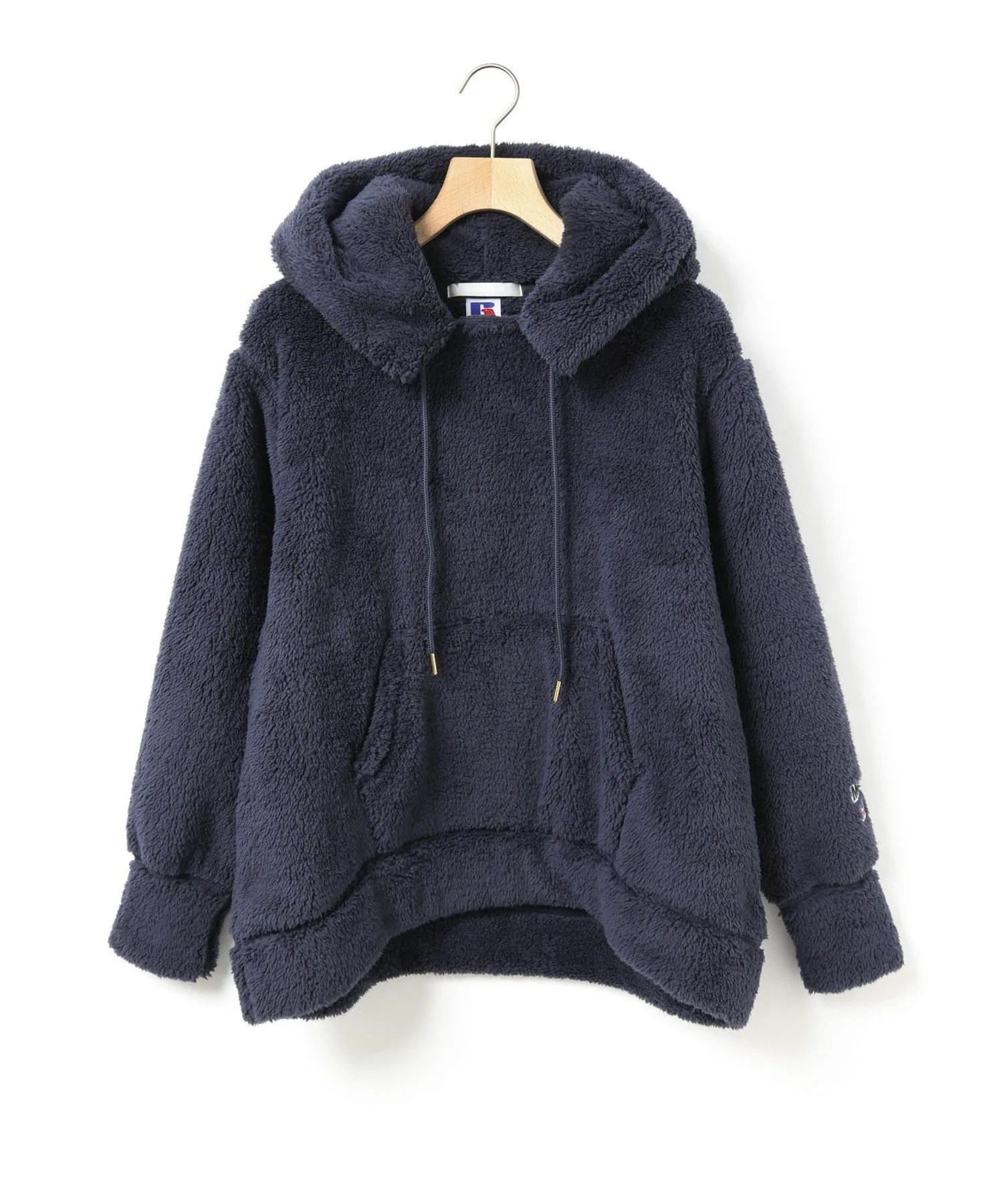 Худи с принтом «боа» — результат сотрудничества RUSSELL и MARMARMAR. Это повторная модель, но с другой тканью по сравнению с толстовкой из хлопка 3-816006 из осенне-зимней коллекции 2023 года. На этот раз использован теплый, мягкий и плотный материал «боа». Благодаря объему, она отлично сочетается с простыми брюками и юбками. Нижний край немного отличается спереди и сзади. Вырез горловины можно отрегулировать, затянув шнурок капюшона. На левом рукаве размещены нашивки RUSSELL и MARMARMAR в качестве оригинального акцента.