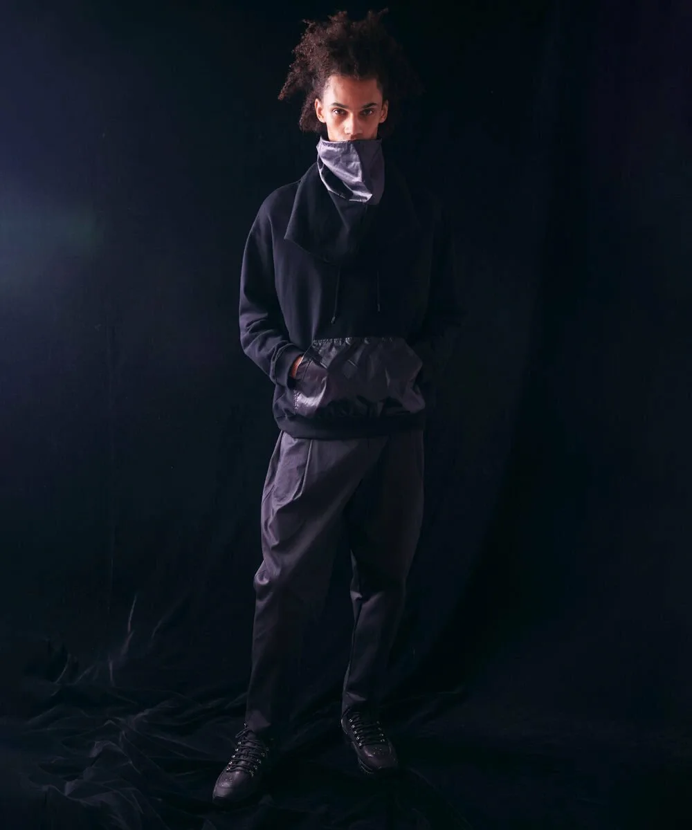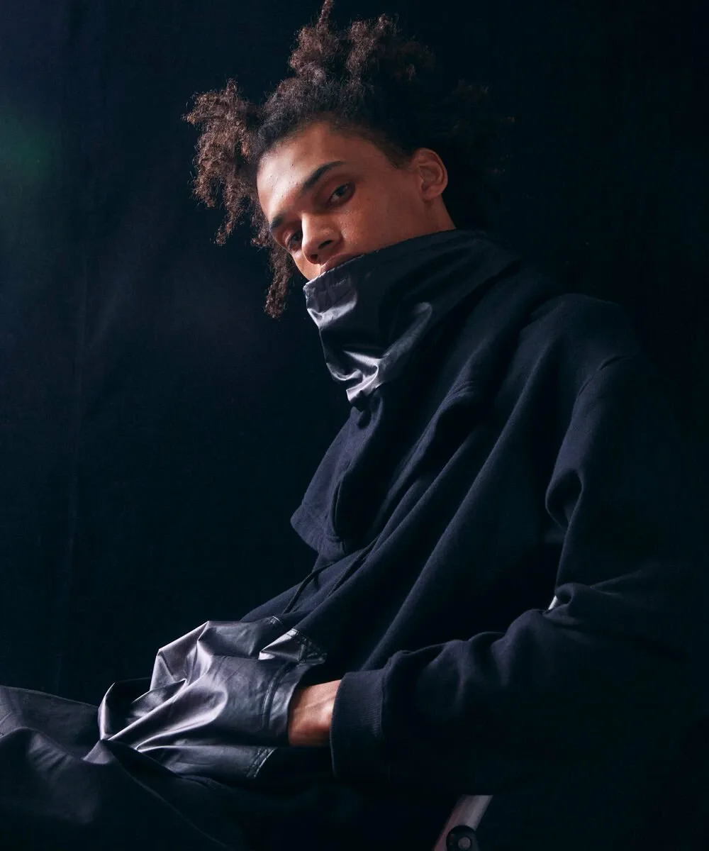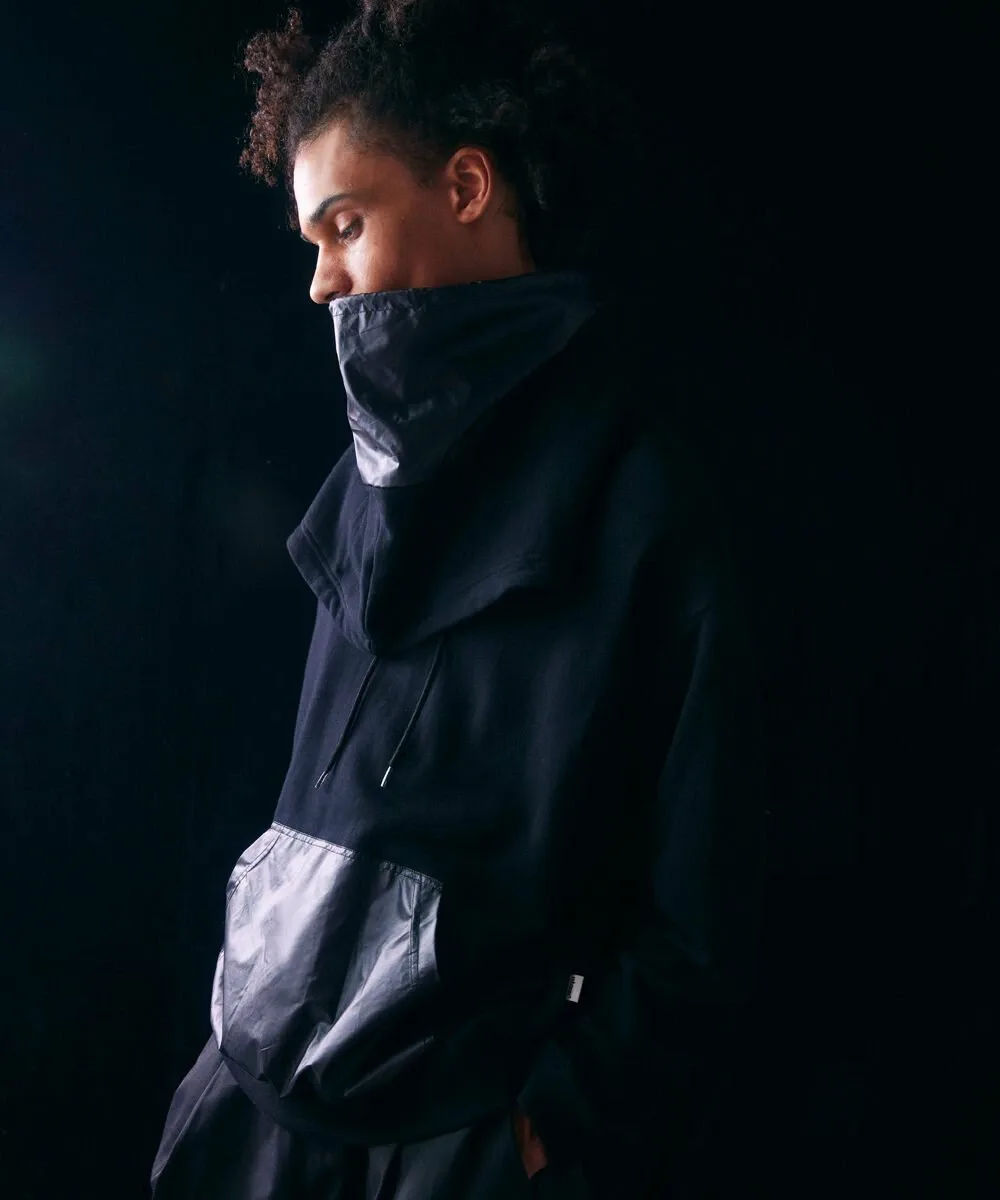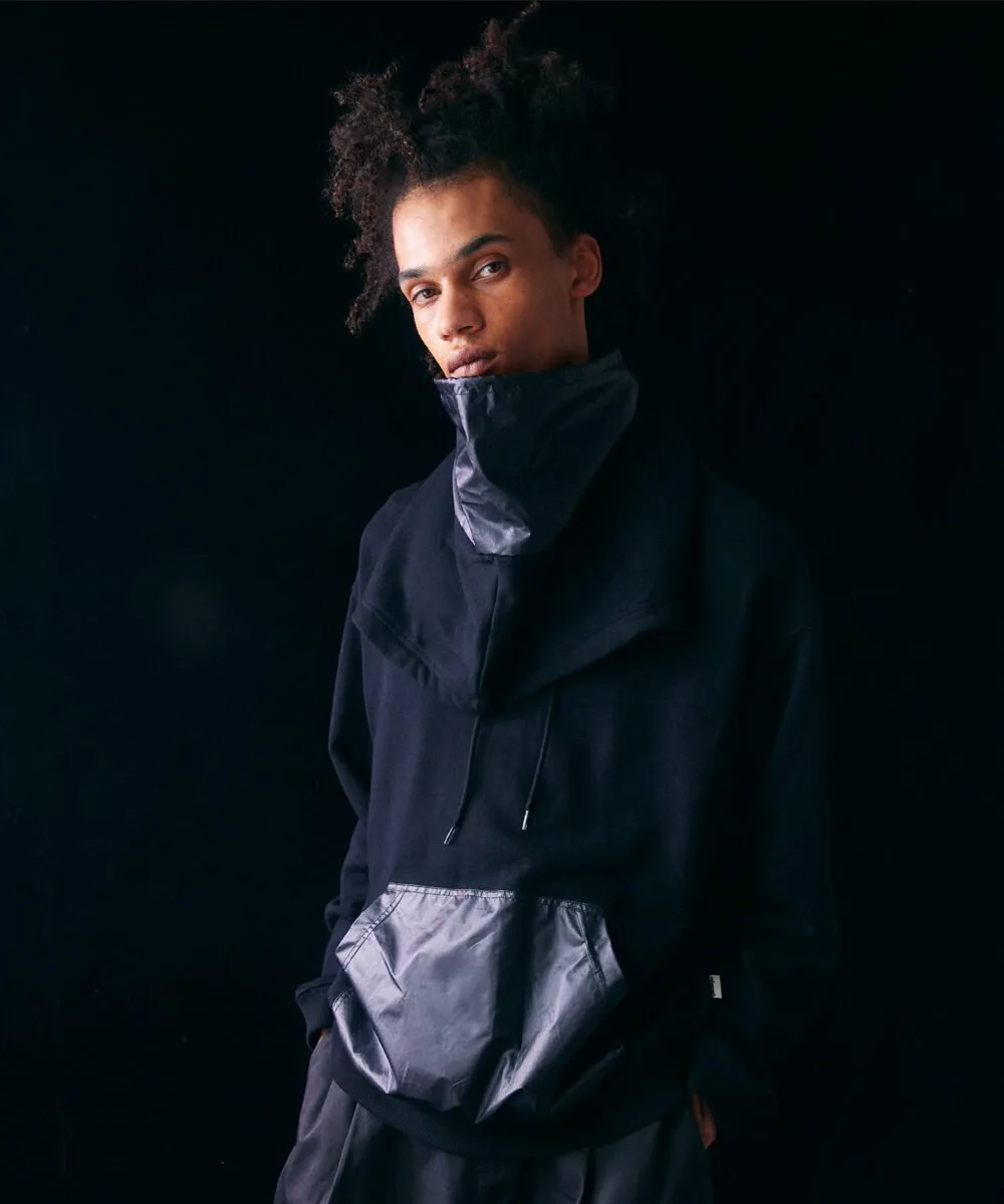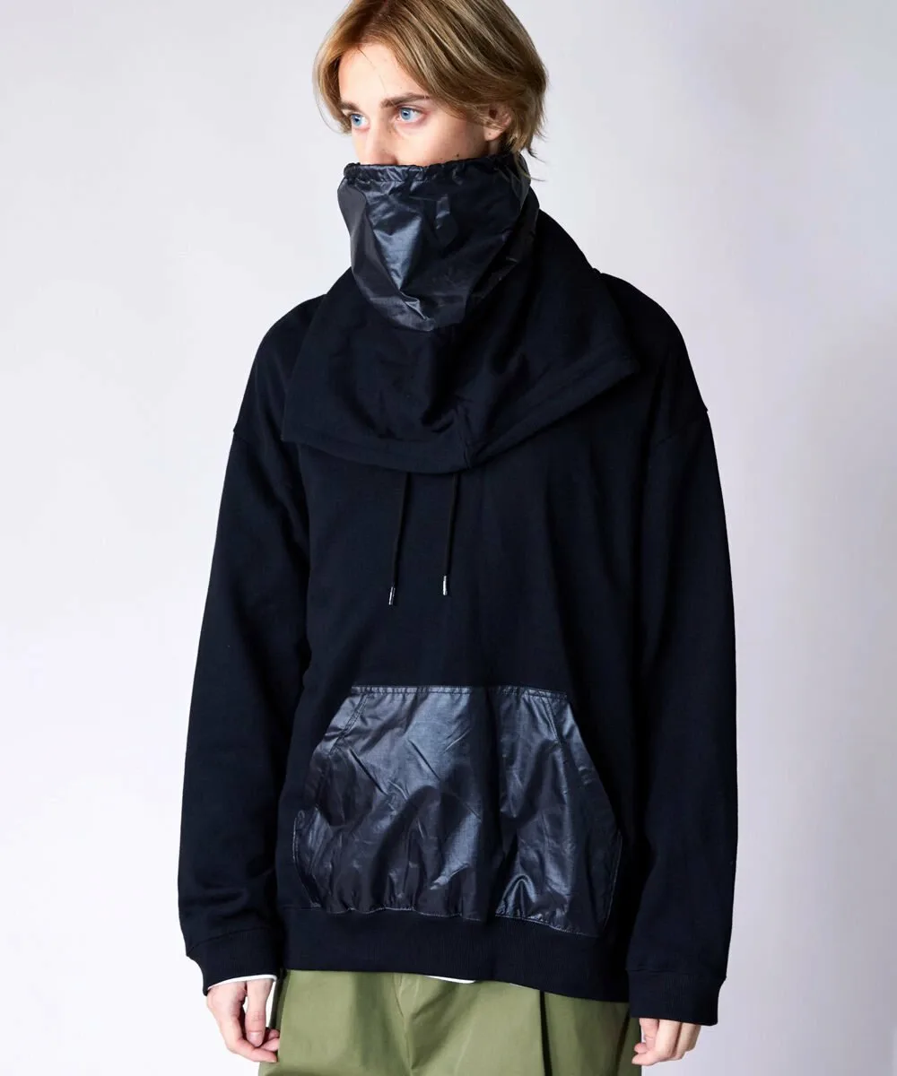 Эту толстовку можно носить как палантин, продев голову через отдельную ткань на капюшоне. Сочетание различных материалов создает стильный образ. Силуэт свободный, с широким корпусом и достаточной шириной плеч. Детали и узор тщательно проработаны, чтобы капюшон хорошо держался. Рост модели: 179 см, размер: черный/XLarge, серый/Large.