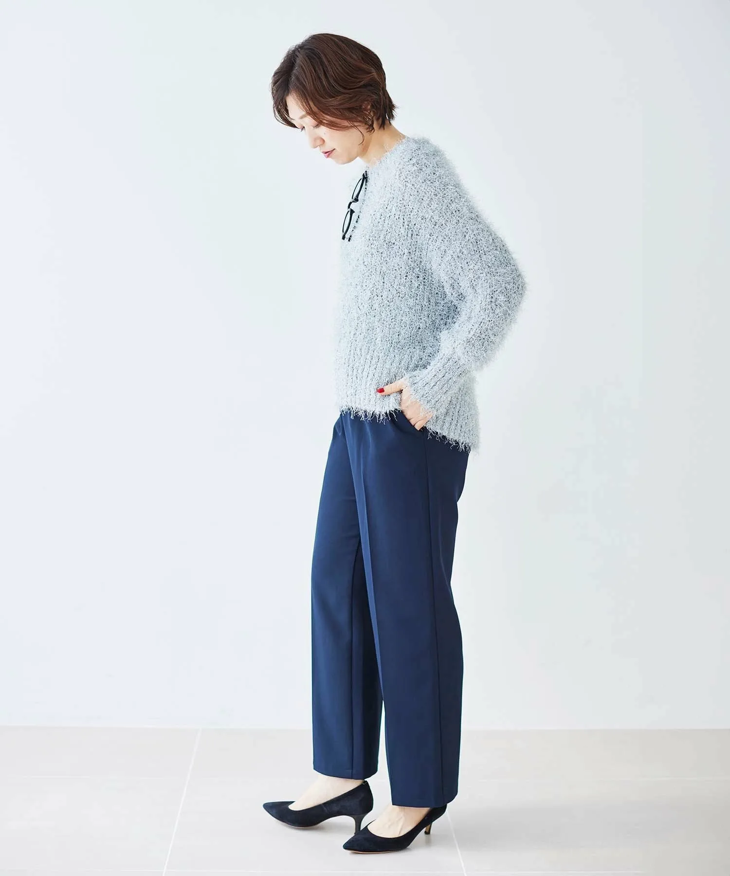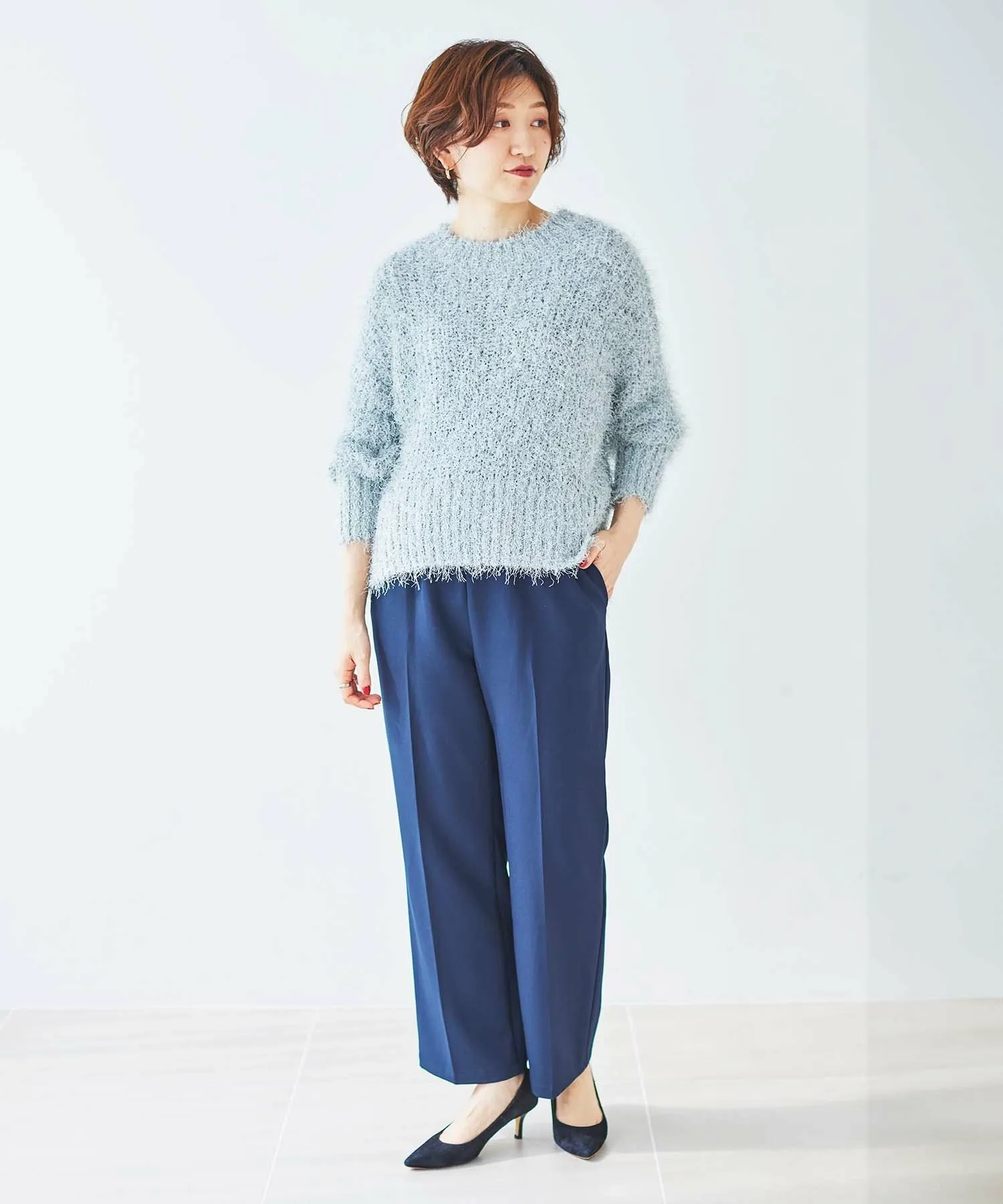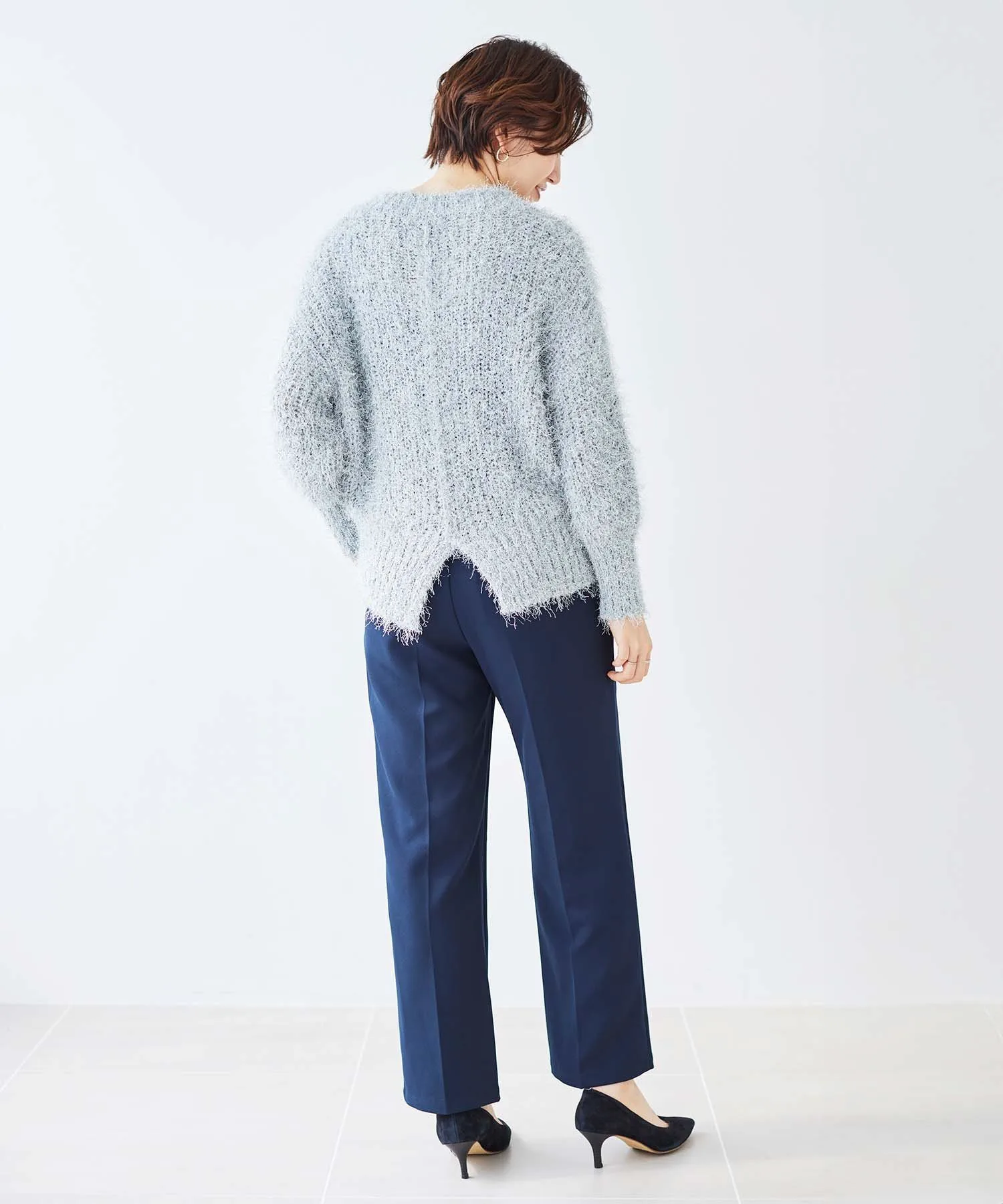 Этот свободный, мелкий трикотаж в рубчик выполнен из модного в этом году блестящего материала. Мягкая, ворсистая пряжа уменьшает зуд. Ключевые особенности: Несмотря на то, что он изготовлен из блестящего, пушистого материала, он также мягкий на ощупь. Свободный, объемный силуэт создает изысканный образ. Рекомендуемые сочетания: Разрез сзади позволяет заправить футболку с длинными рукавами или создать многослойный образ. Мы рекомендуем сочетать его с топом, топом с высоким воротником или рубашкой. Он хорошо сочетается с широким спектром низов, включая узкие юбки и джинсы. Отзыв сотрудника: Сотрудник А: 40 лет, рост 152 см, прямое телосложение, обычно размер 36-38, на мне размер 38. Посадка: Свободная. Материал: Мягкий и удобный, практически не вызывает зуда. Комфорт при ношении: Свободный крой и длинная длина, поэтому не подчеркивает линии фигуры. Блестки не бросаются в глаза, что позволяет легко сочетать вещи с другими элементами гардероба.