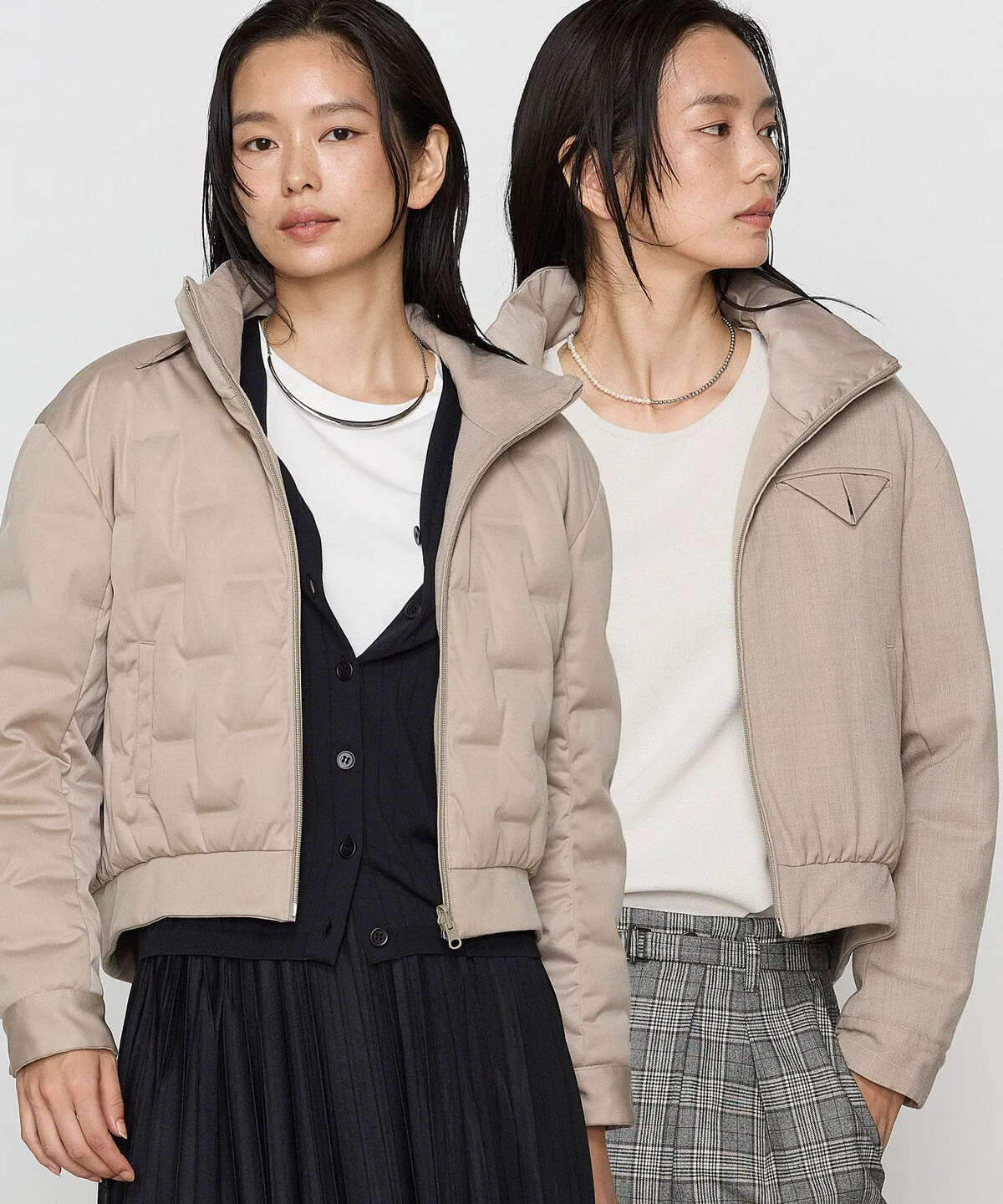 Эта двусторонняя короткая пуховая куртка имеет два совершенно разных варианта дизайна с обеих сторон.
