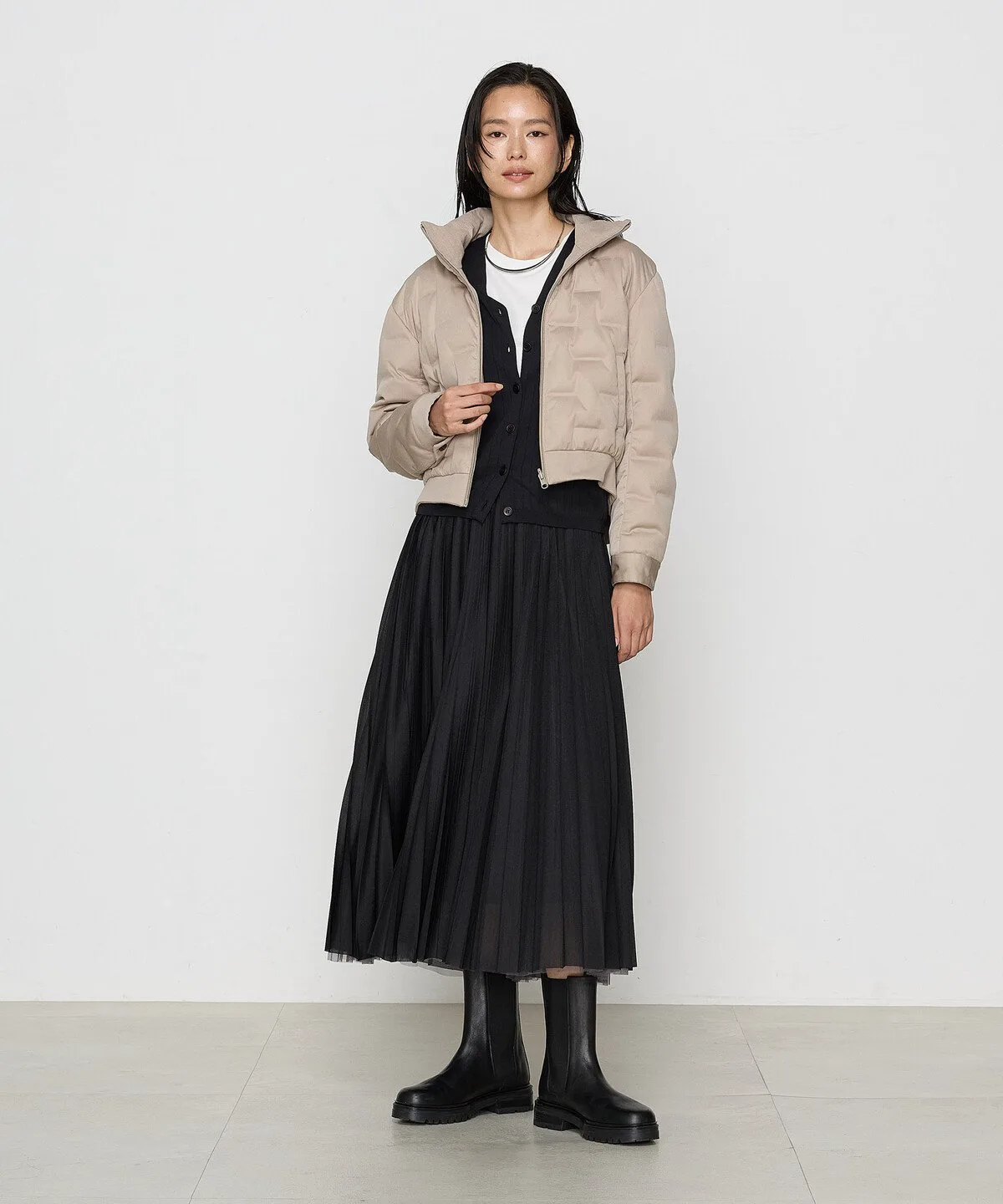 Узор в форме буквы «-» достаточно крупный для свежего вида, а количество пуха сведено к минимуму, чтобы куртка не выглядела громоздкой и обеспечивала элегантный вид.