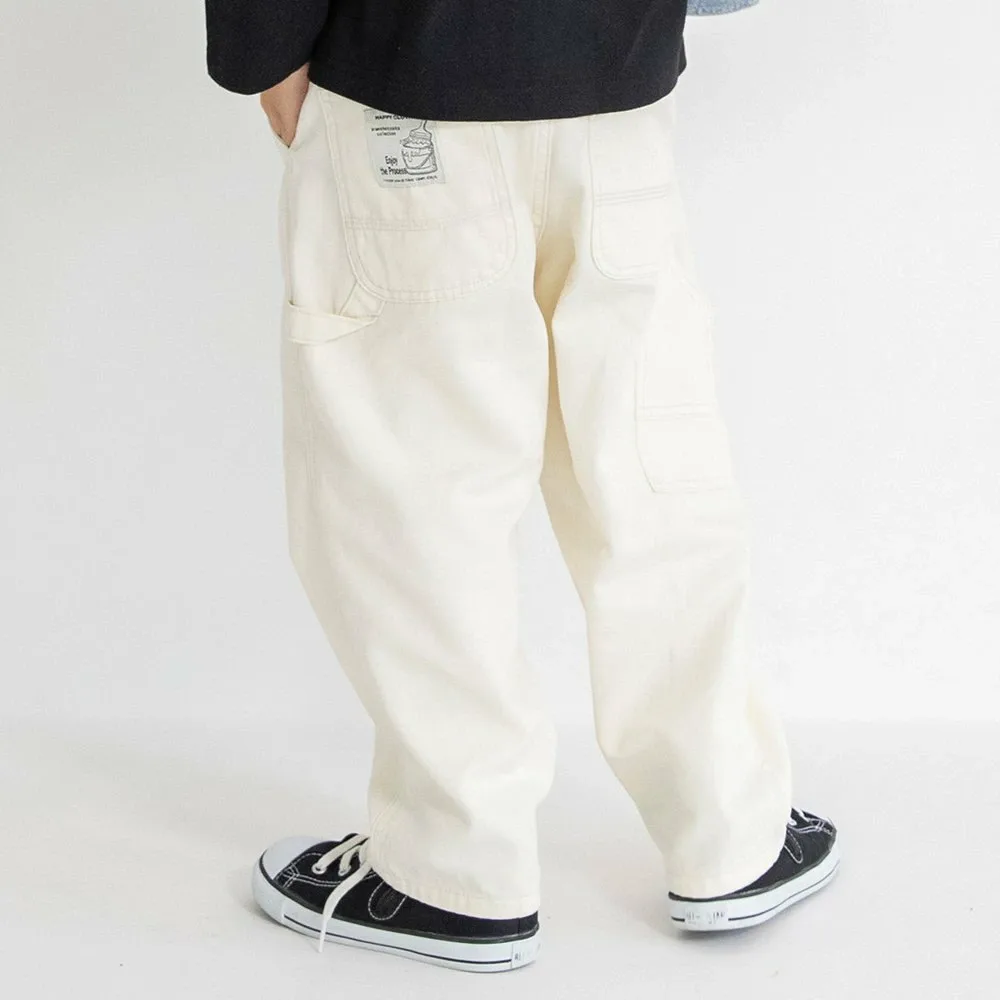Рабочие брюки, которые произошли от рабочих брюк, характеризуются петлями для подвешивания молотков и карманами для хранения кистей и других инструментов.