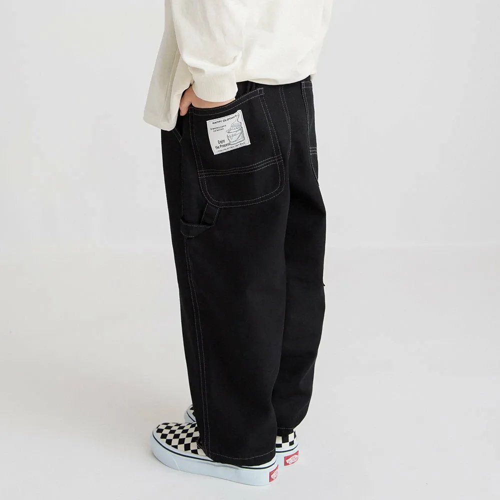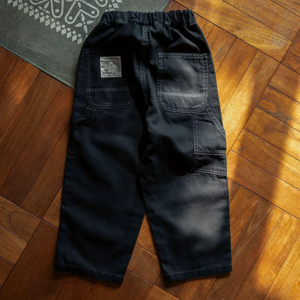 Рабочие брюки, которые произошли от рабочих брюк, характеризуются петлями для подвешивания молотков и карманами для хранения кистей и других инструментов.
