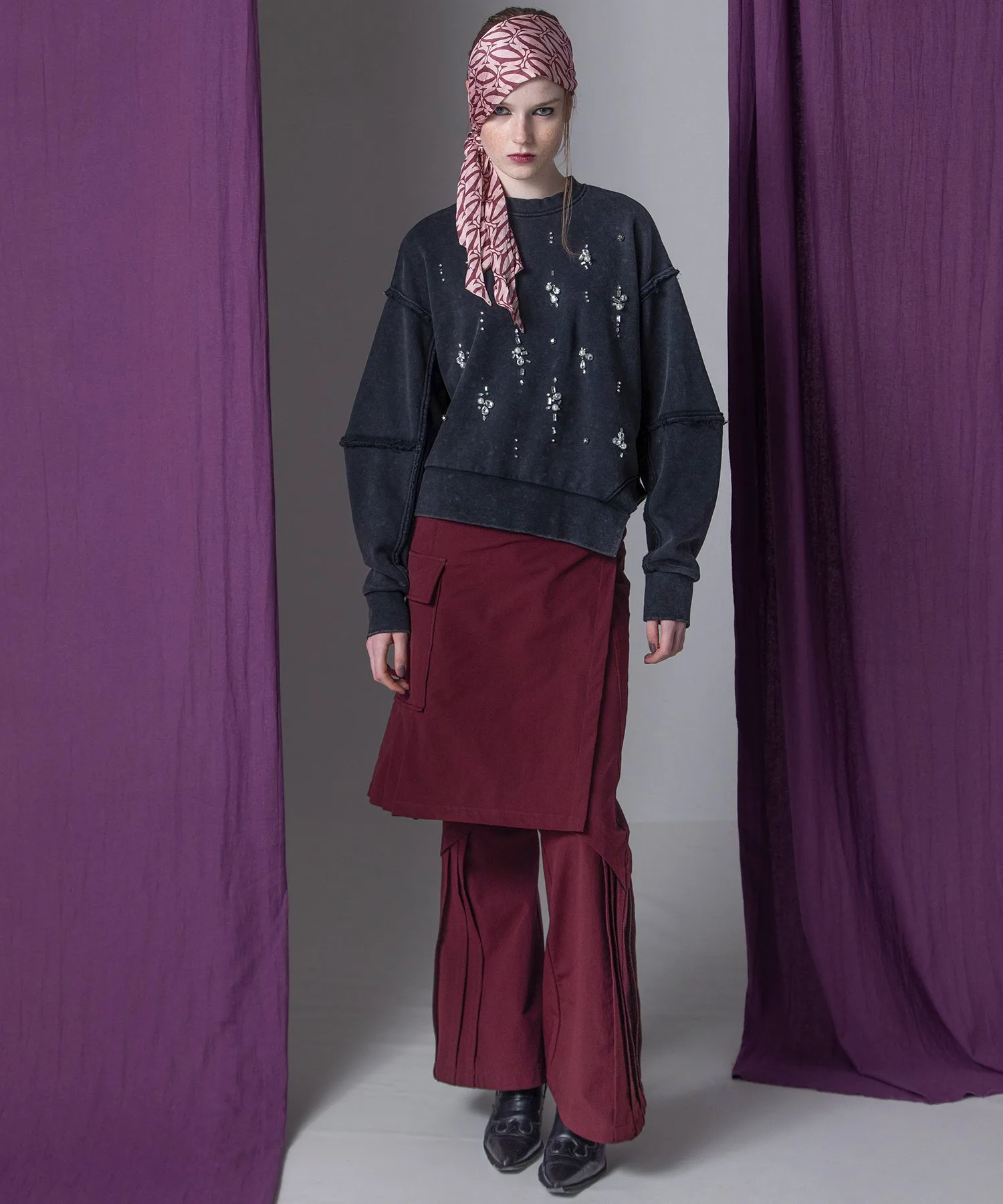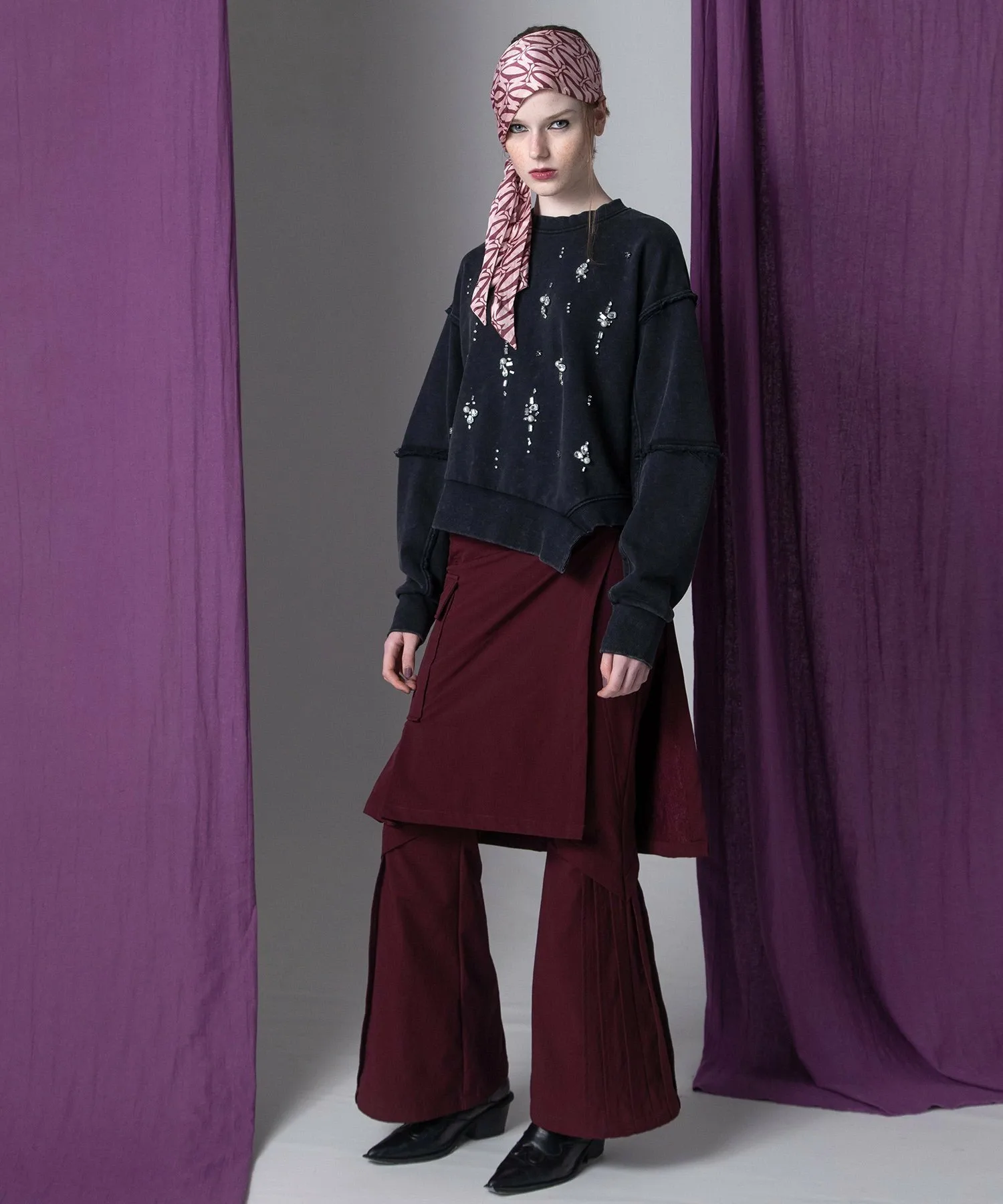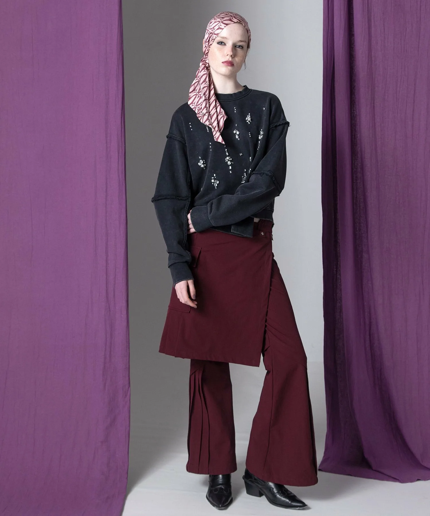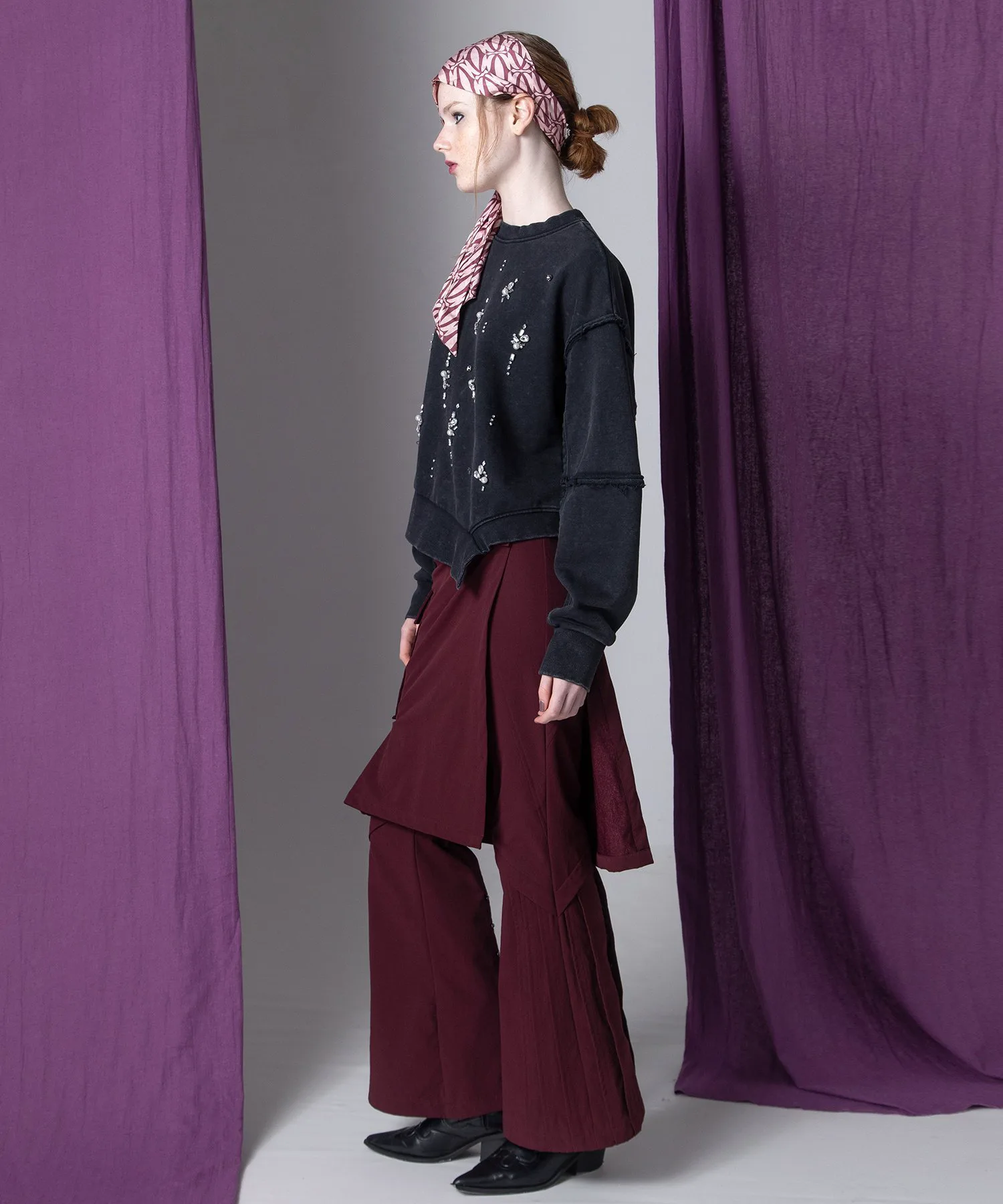Брюки легко снимаются с помощью пуговиц в горошек, поэтому их можно носить отдельно.