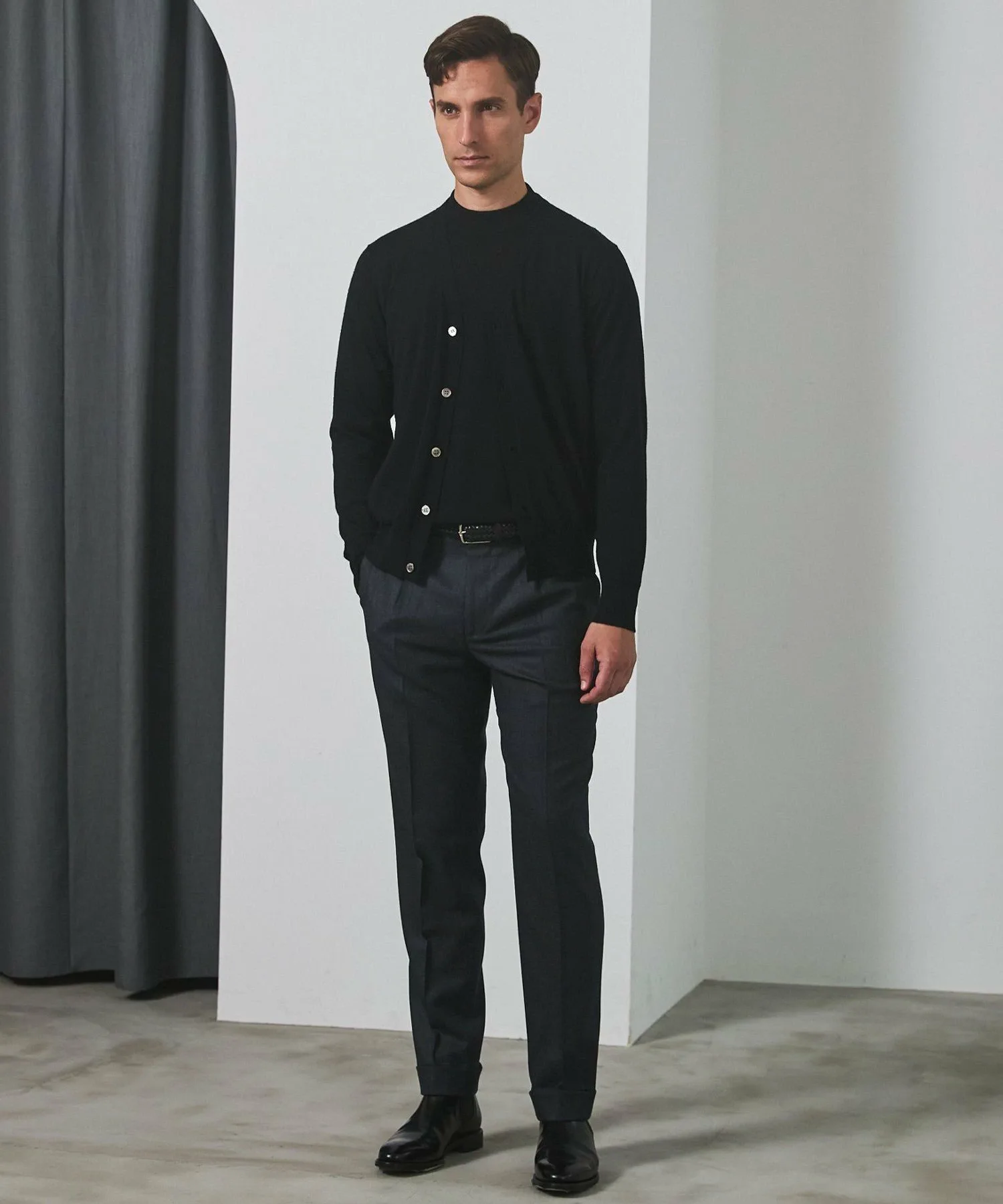 Особенности материала: Названный «CASH WOOL (CASH = кашемир)», он обладает мягкой текстурой, напоминающей кашемир. Чрезвычайно тонкие волокна обеспечивают комфортное, не вызывающее раздражения ощущение даже при непосредственном контакте с кожей. Изготовленная из лучшей, тщательно отобранной австралийской «экстратонкой мериносовой шерсти», эта популярная и хорошо известная ткань давно признана на конкурсах вязания из мериносовой шерсти за исключительное качество. Антибактериальные свойства шерсти также помогают подавлять бактерии, вызывающие неприятный запах, обеспечивая комфортную посадку без запаха даже после длительного ношения. Стандартный облегающий силуэт идеально подходит как для ношения под пиджаком, так и без него. Эластичный трикотаж изготовлен с использованием техники кроя, характерной для деловых брендов, что обеспечивает исключительный комфорт и красивый, не мнущийся силуэт. Характеристики: Подробности см. на изображениях. Оригинальный общий дизайн кроя: Уникальный дизайн «кроя» бренда разработан с учетом мужской фигуры. Обработка пряжи, предотвращающая усадку, повышает блеск и плотность. Ткань также сохраняет свою элегантную текстуру, позволяя стирать ее в домашних условиях.