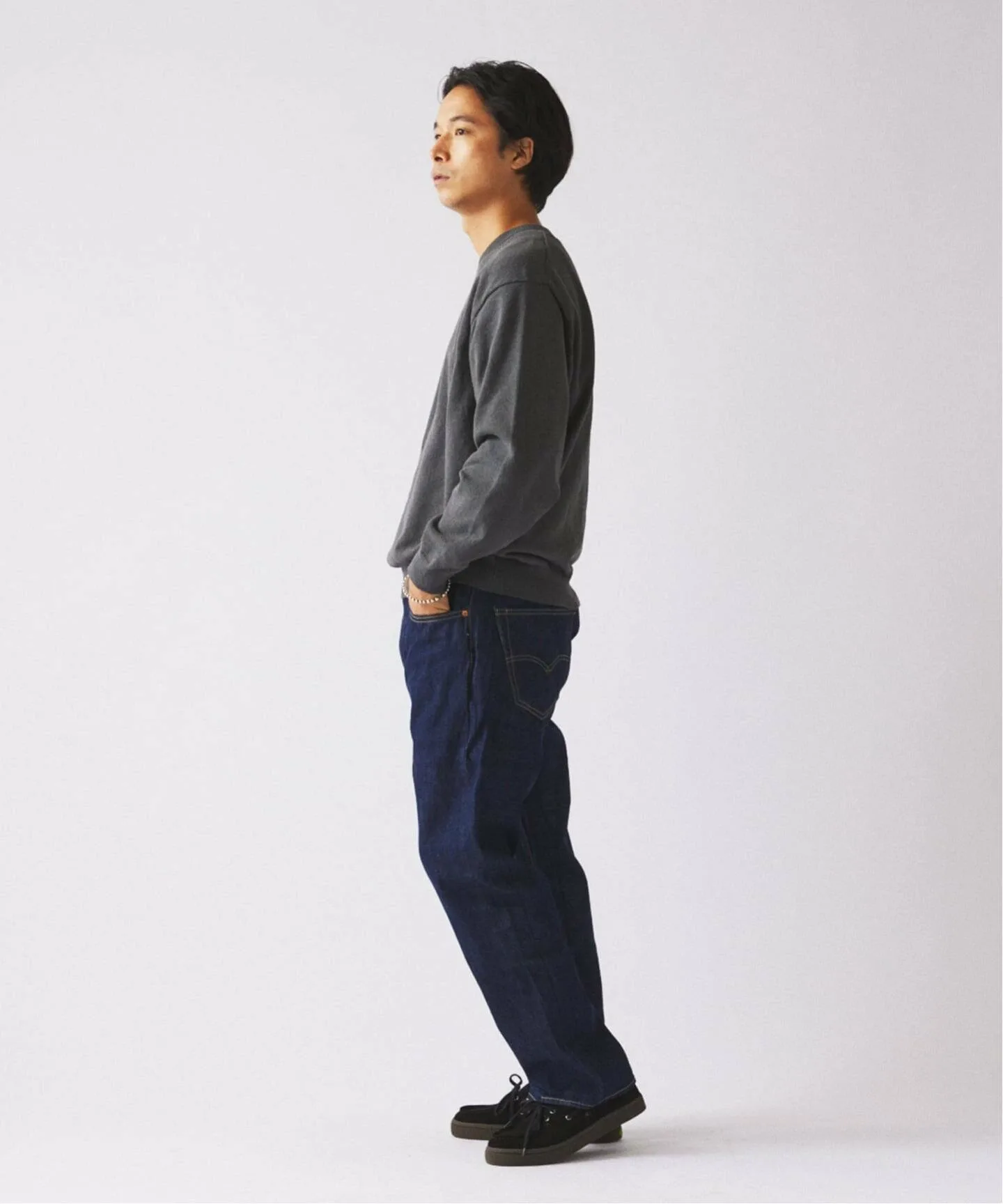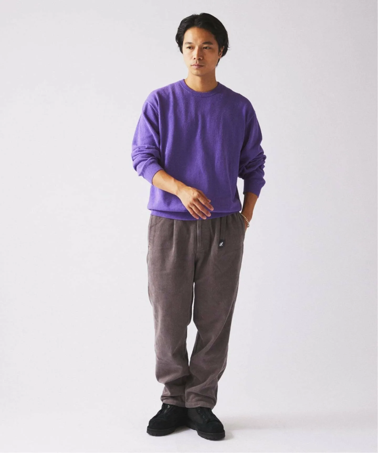 Расчетный свободный крой гарантирует, что изделие не будет слишком сильно прилегать к телу при ношении отдельно, но и не будет выглядеть громоздким под курткой или пальто. Минималистичный дизайн позволяет уникальной текстуре материала выделяться.