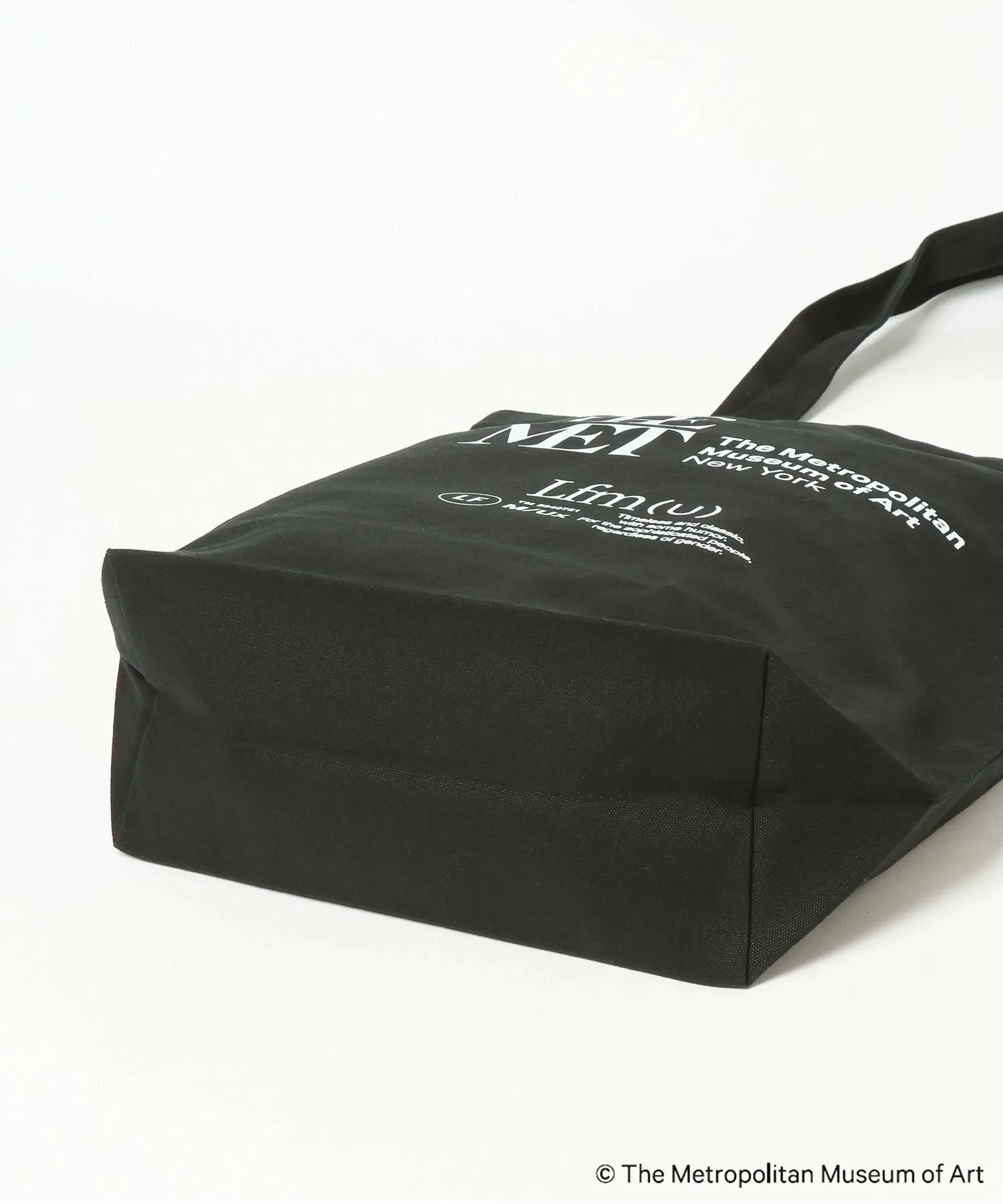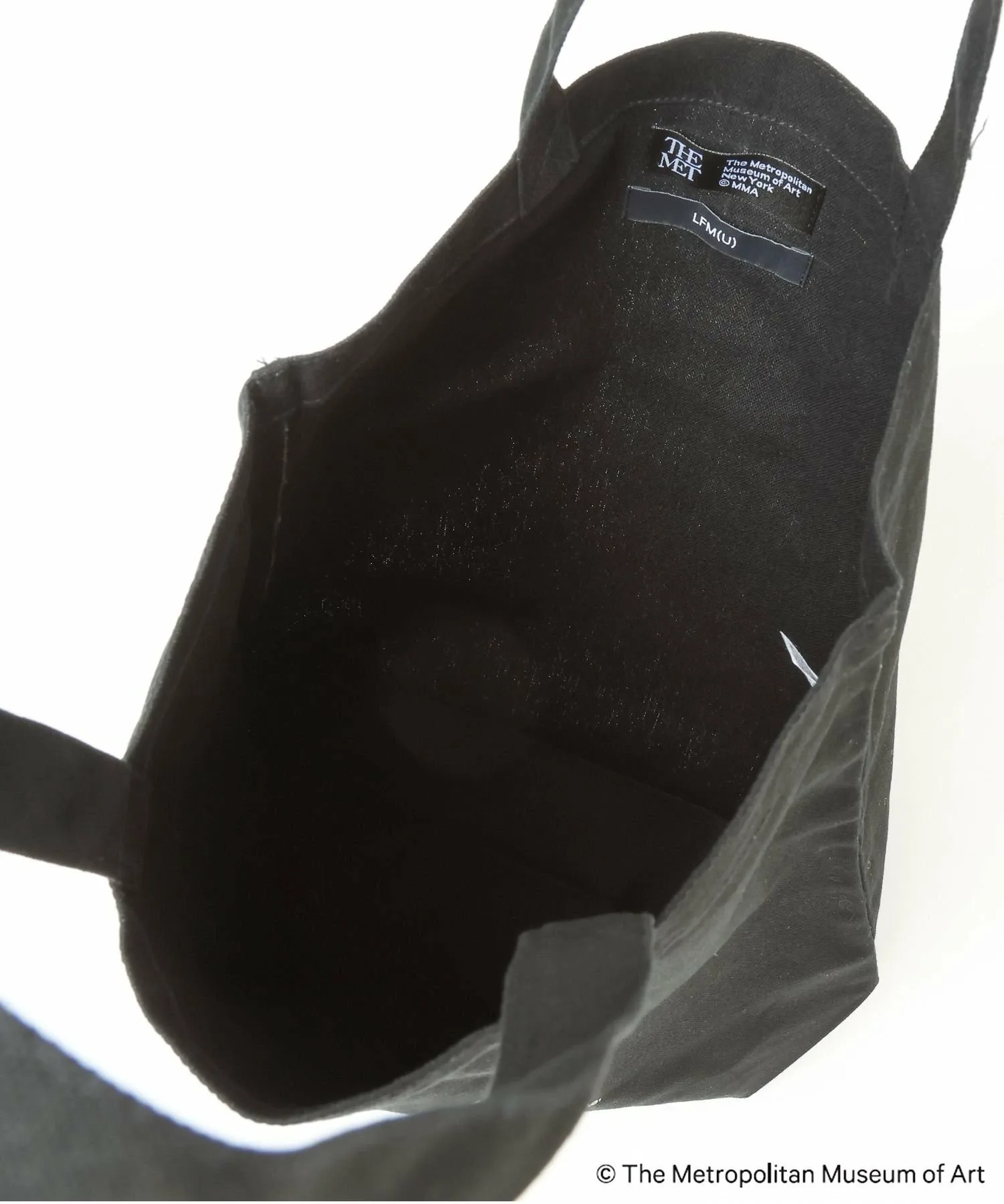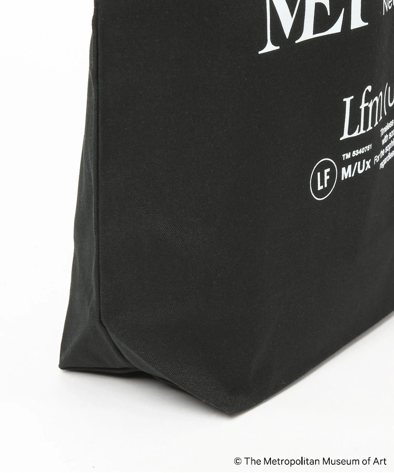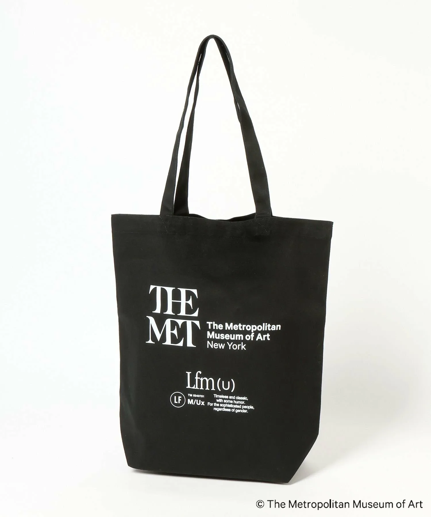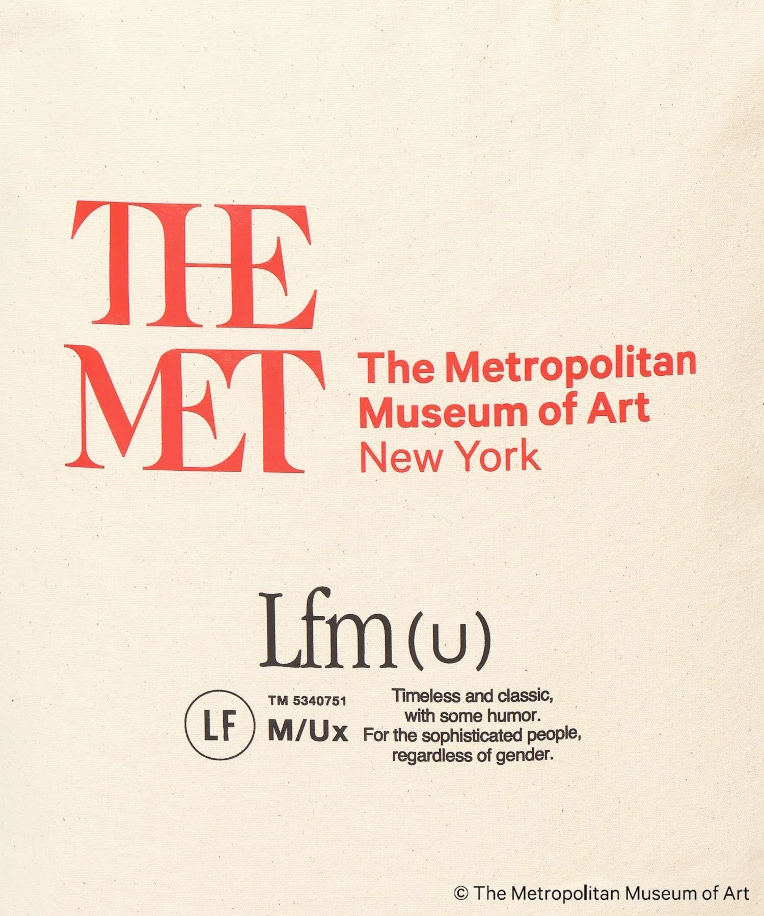 Символический логотип Метрополитен-музея и концептуальный логотип LFM(U) нанесены двойным слоем, создавая эффектный дизайн.