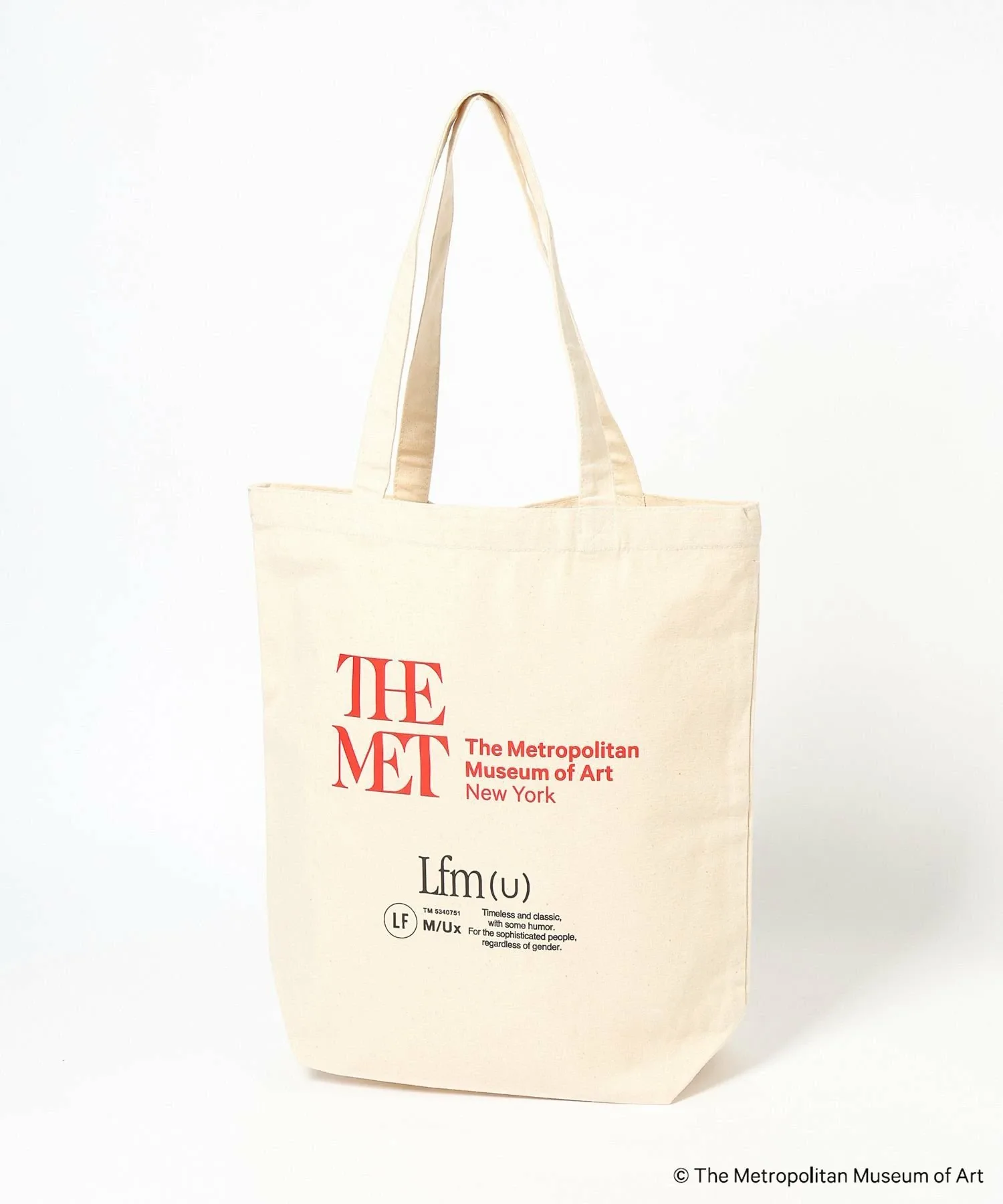 Символический логотип Метрополитен-музея и концептуальный логотип LFM(U) нанесены двойным слоем, создавая эффектный дизайн.