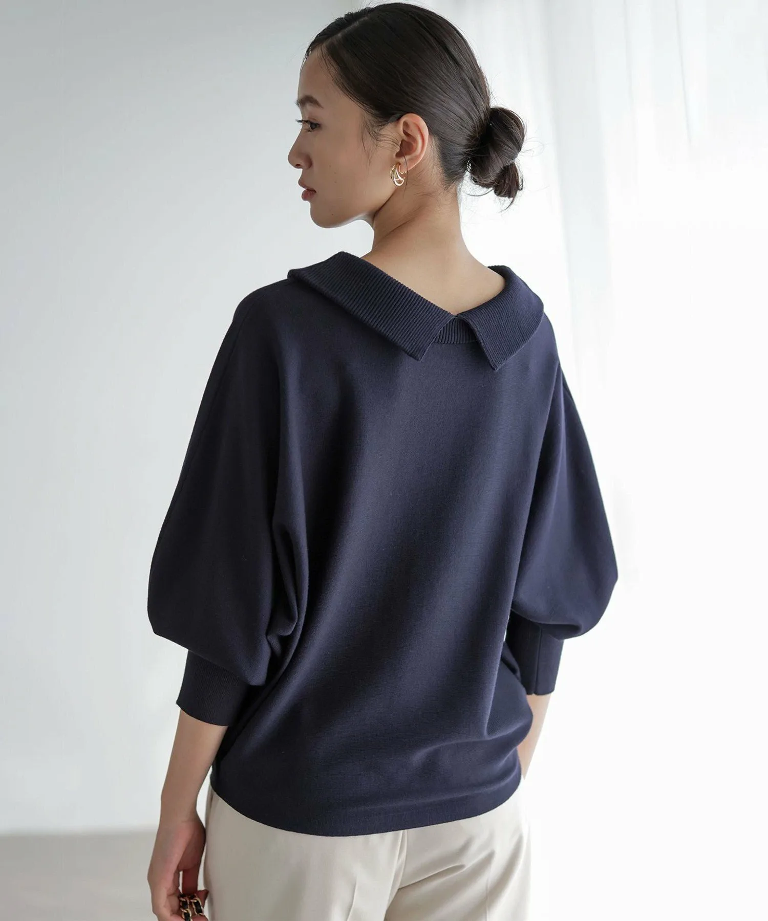 [Комментарии сотрудников]▼Рост: 158 см | Размер 2 (обычно ношу размер M) При ношении задом наперед создается воротникообразный дизайн для милого образа. Несмотря на свободный крой, длина не слишком большая, поэтому рекомендуется сочетать с расклешенной юбкой!