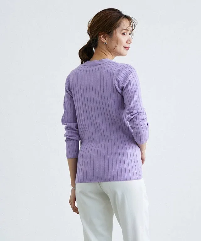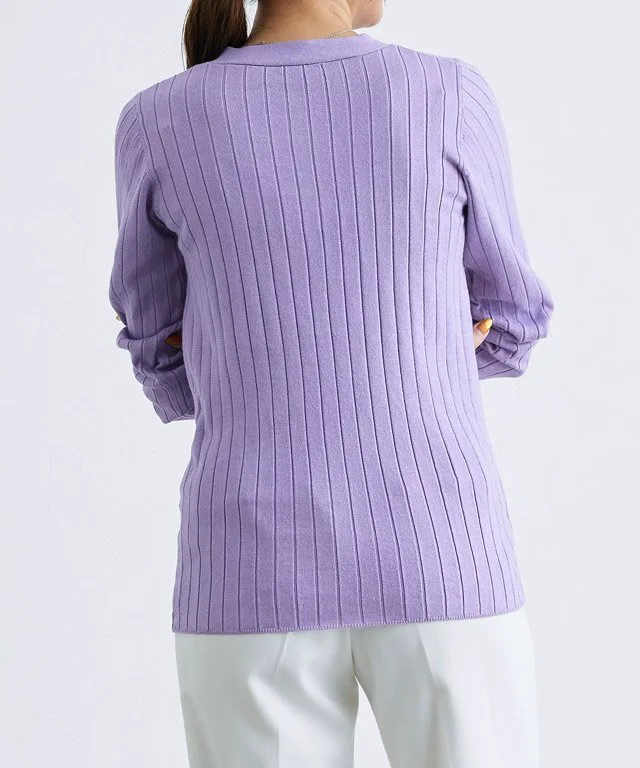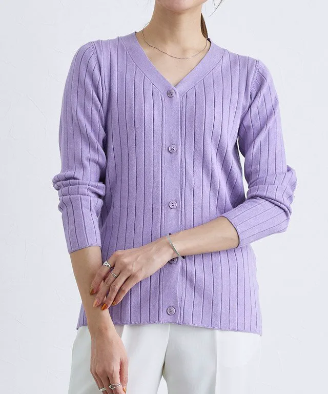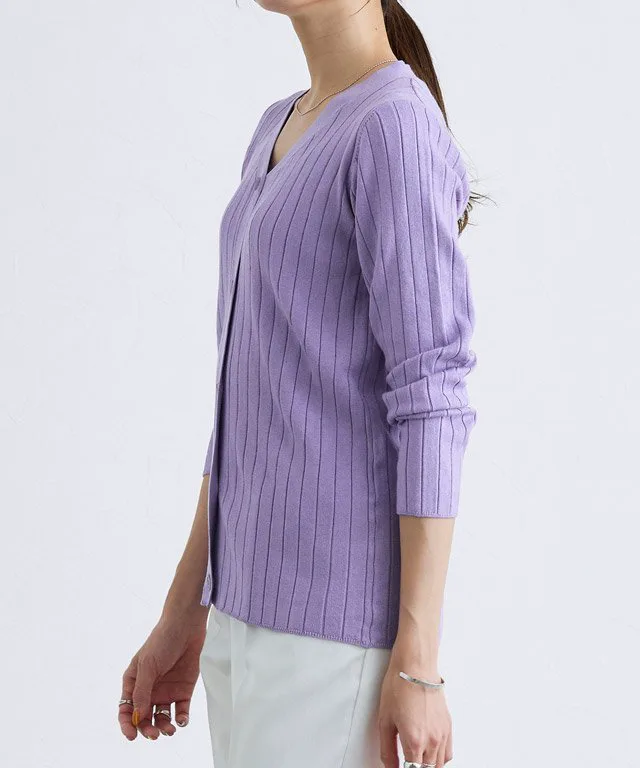 Изделие слегка свободного кроя и с ребристой вязкой, придающей ему аккуратный вид. Отличный дизайн, который можно носить как кардиган или застегнуть на пуговицы как топ.◎Мы также рекомендуем носить его в комплекте с топом из того же материала.