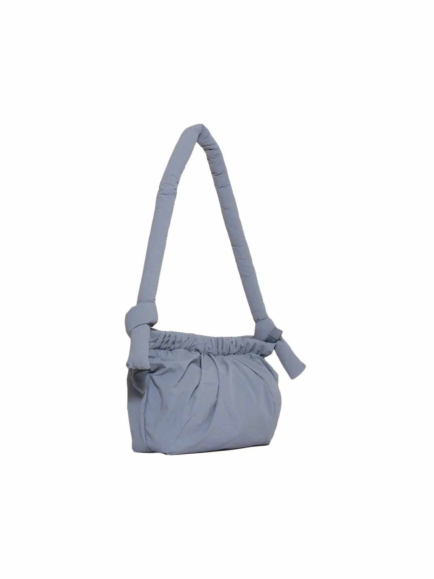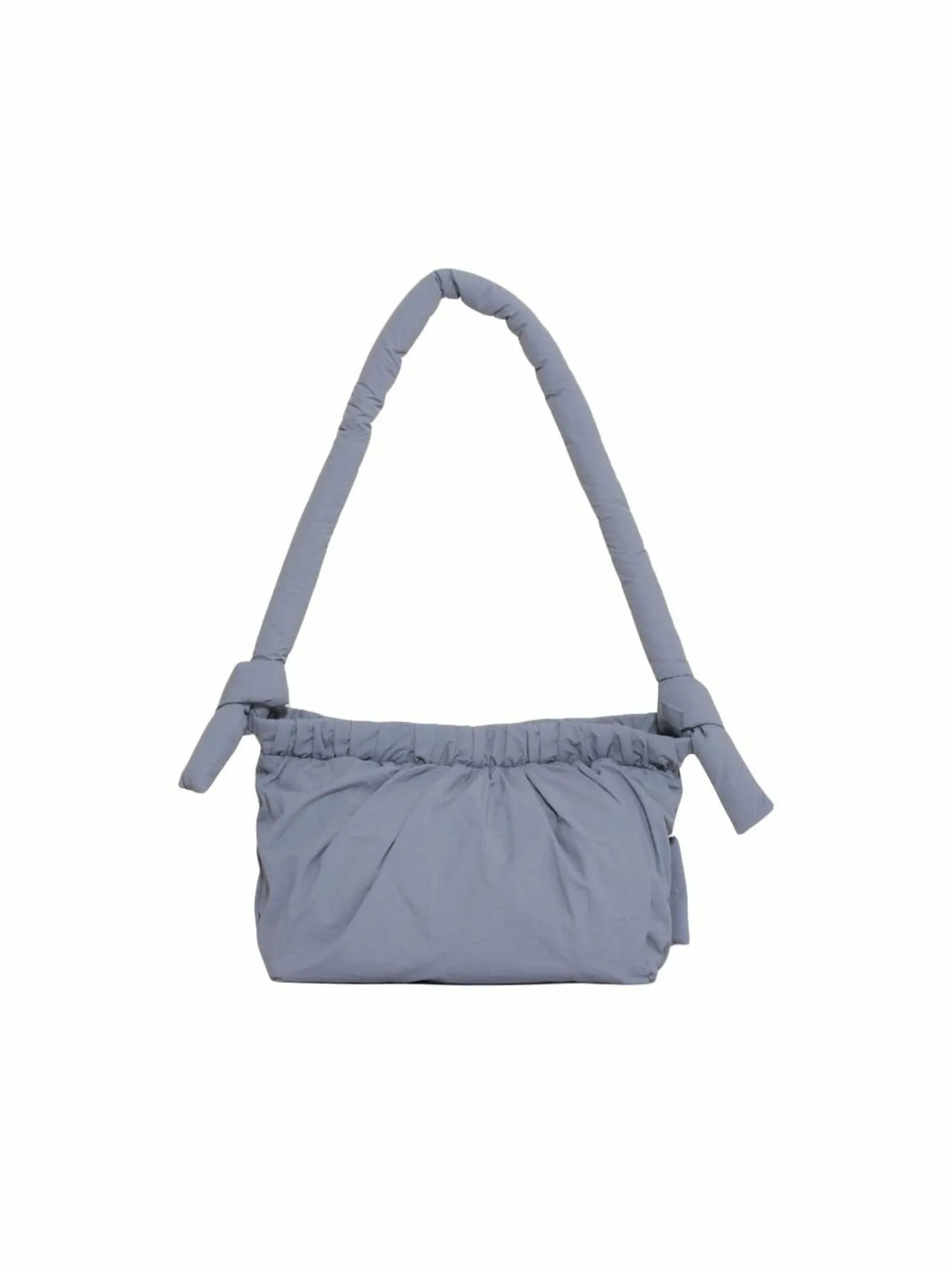 «NONA» — это сумка с присборенным дизайном в качестве главной особенности. Она вдохновлена складками, встречающимися в коллекции обуви. Изготовлена из выстиранного переработанного нейлона, что придает ей текстурированную поверхность. В плечевой ремень вставлена круглая подкладка для уменьшения нагрузки на плечо, а пышная форма также является дизайнерской особенностью. Внешний карман на молнии расположен вдоль линии складок, создавая дизайн, сочетающий функциональность и детали.
