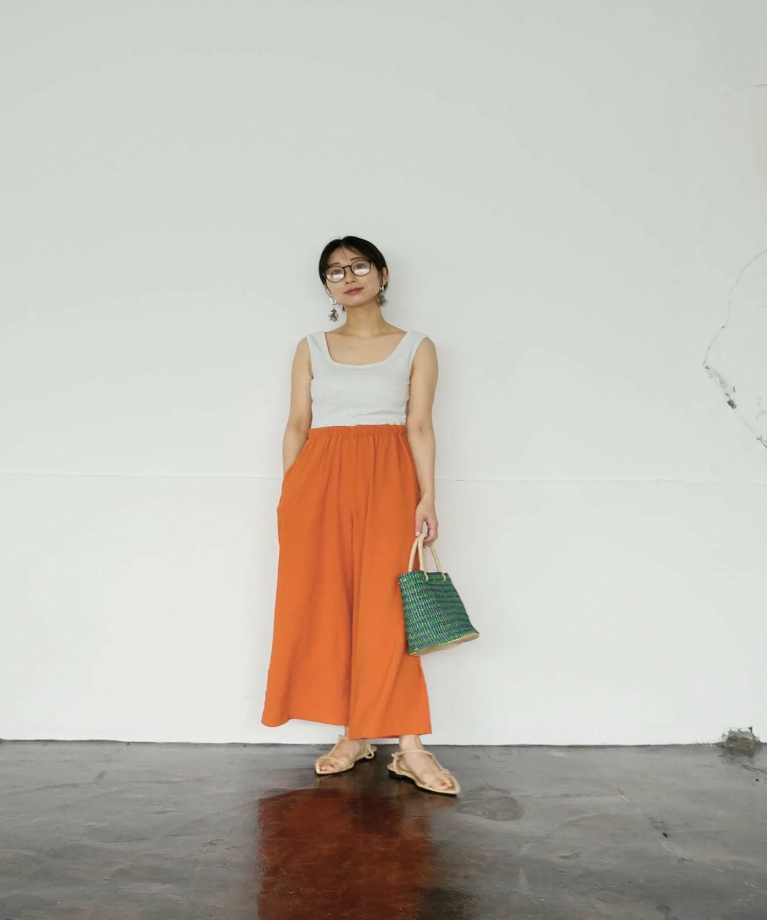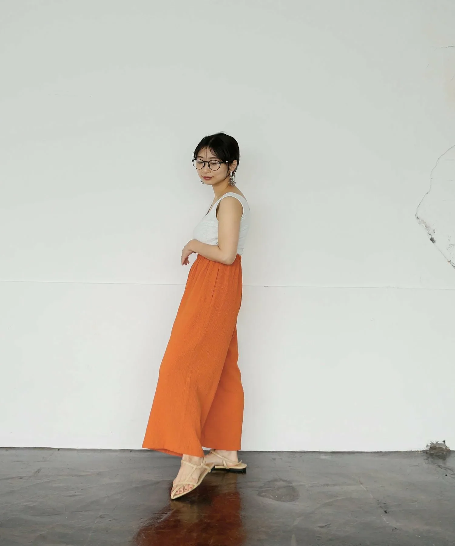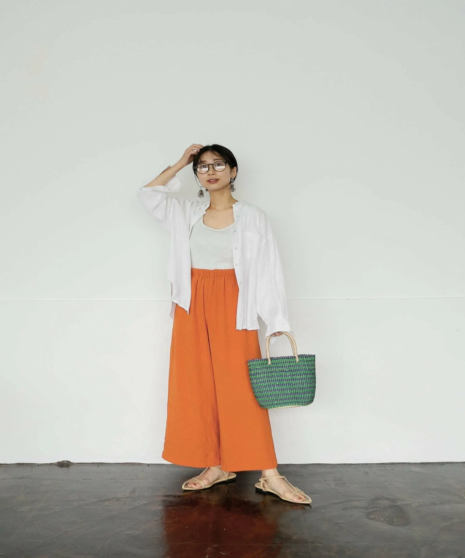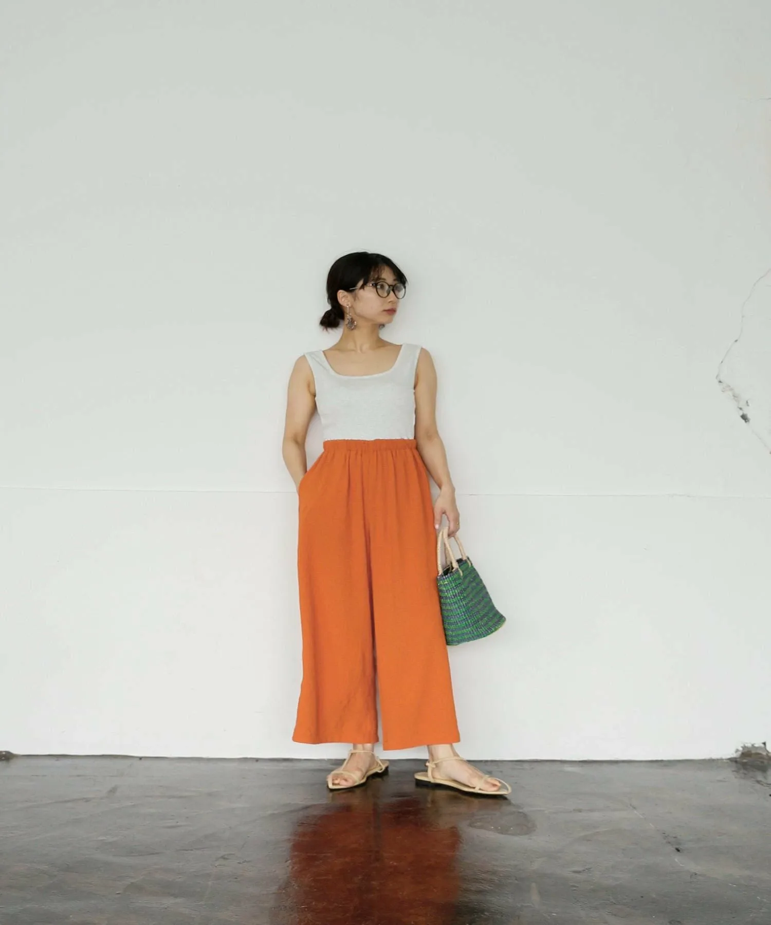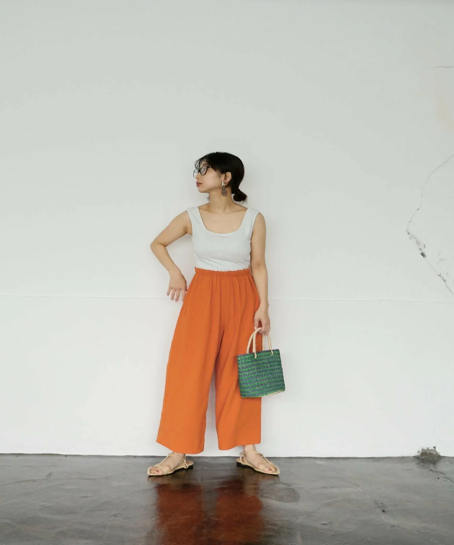 Длина брюк, позволяющая видеть щиколотки, добавляет расслабленности.
