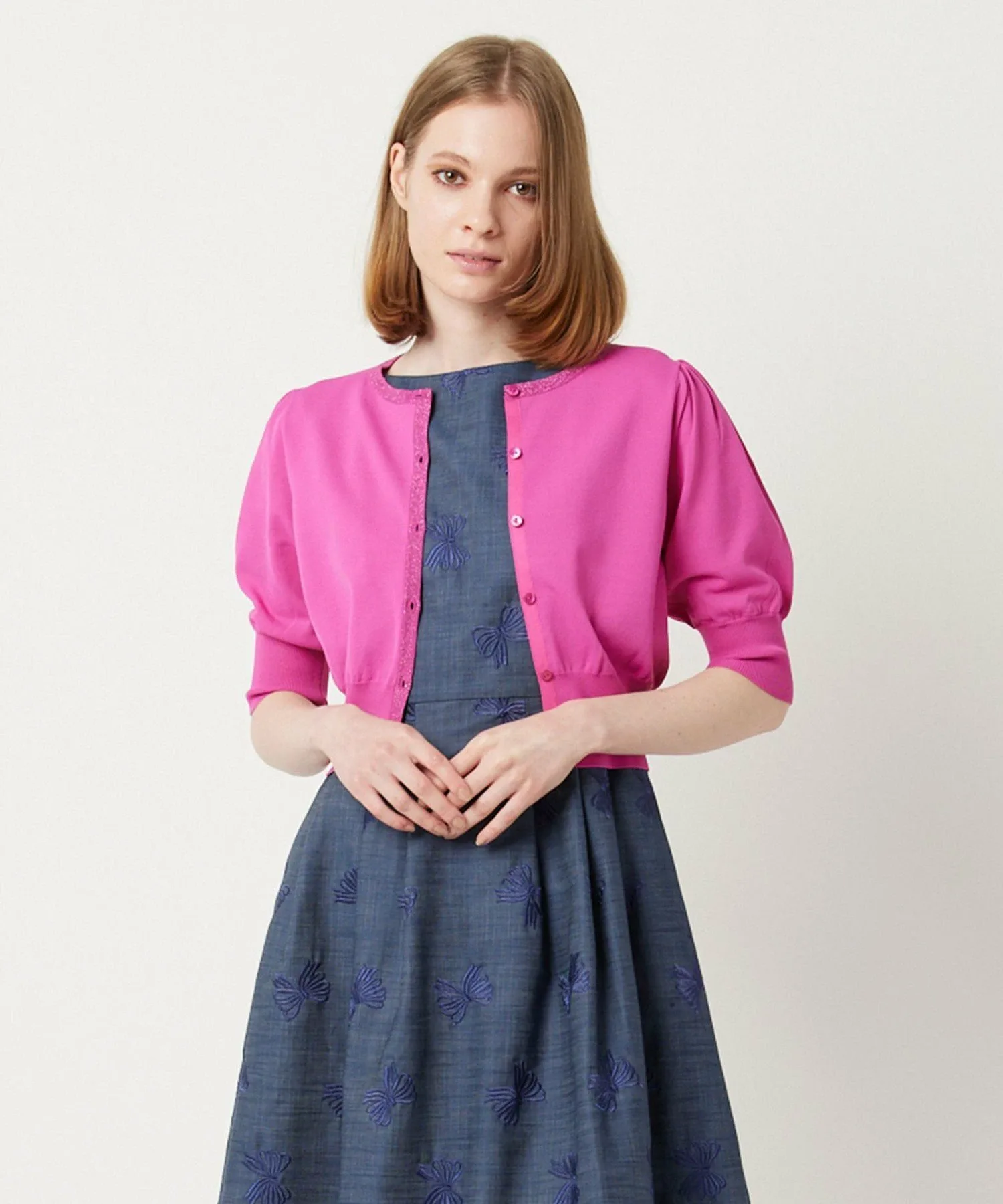 Этот классический кардиган с рукавами-баллонами имеет узкие плечи и пышные рукава, что придает ему модный, но в то же время нежный вид. Тонкий материал достаточно плотный, чтобы носить его с весны до начала осени. В планку добавлена блестящая нить для придания ему более гламурного вида.