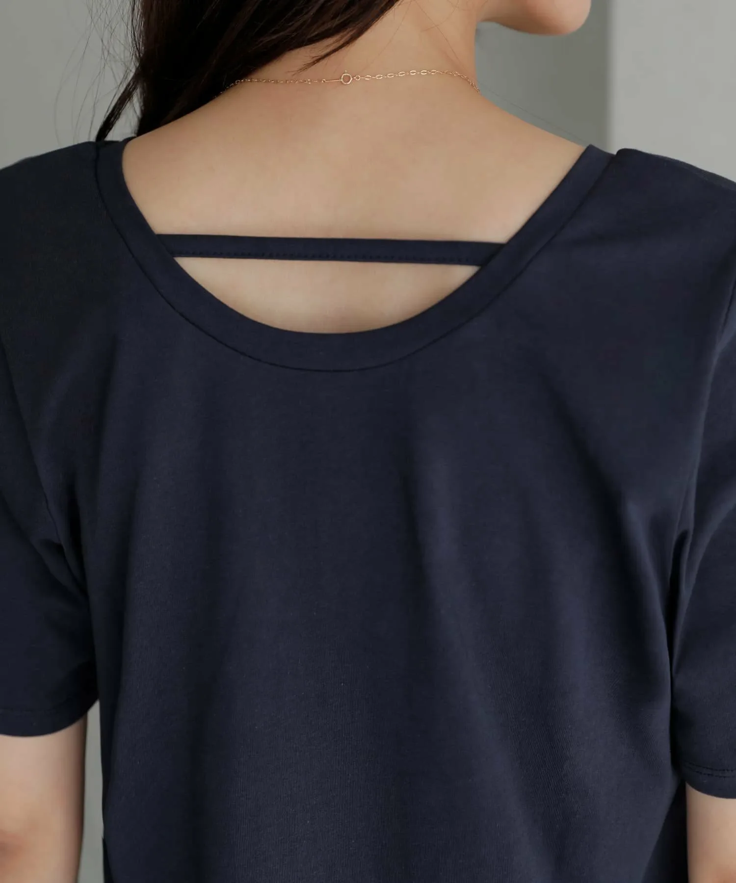 Сзади имеется слегка открытый круглый вырез с декоративными завязками. Сзади он выглядит симпатично и не будет показывать майки или другие вещи, надетые под ним (за исключением маек с высокой спинкой).