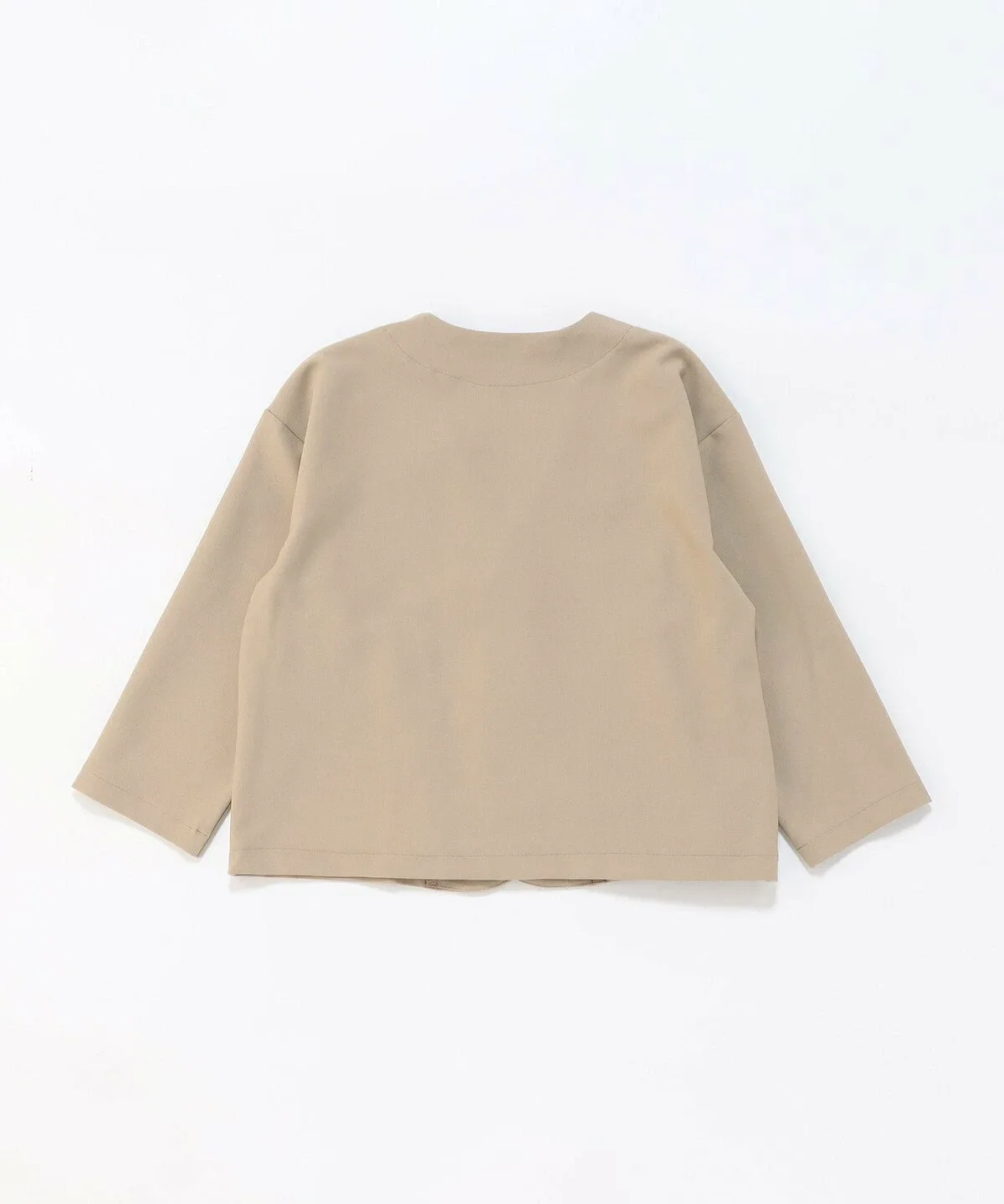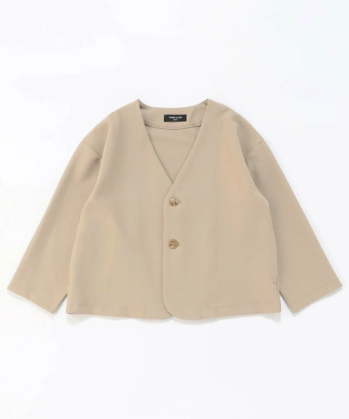 Этот пиджак имеет свободный силуэт без воротника и может носиться как кардиган.
