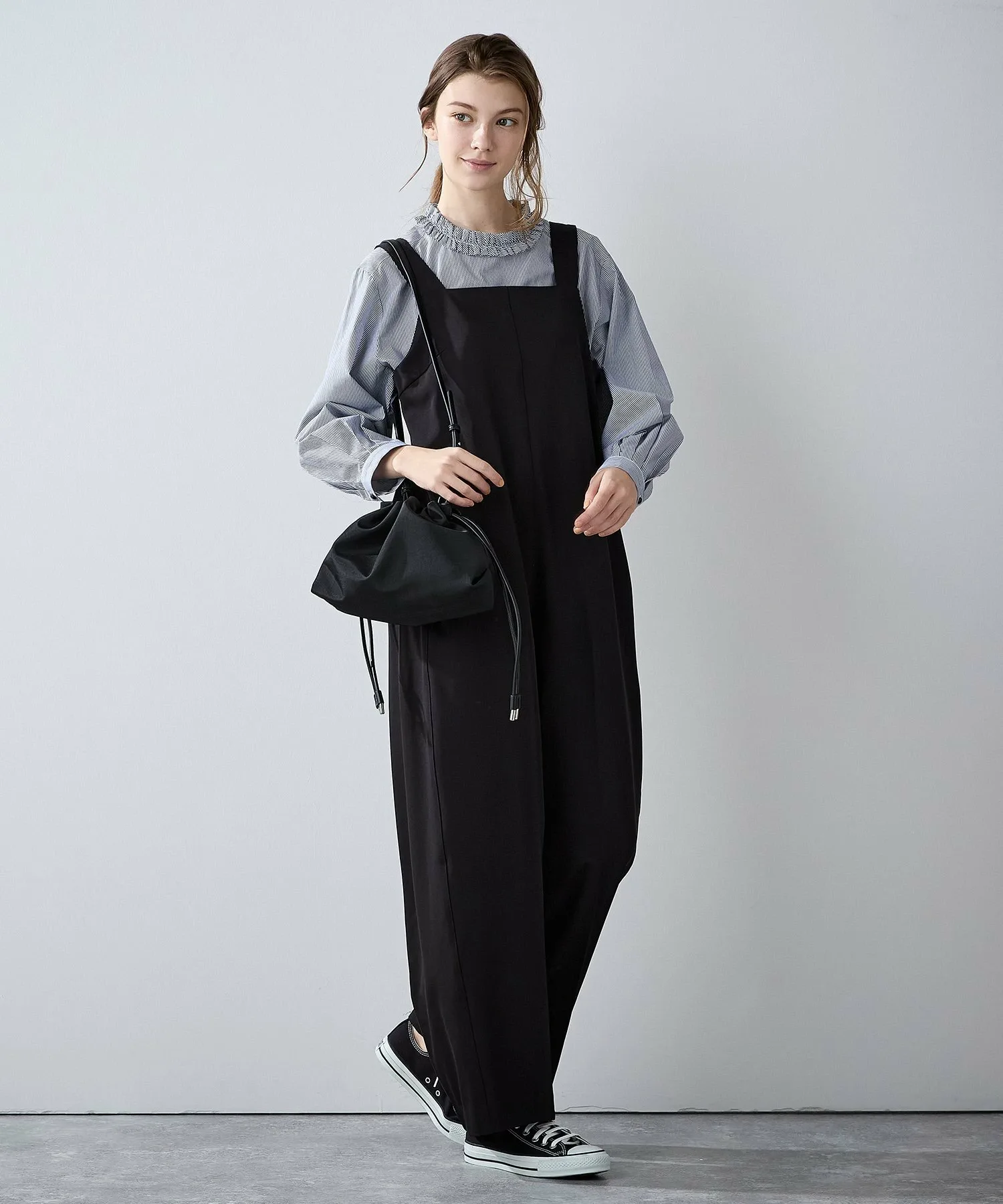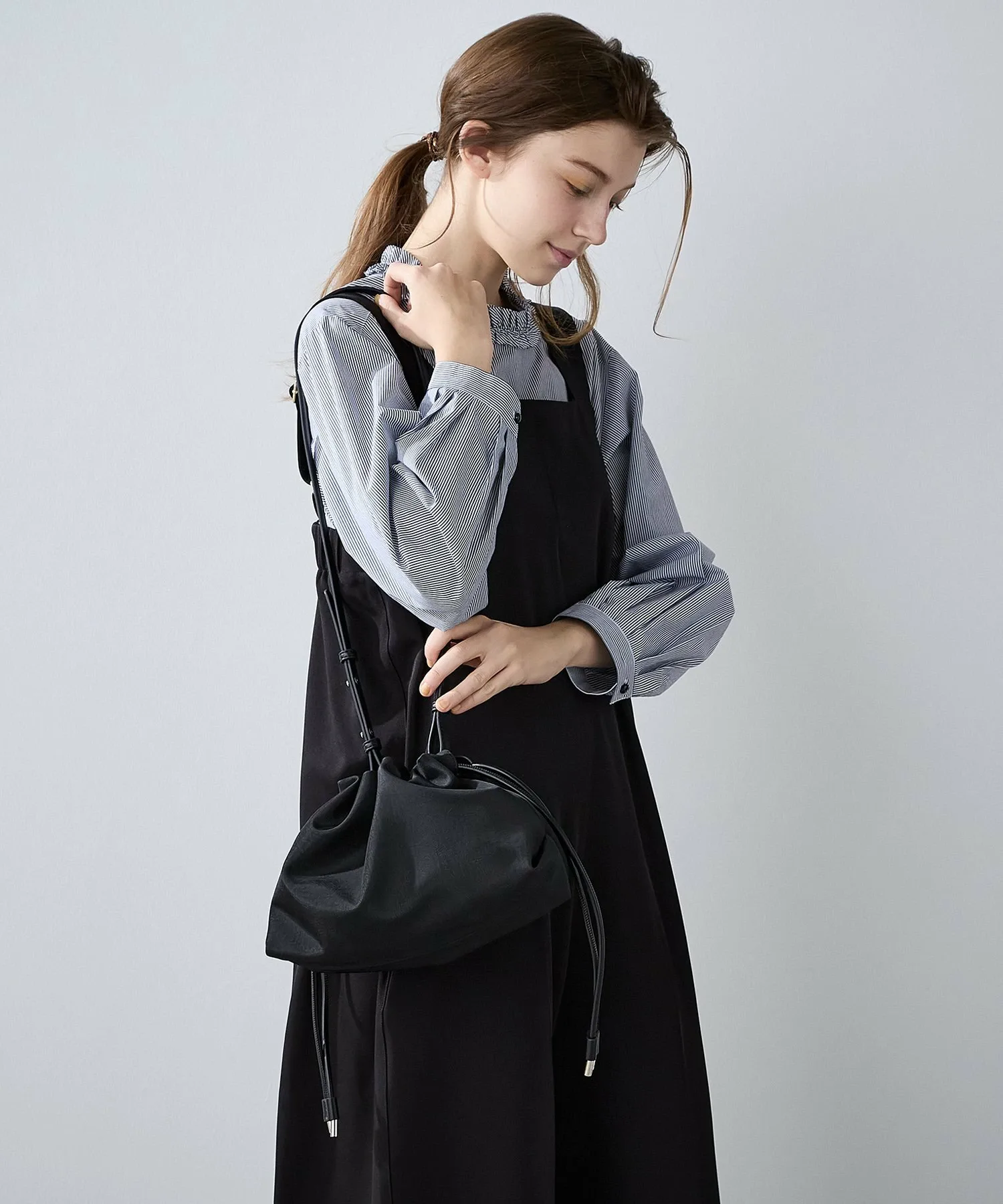 Эта миниатюрная сумка через плечо идеально подходит для переноски необходимых вещей во время короткой поездки. Она изготовлена из легкого, удобного в обращении нейлона. Вы можете изменить форму, затянув шнурок. Также имеется внутренний карман.