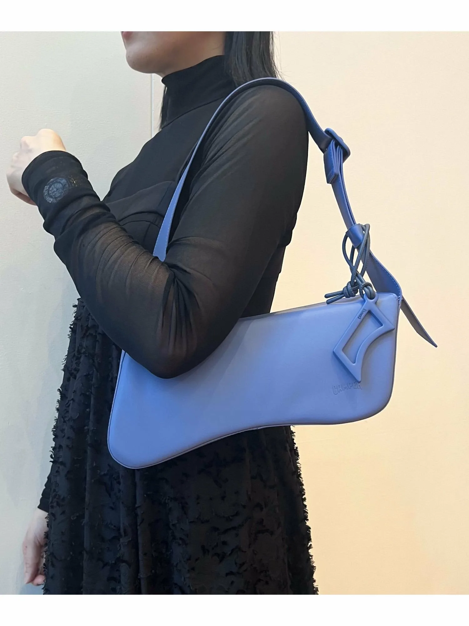 Вдохновленная курсивным логотипом в виде мостика на обуви, культовая, наклонная форма является ключевой особенностью. Искаженные, изогнутые линии передают ощущение движения, связанное с темой сезона. Асимметричный дизайн привлекает внимание и добавляет изюминку любому образу.