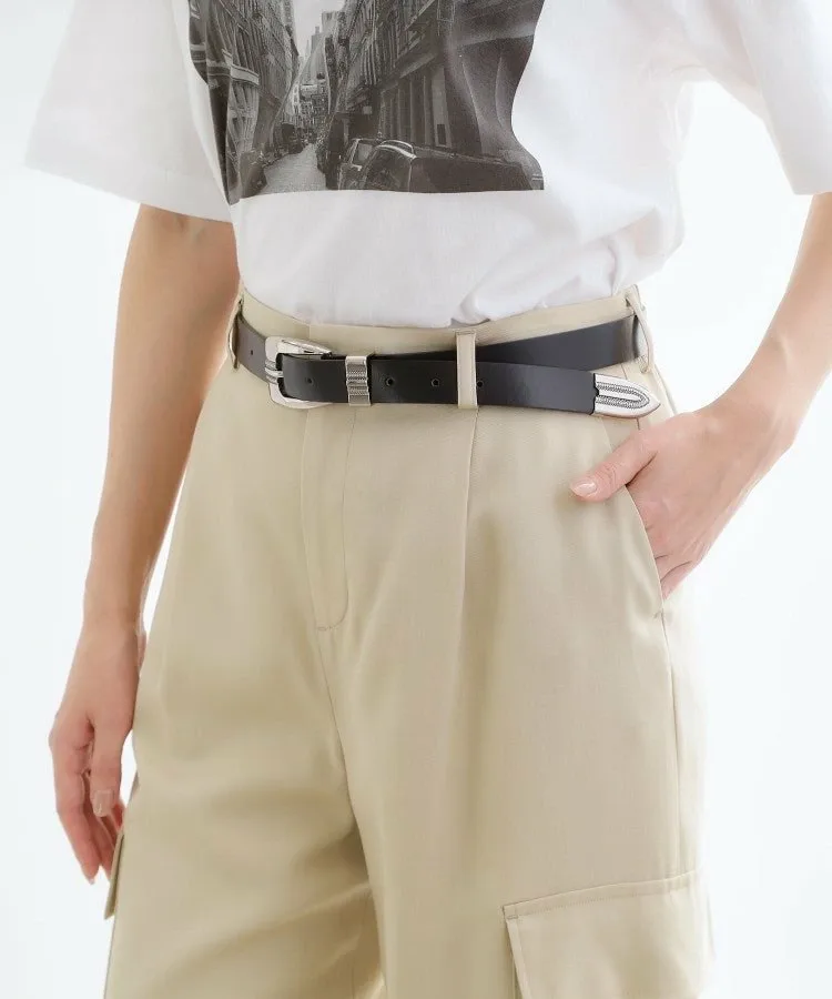 Ремень шириной 25 мм с серебряной пряжкой в западном стиле.