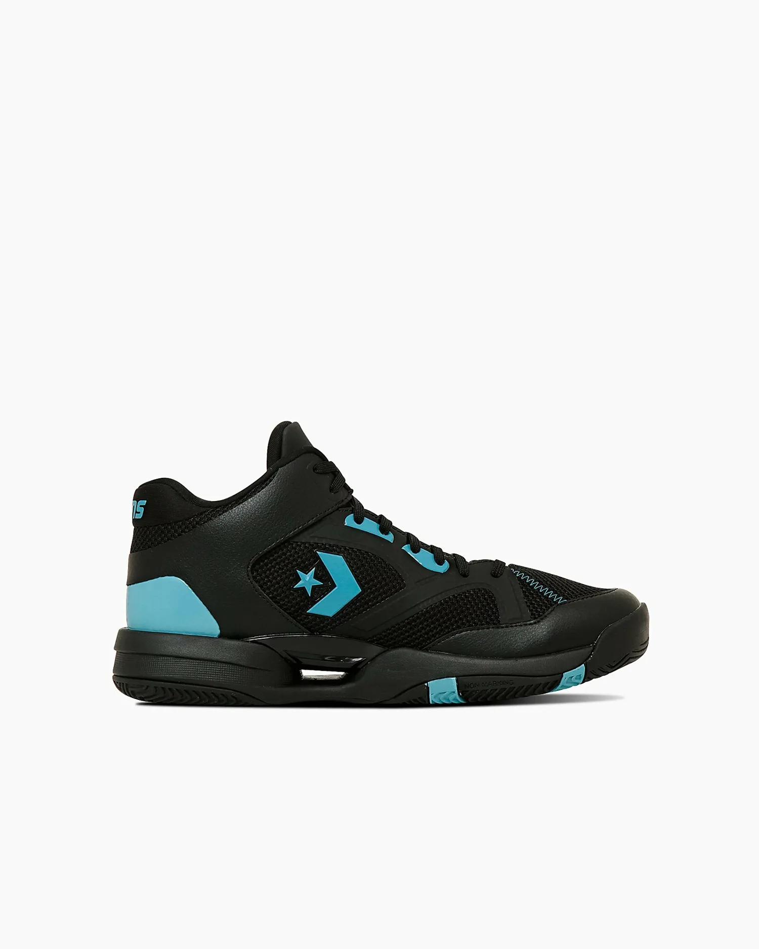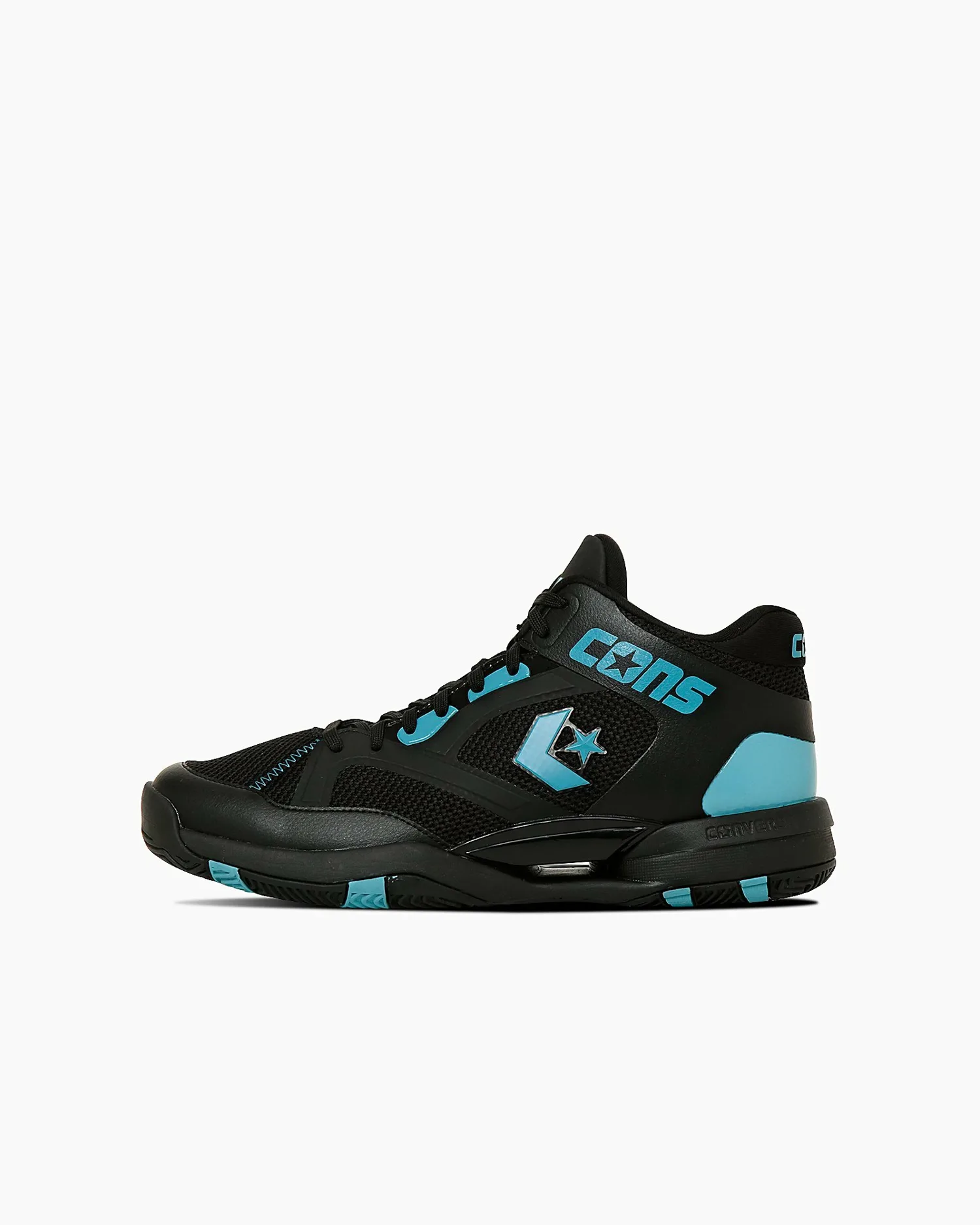Доступна в одном цвете: черный/бирюзовый, популярный цвет среди архивных баскетбольных кроссовок Converse.
