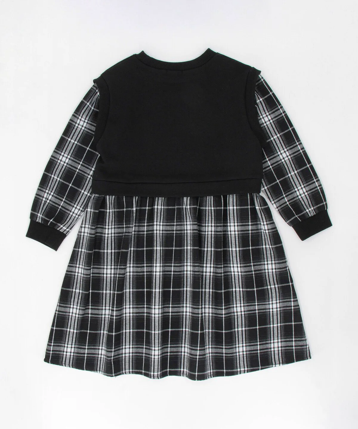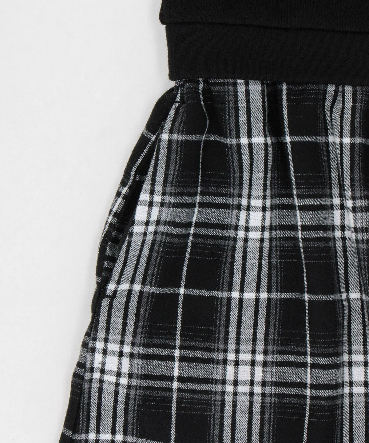 Это стильное многослойное платье отличается привлекательным оригинальным однотонным клетчатым узором,