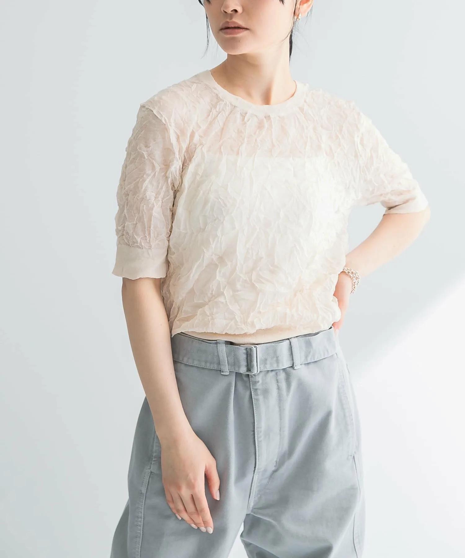 Модный трикотаж из прозрачного материала с эффектом потертости.