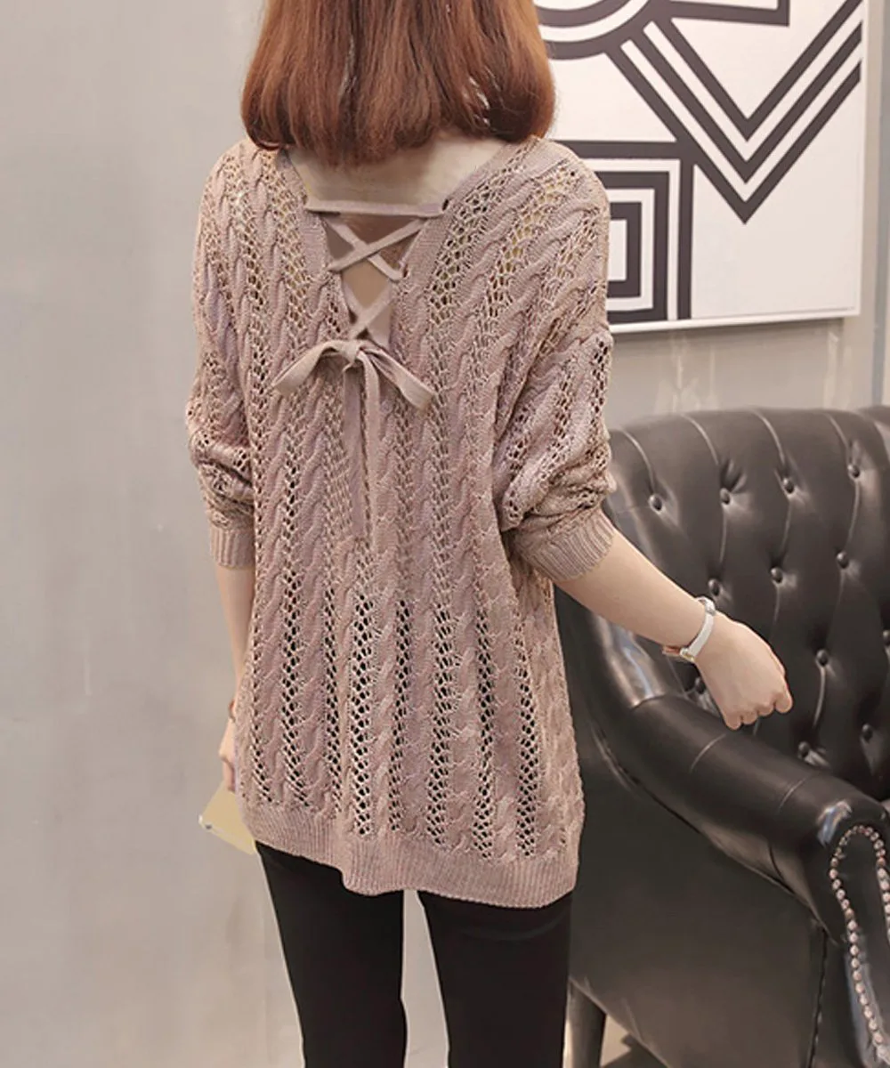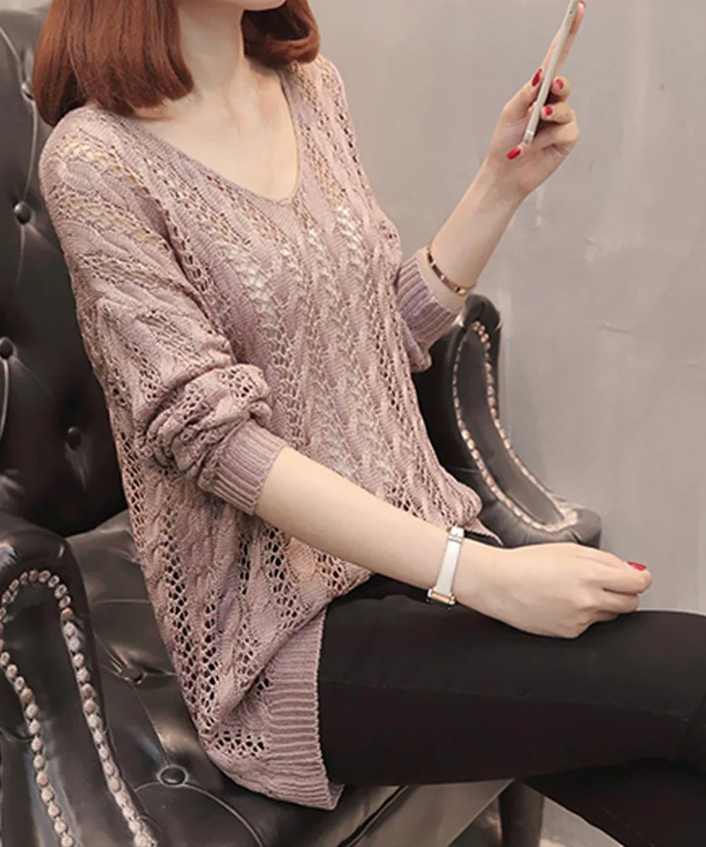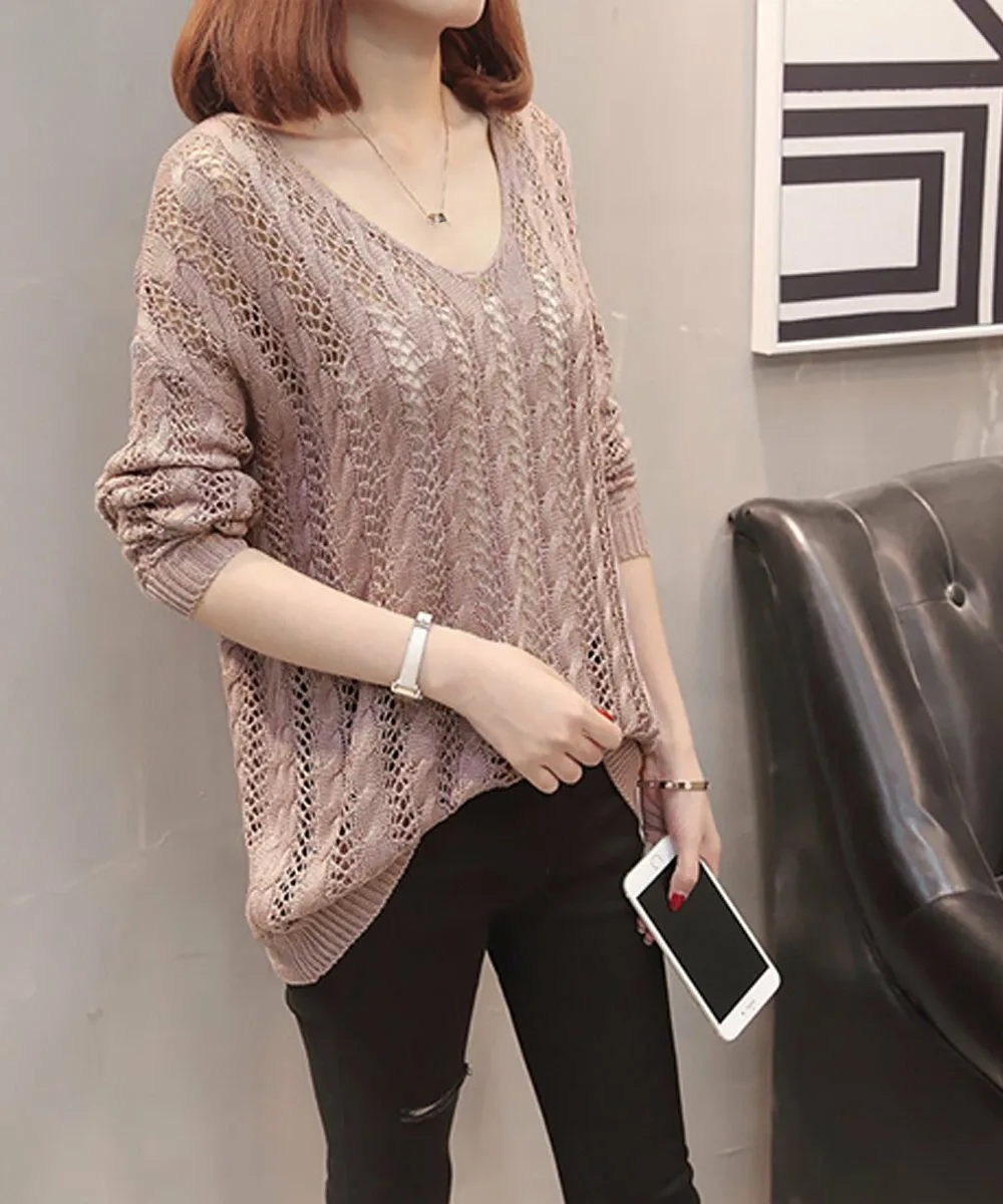 Женский вязаный пуловер с V-образным вырезом, свободный летний свитер с длинными рукавами и сетчатой вязкой. Сексуальный.