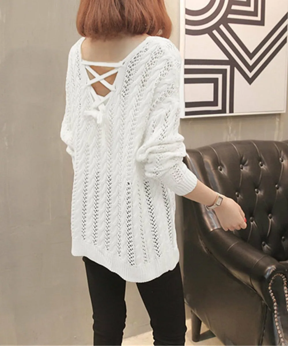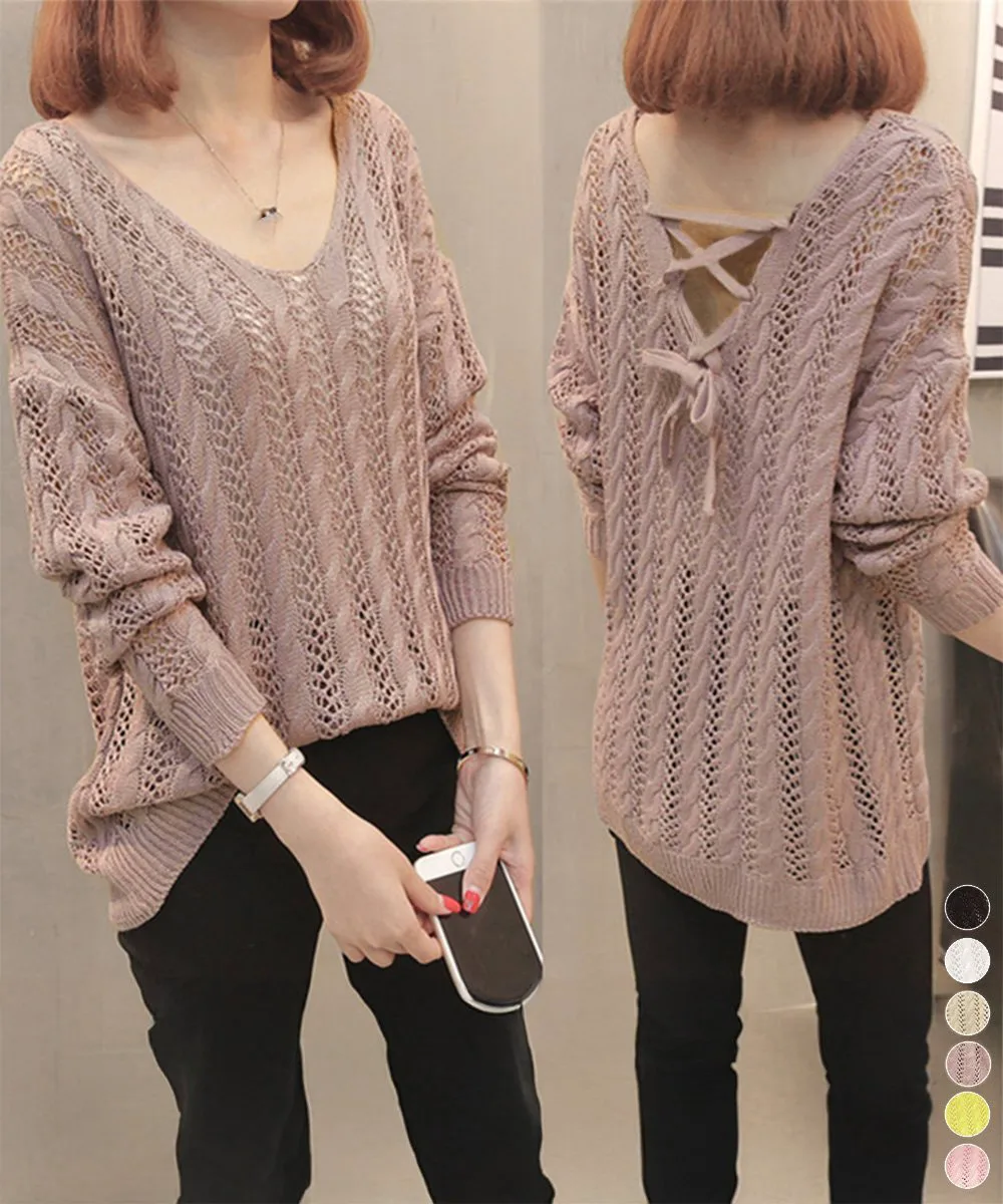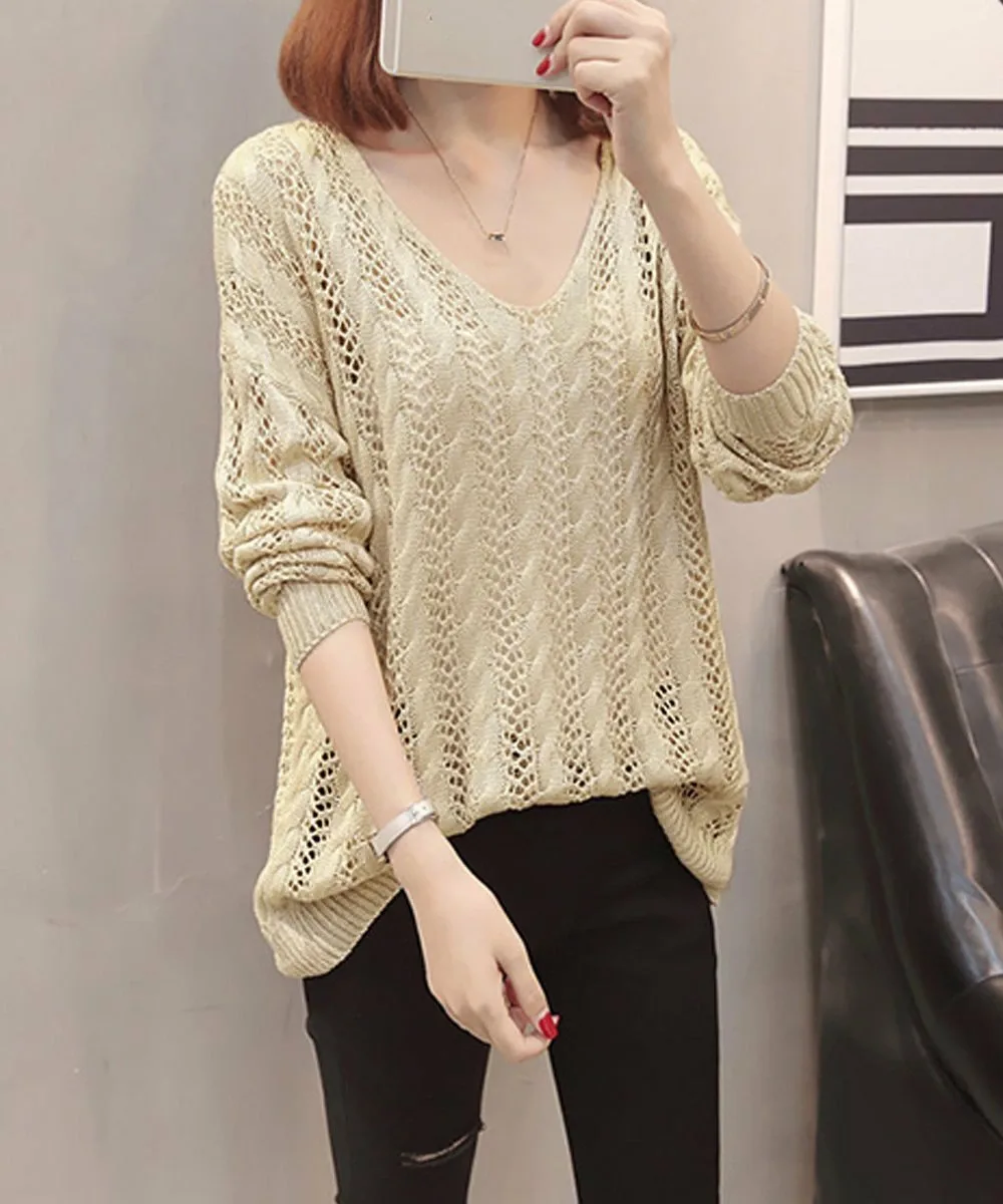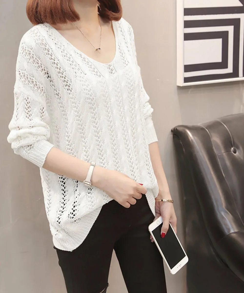 Одежда в корейском стиле для весны, лета и осени. Прозрачная вязка для стройнящего, открытого силуэта. Стильный свитер.