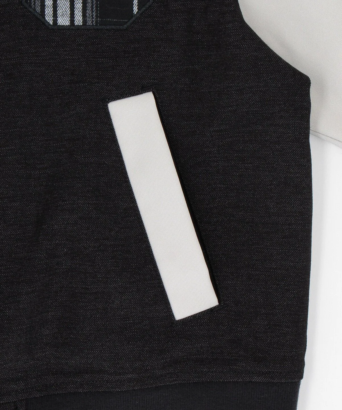 Рукава и отверстия карманов выполнены из полиэстеровой саржи в сдержанной светло-серой цветовой гамме,