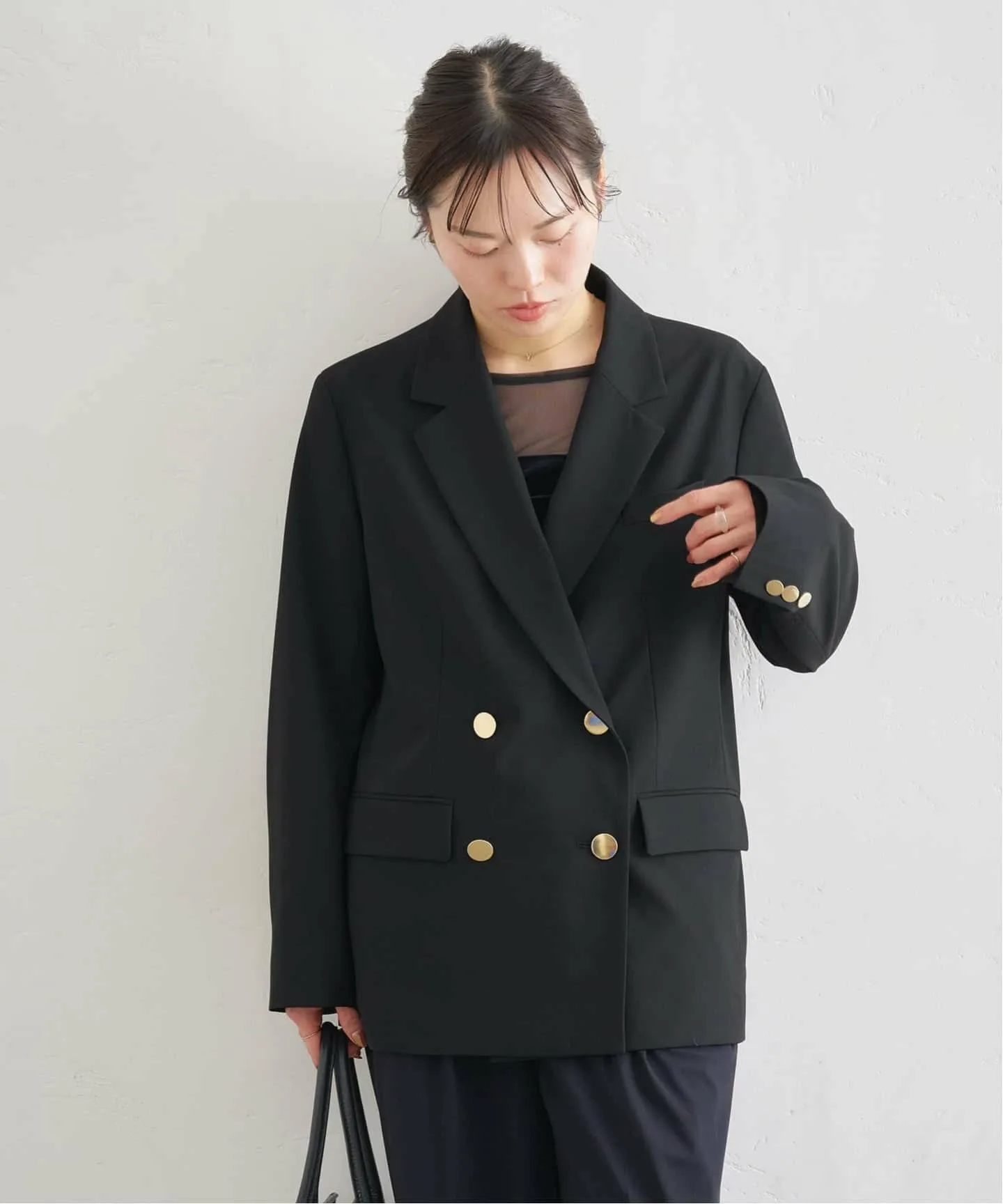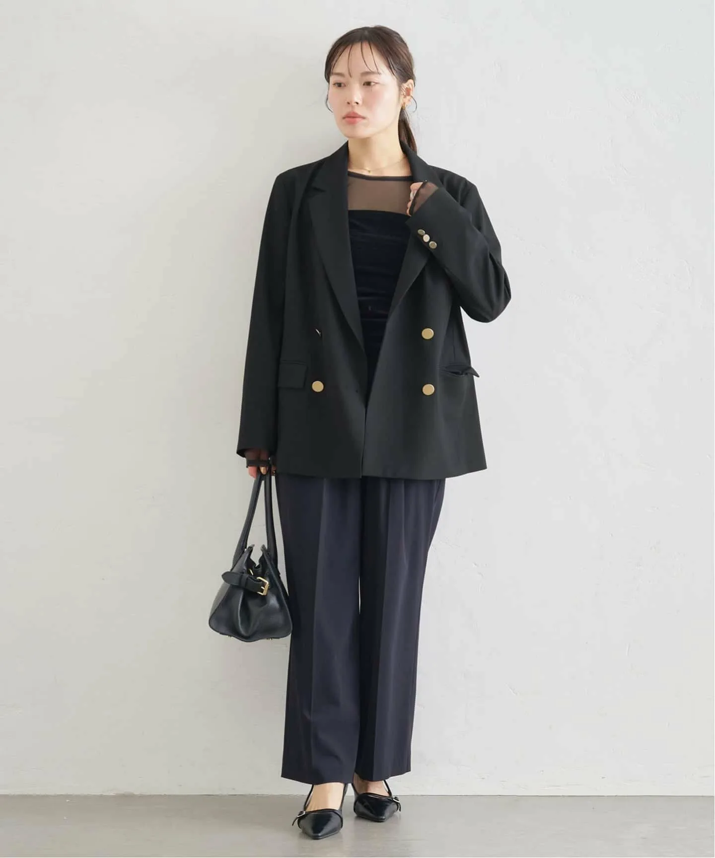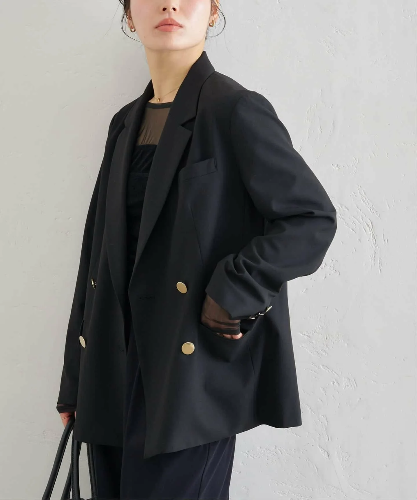 Черная версия украшена золотыми пуговицами, добавляющими элегантности простому дизайну.