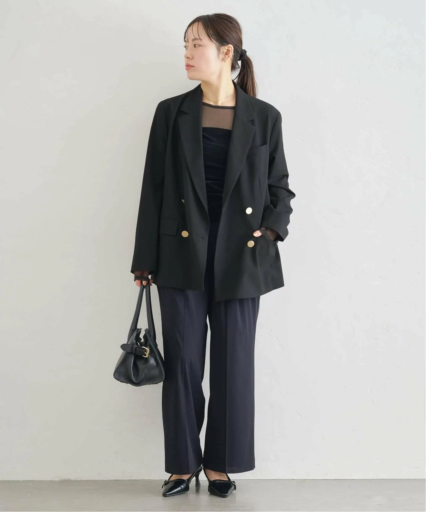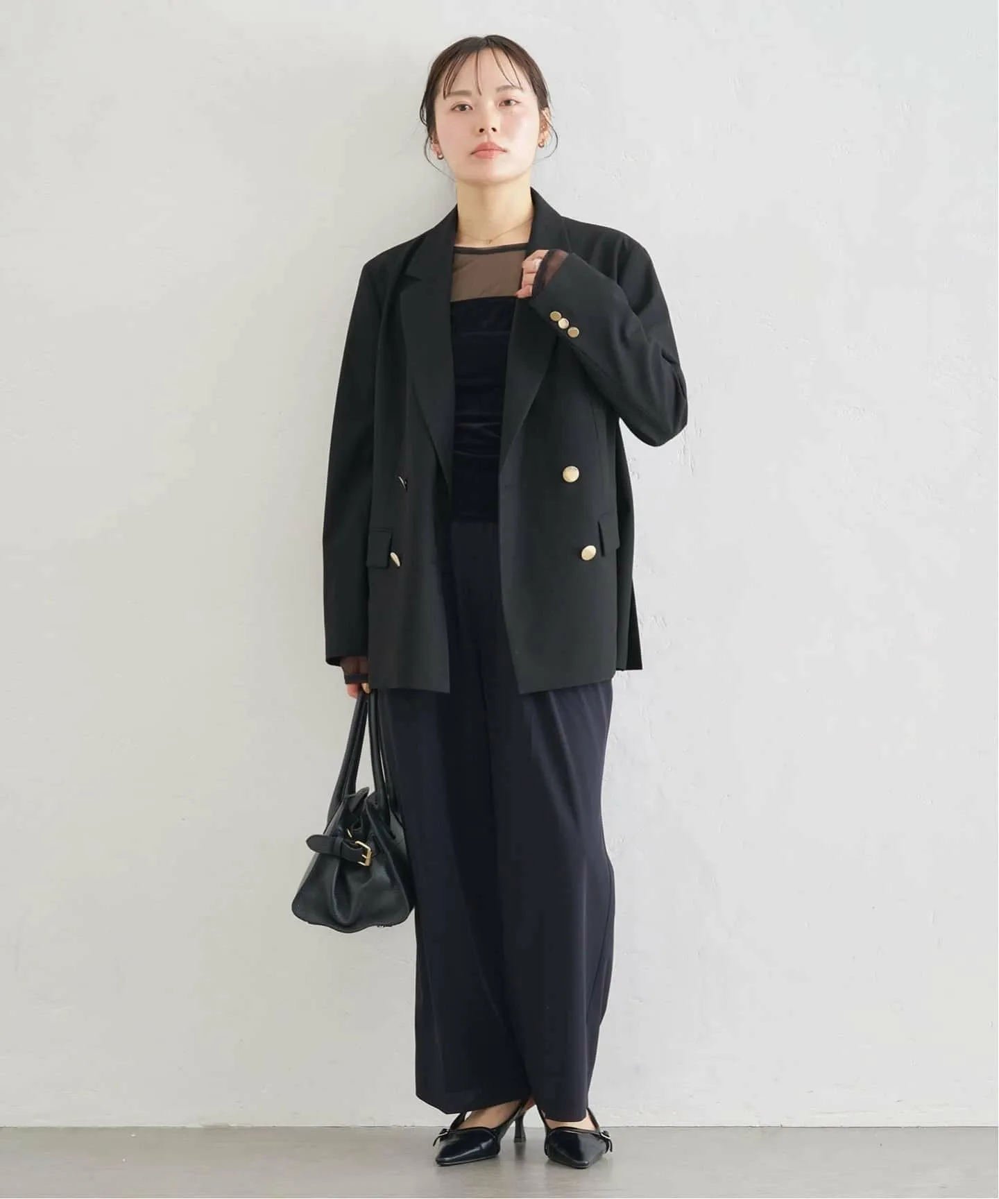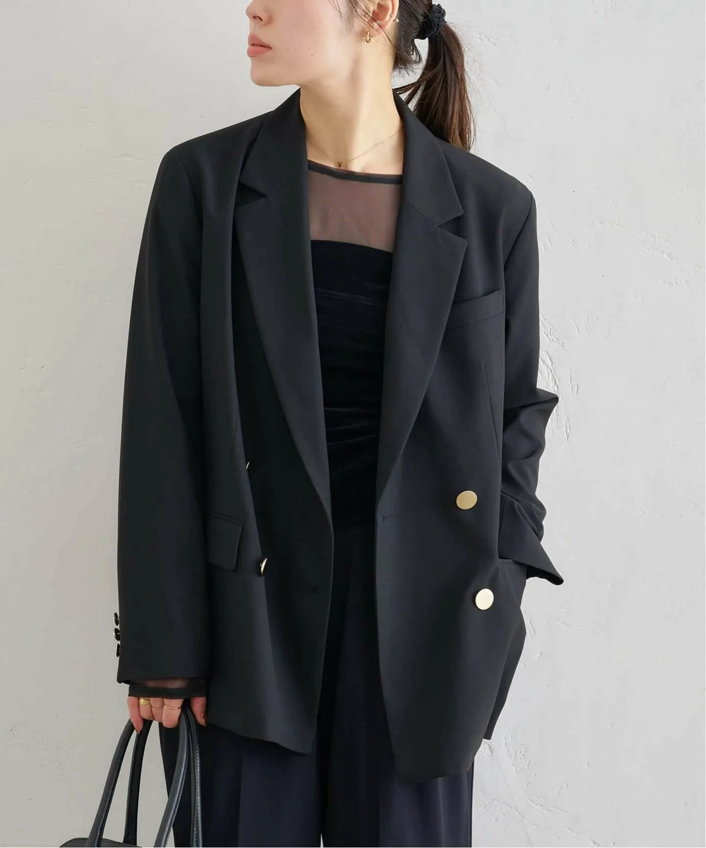 Черная версия украшена золотыми пуговицами, добавляющими элегантности простому дизайну.