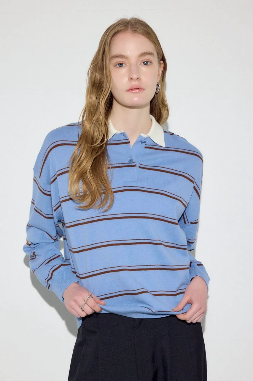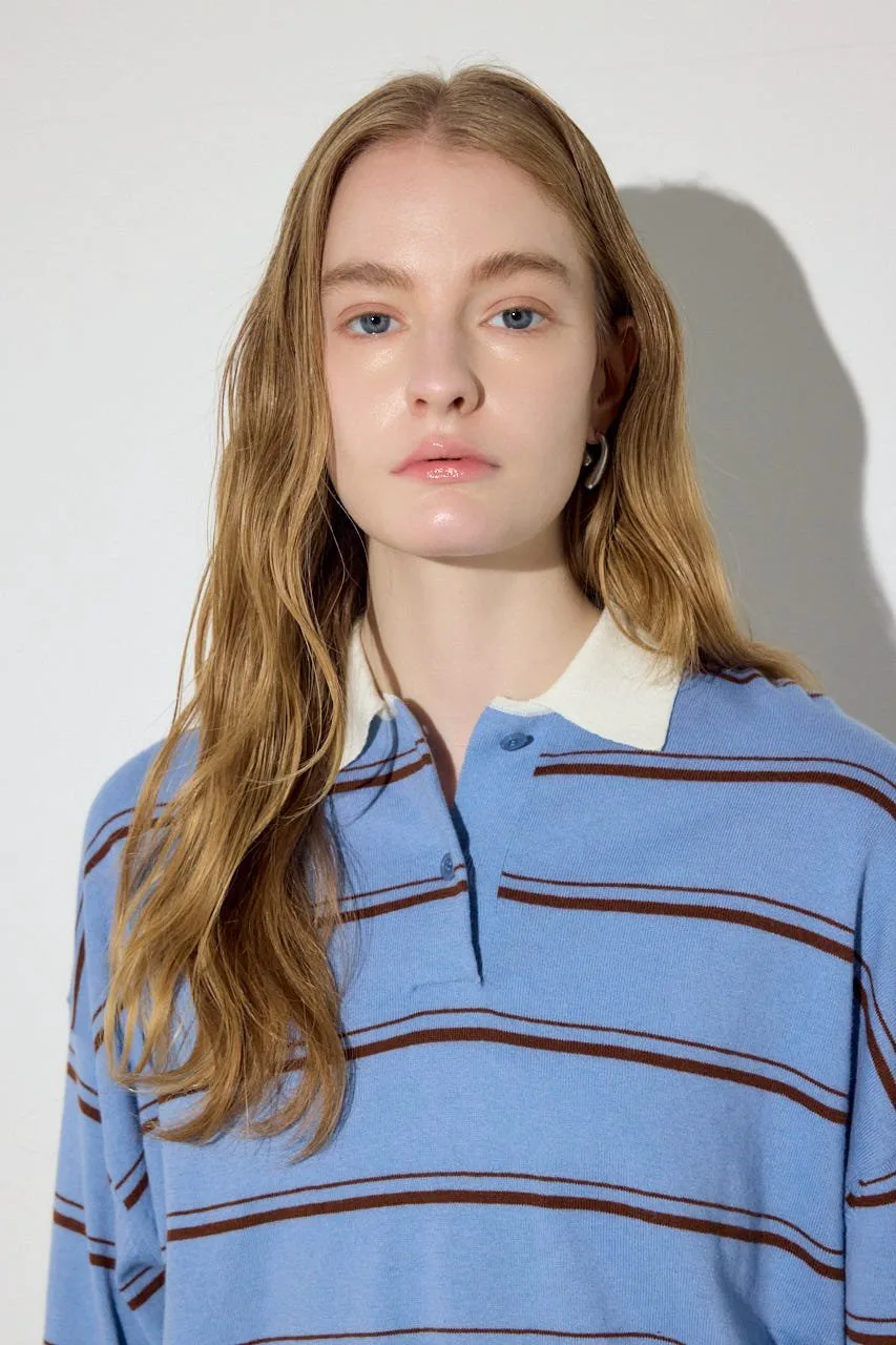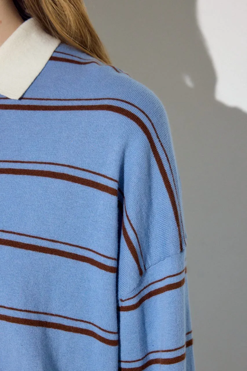 Трикотажная кофта в полоску с воротником-поло из смеси кашемира