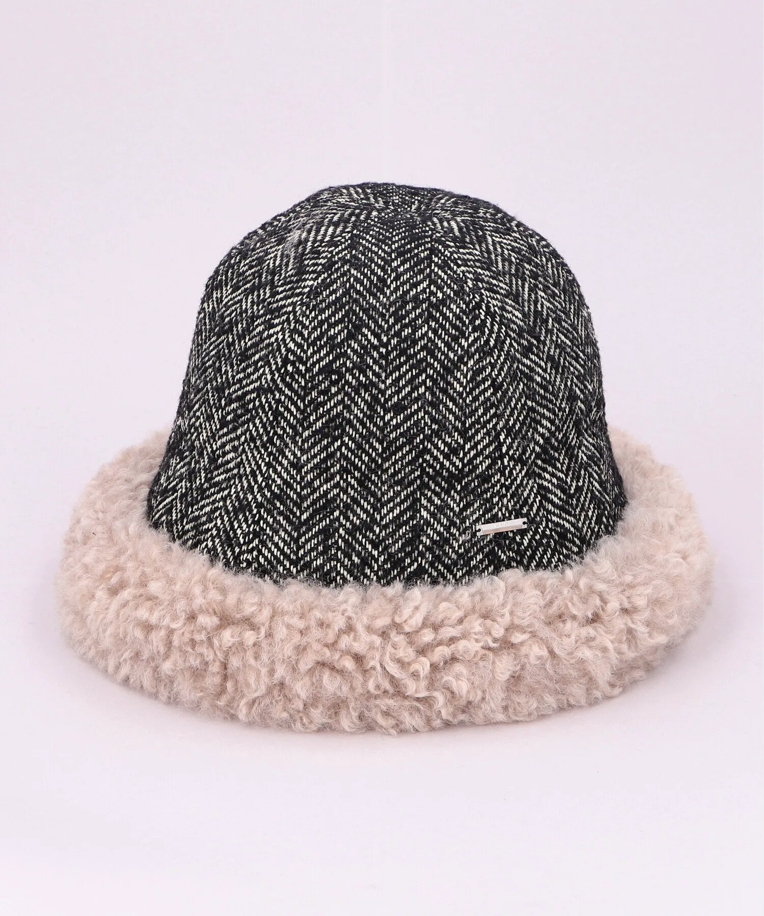 Изготовлена из ворсистой твидовой ткани. Отверстие отделано завитым мехом, похожим на овечий, что придает изделию теплый вид. Декоративные элементы по бокам добавляют изысканности.