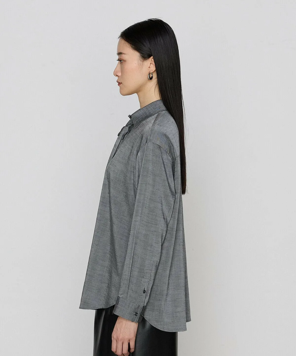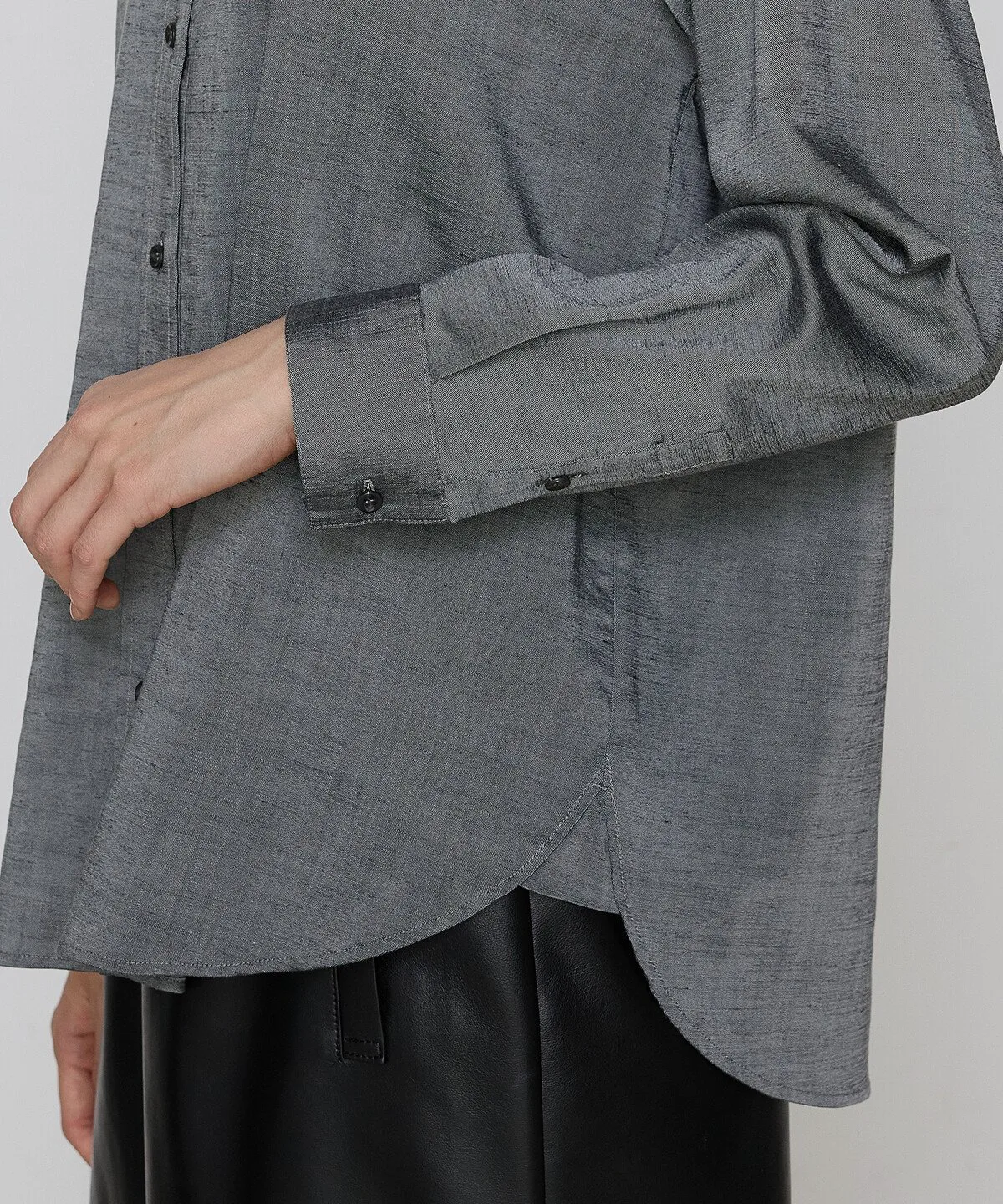 Шамбре придает ей глянцевый блеск, а фактурная ткань добавляет непринужденности. Смесь триацетата обеспечивает комфортную драпировку, создавая расслабленный образ, не слишком жесткий.