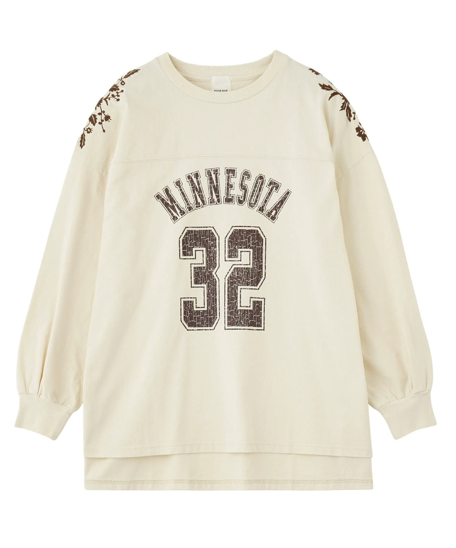 - Спортивный принт в виде цифр + вышитый цветочный мотив на плече