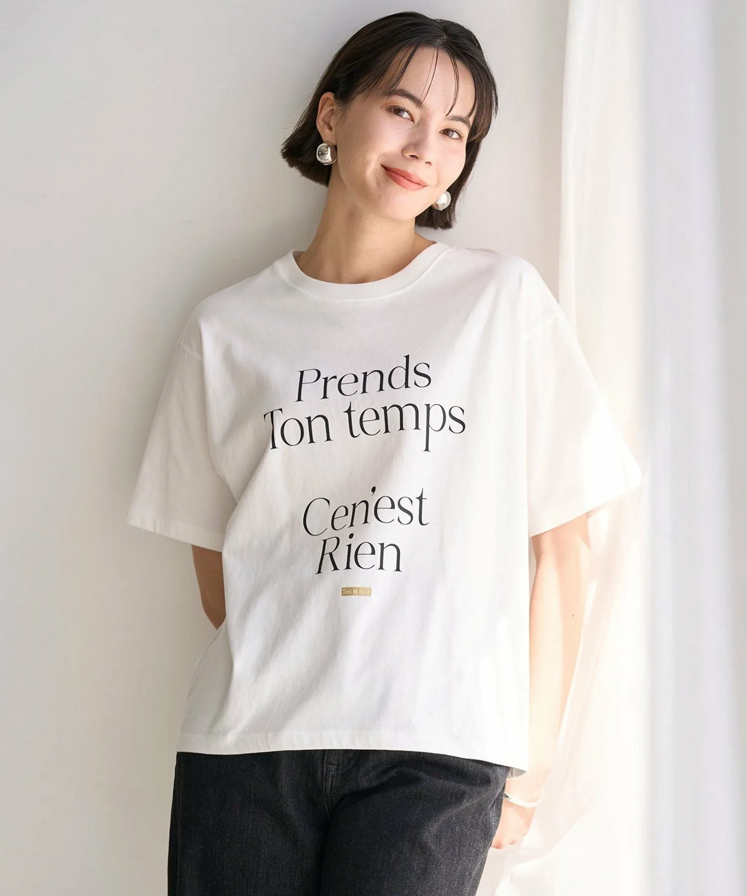 Эта футболка с разнообразными принтами станет центральным элементом любого образа. Она представлена в 10 вариантах (18 вариаций, включая цвета) с различными принтами, нанесенными струйным принтером, и логотипами. Слегка свободный крой создает укороченный силуэт, что позволяет легко сочетать ее как с брюками, так и с юбками. Задняя окантовка от плеч до воротника и крестообразная строчка на воротнике предотвращают деформацию футболки.