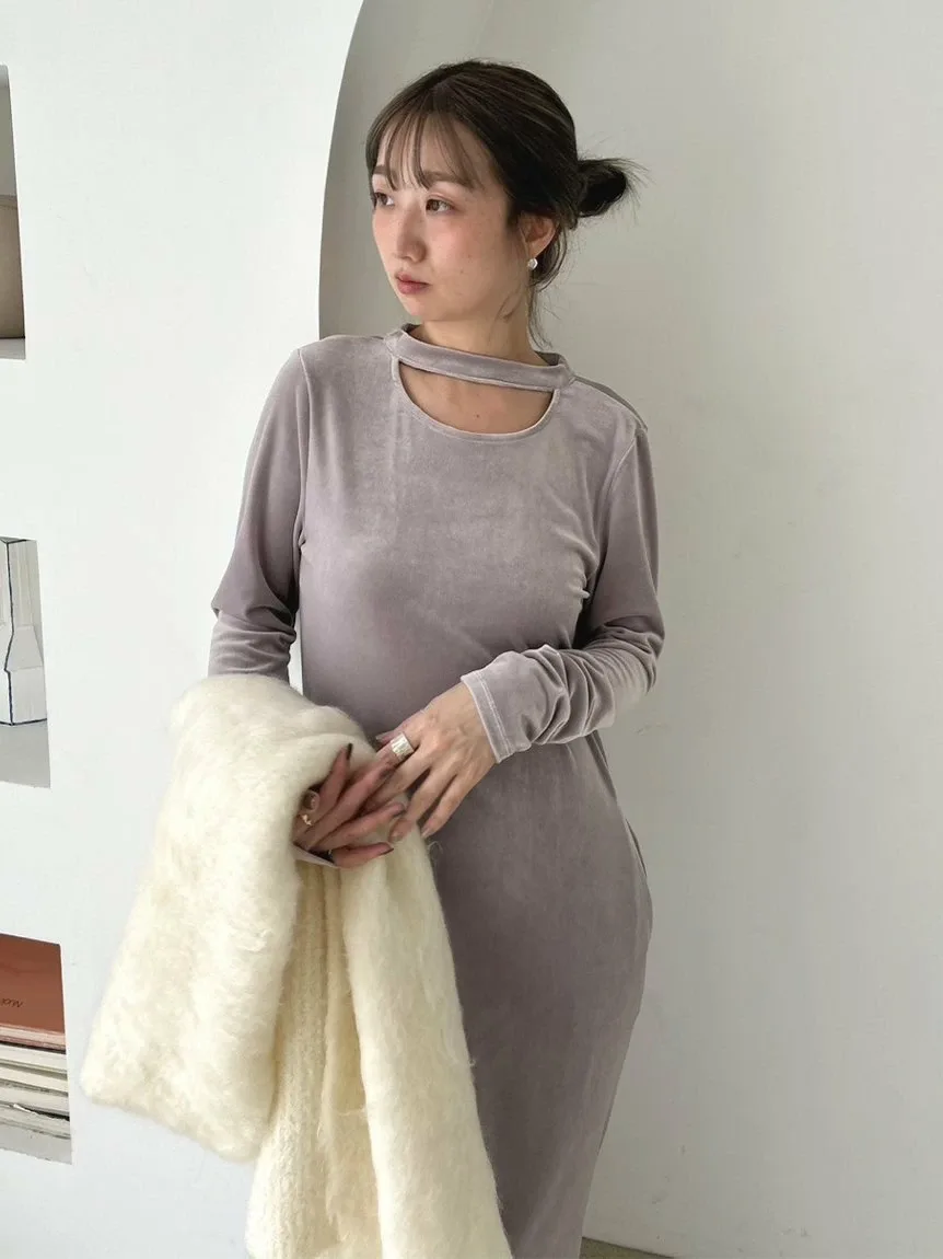 Это платье I-силуэта имеет дизайн, напоминающий чокер на шее. Высококачественная велюровая ткань придает ему изысканный вид.
