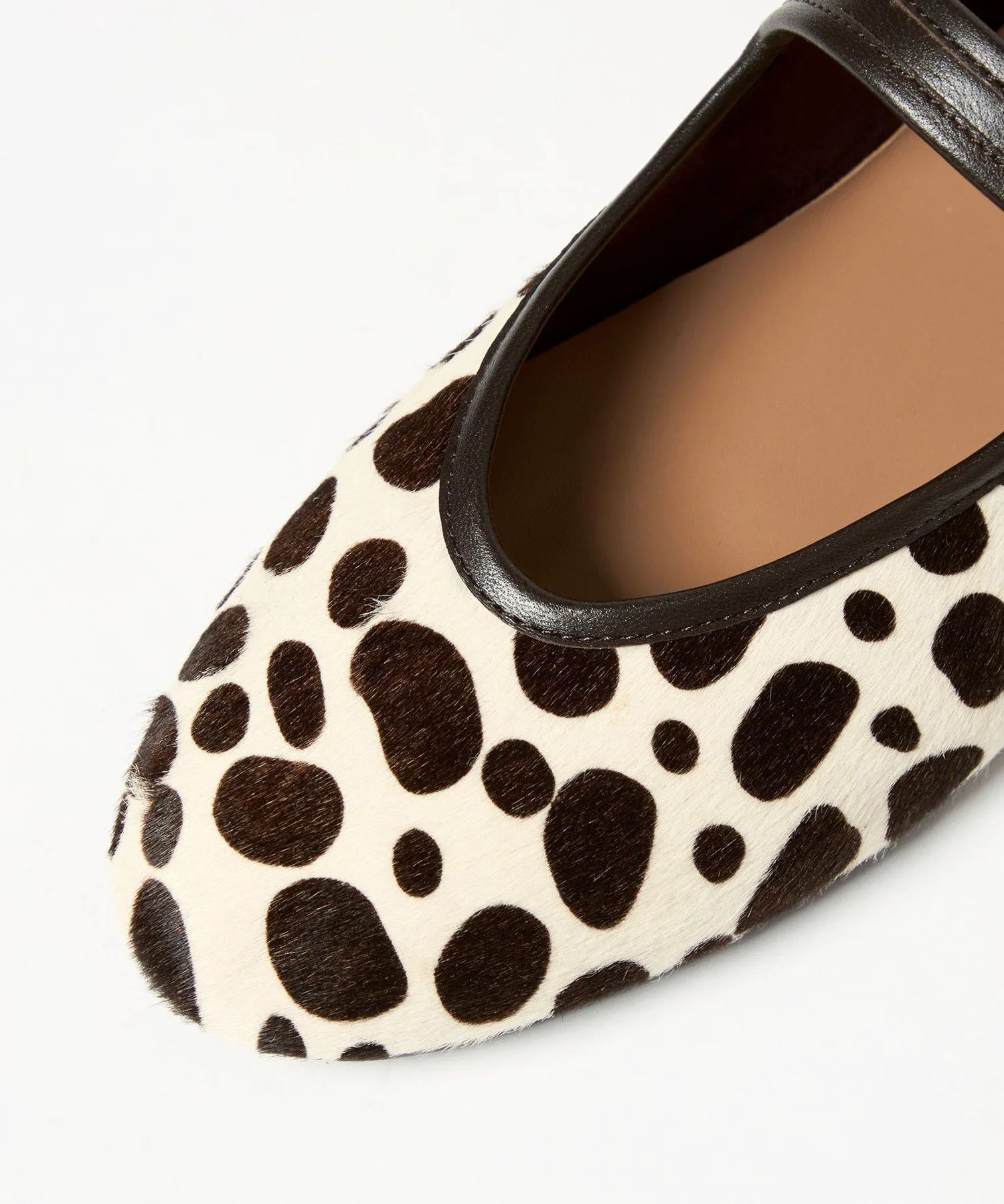 Два других цвета выполнены из мягкого, гладкого материала с принтом «далматин», а воротник и ремешок на подъеме — из гладкого темно-коричневого материала.